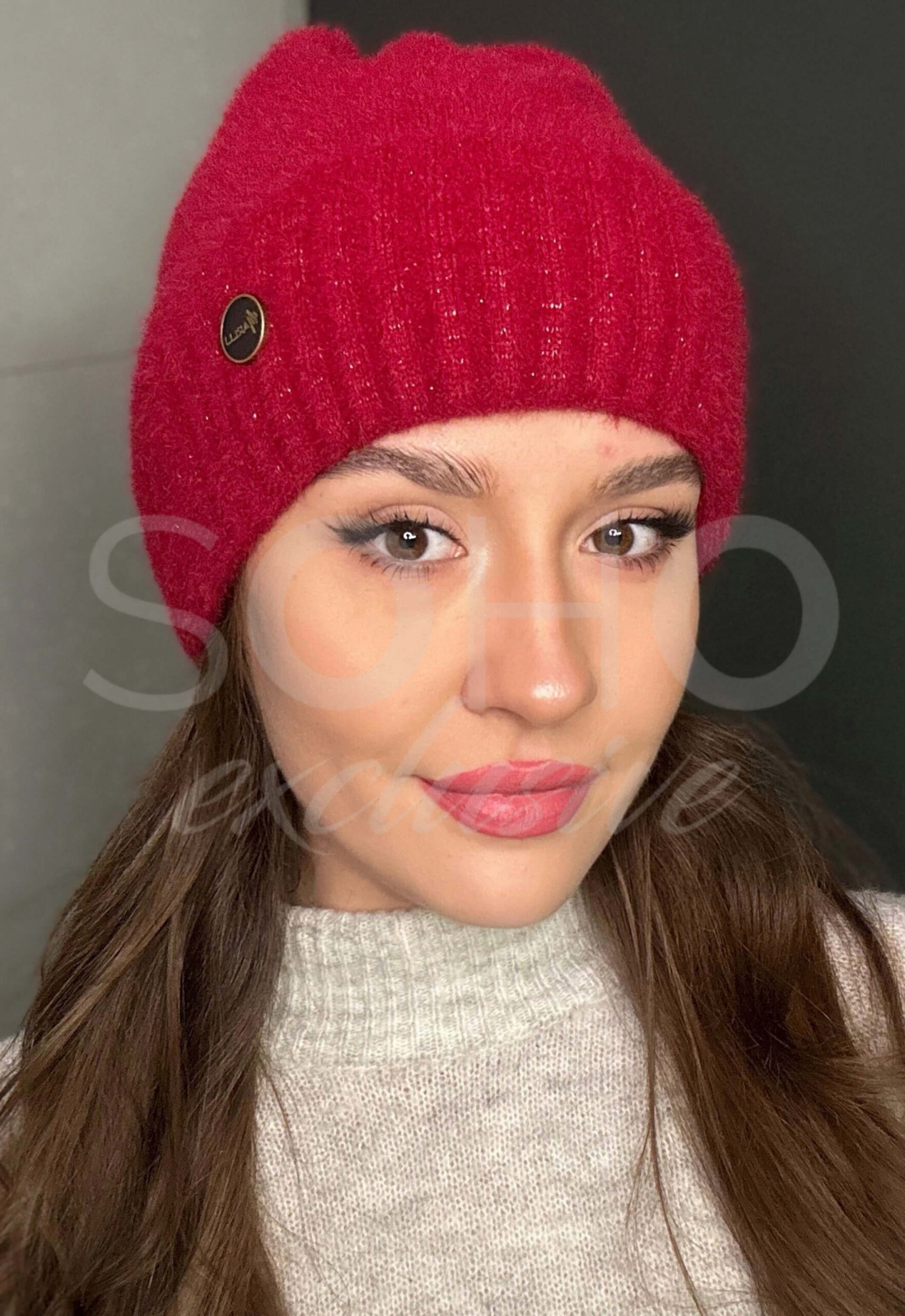 Czapka damska zimowa na zimę ciepła wygodna gruba kobieca sportowa bordowa 2820