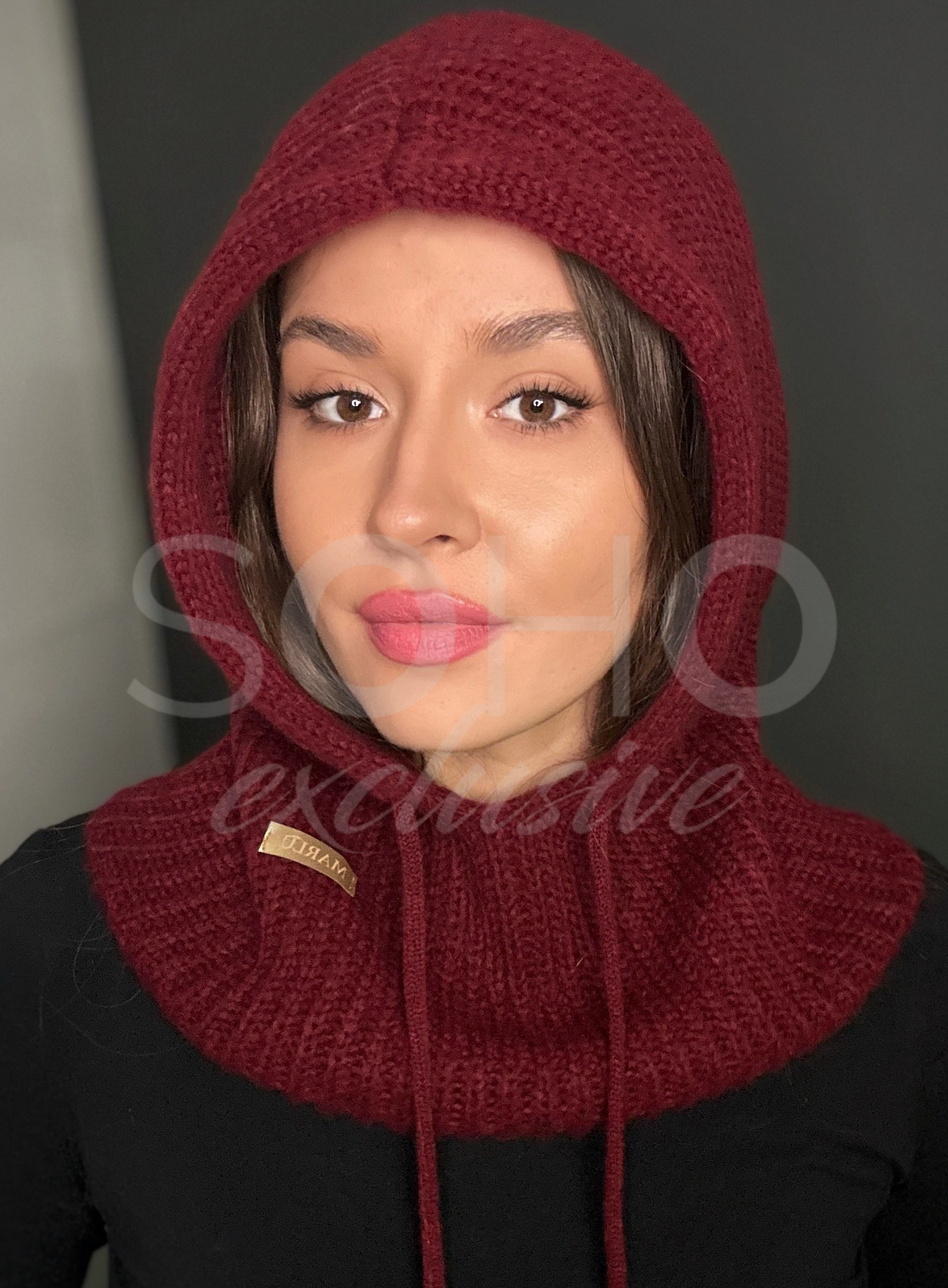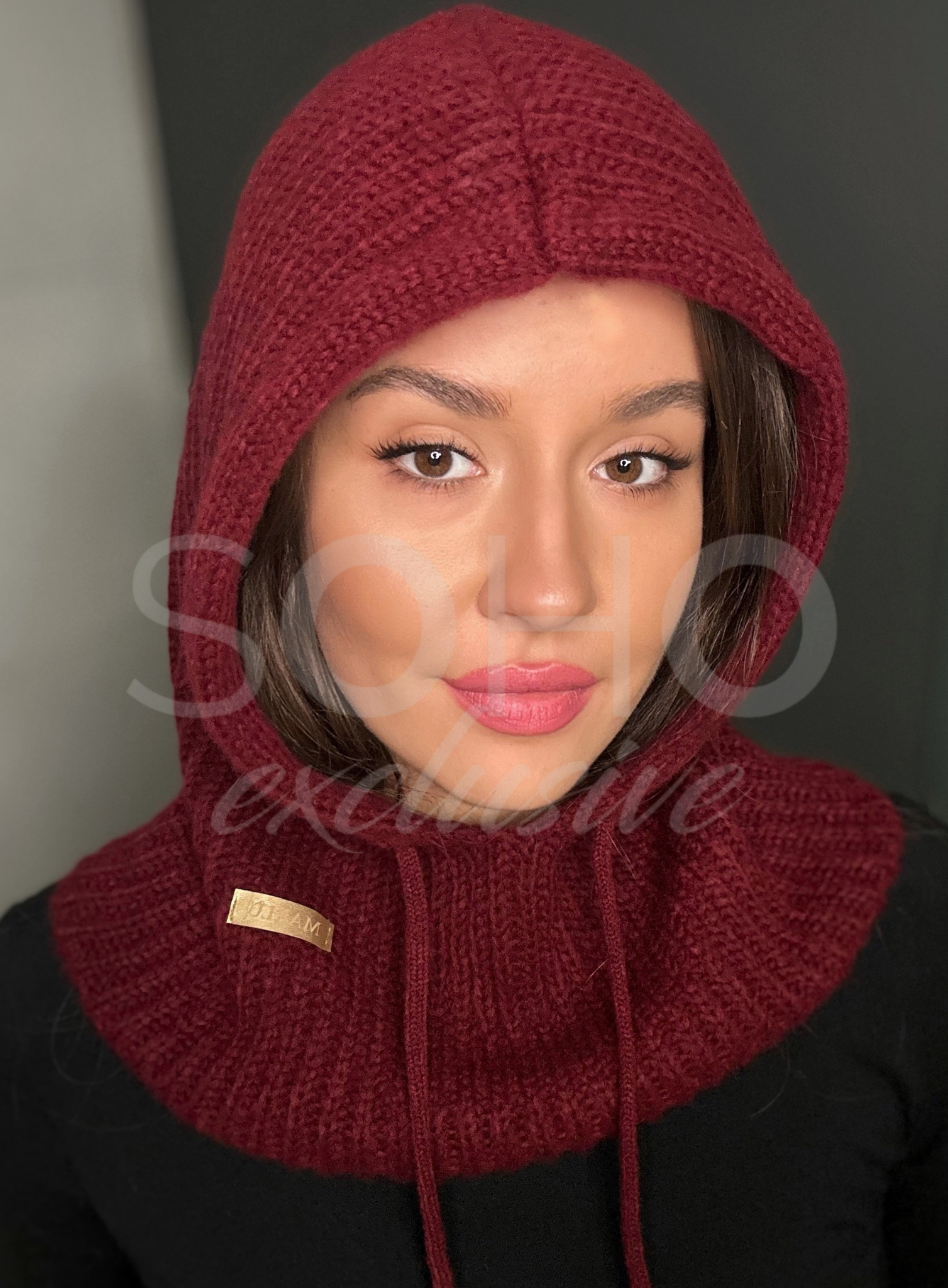 Czapka kaptur kominiarka golf balaclava uniseks ciepły modny viral bordowa 3010