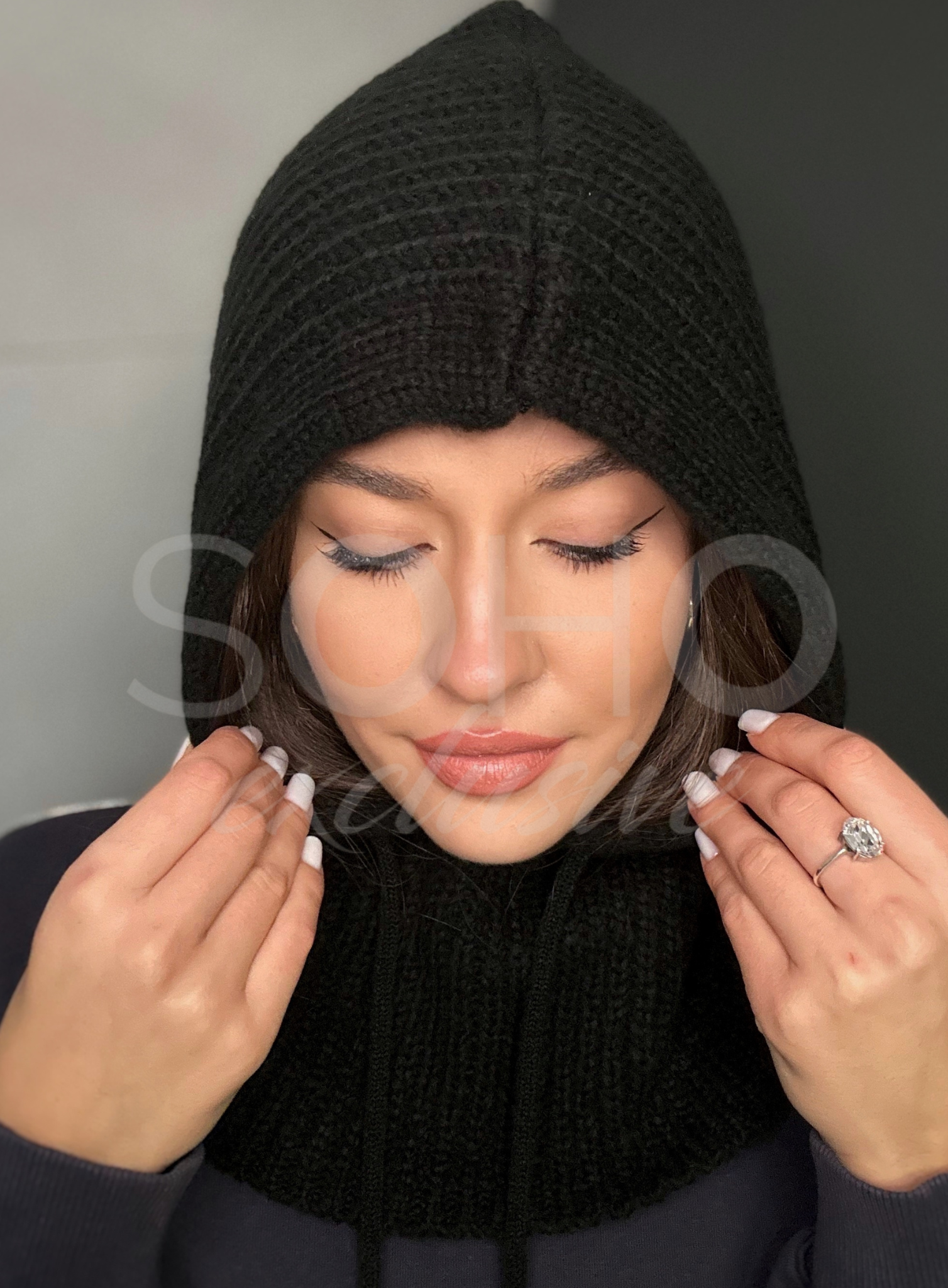 Czapka kaptur kominiarka golf balaclava uniseks ciepły modny viral czarny 3010