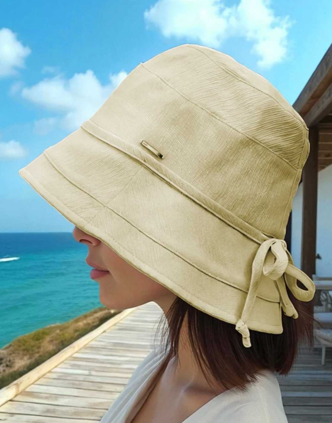 Głęboki bucket hat z szerokim rondem.