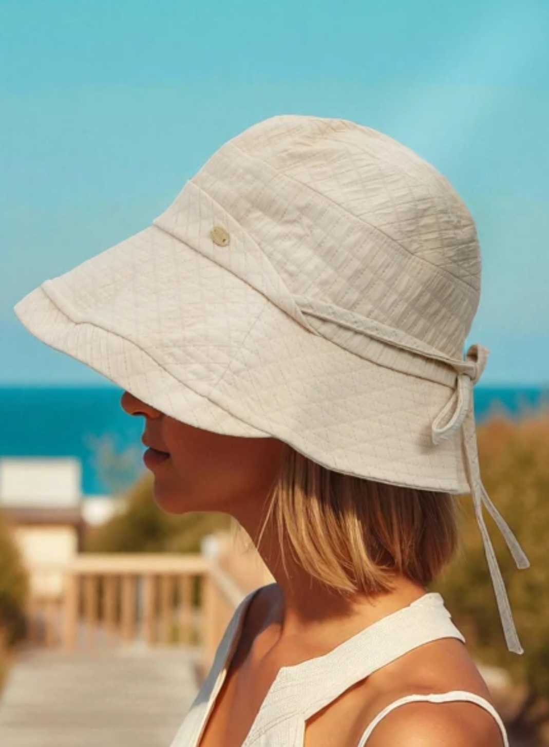 Głęboki bucket hat z szerokim rondem.