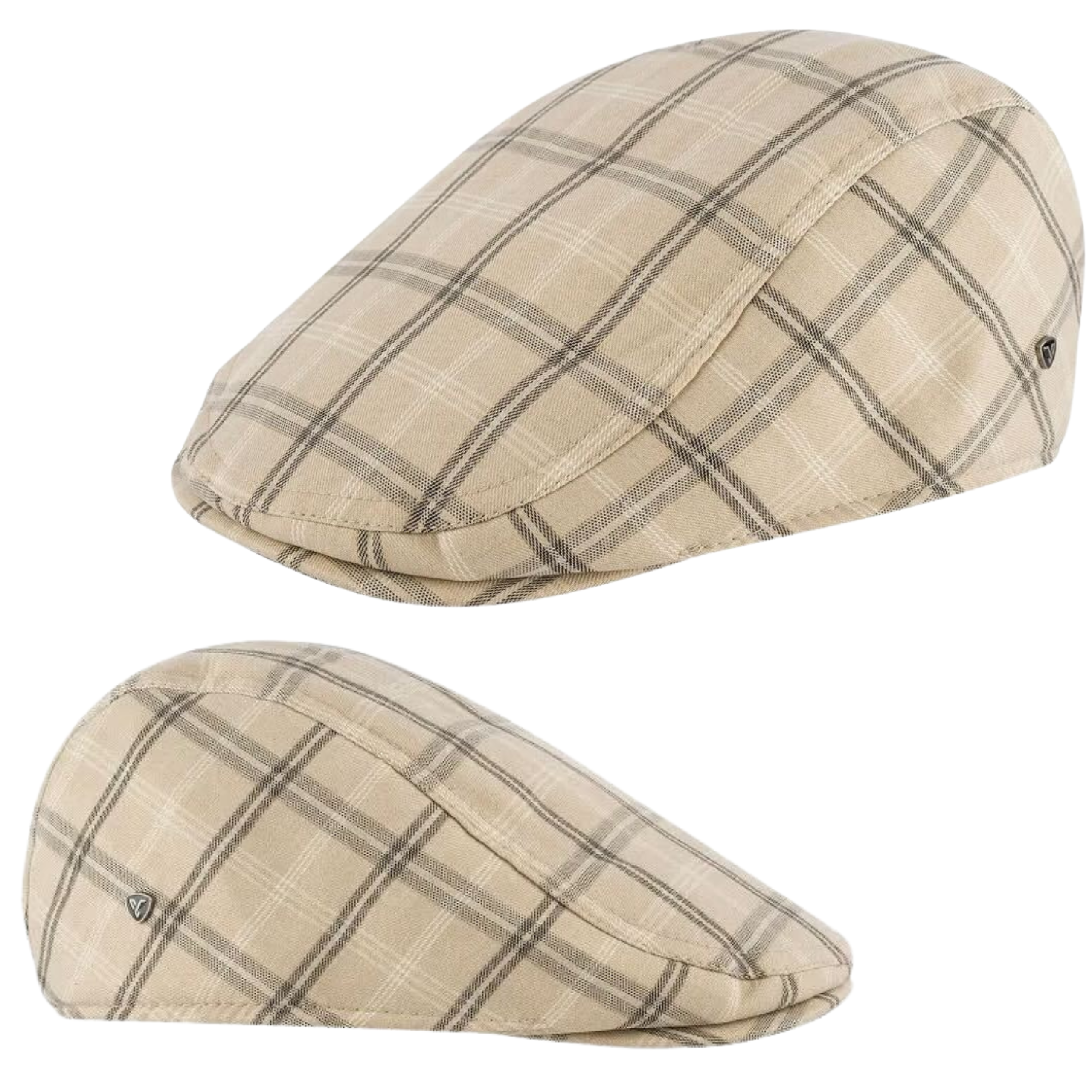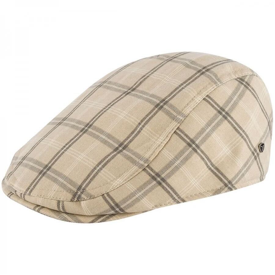 Kaszkiet męski uni bawełniany czapka na jesień elegancki kratka modny beżowy 2944