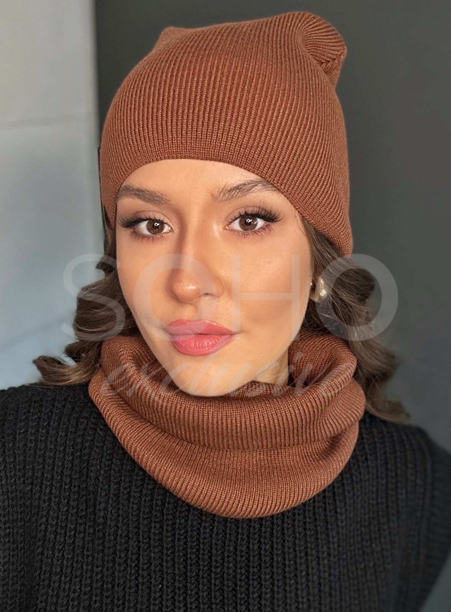 Komin damski męski golf tuba szalik jesień zima wiosna prążek uniseks brązowy 3021