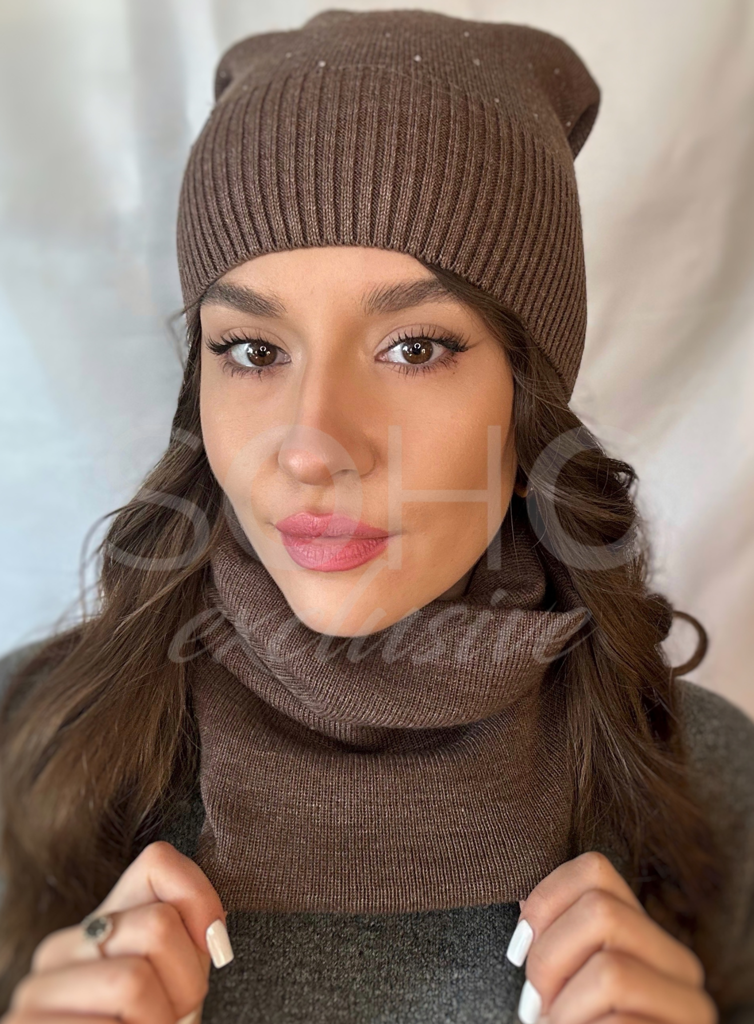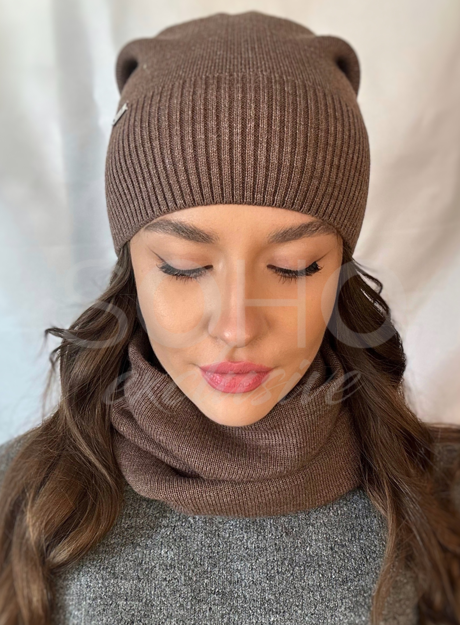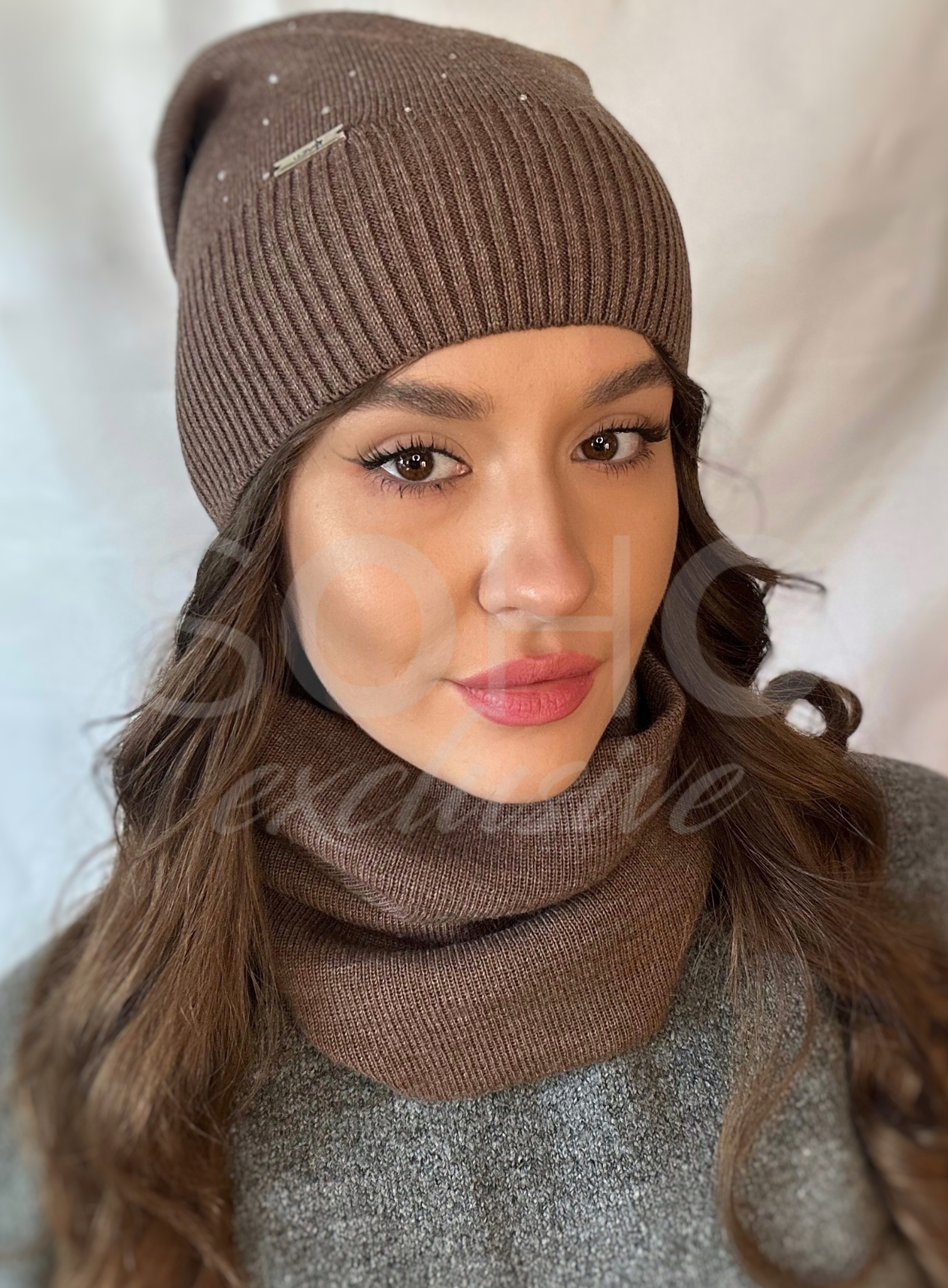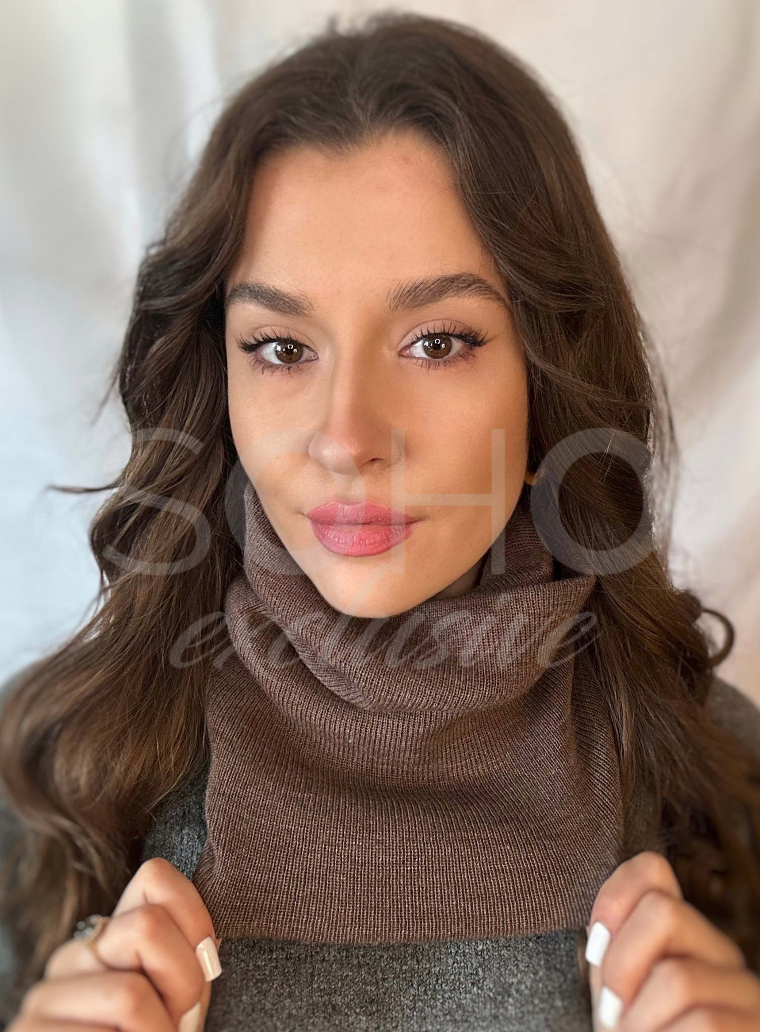 Komin wykonany z podwójnego, uciągliwego, przyjemnego materiału, z ciekawą naszywką.