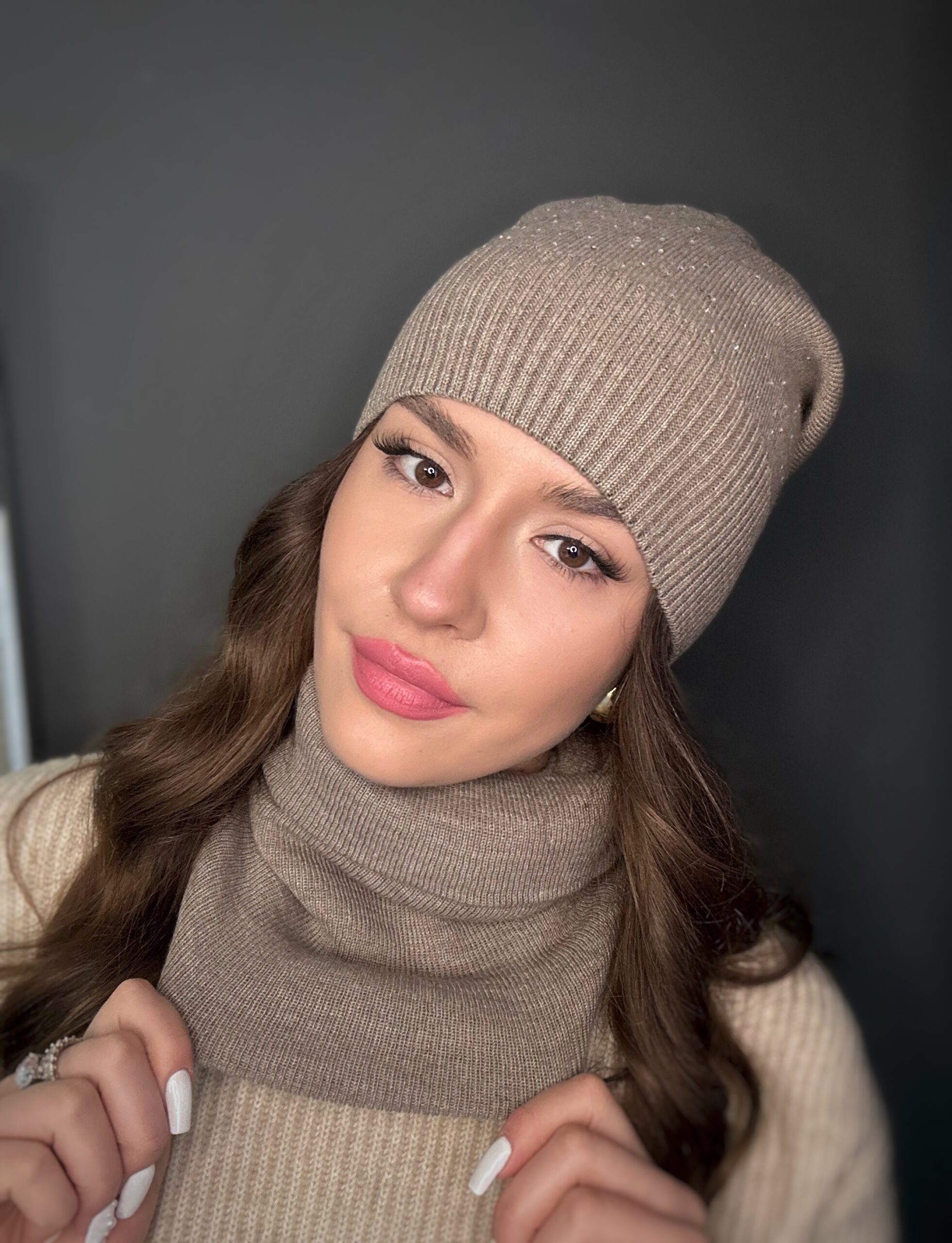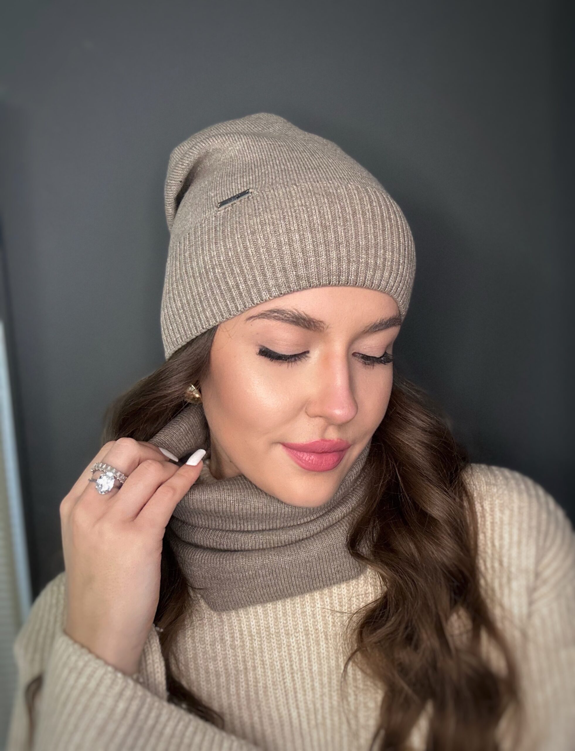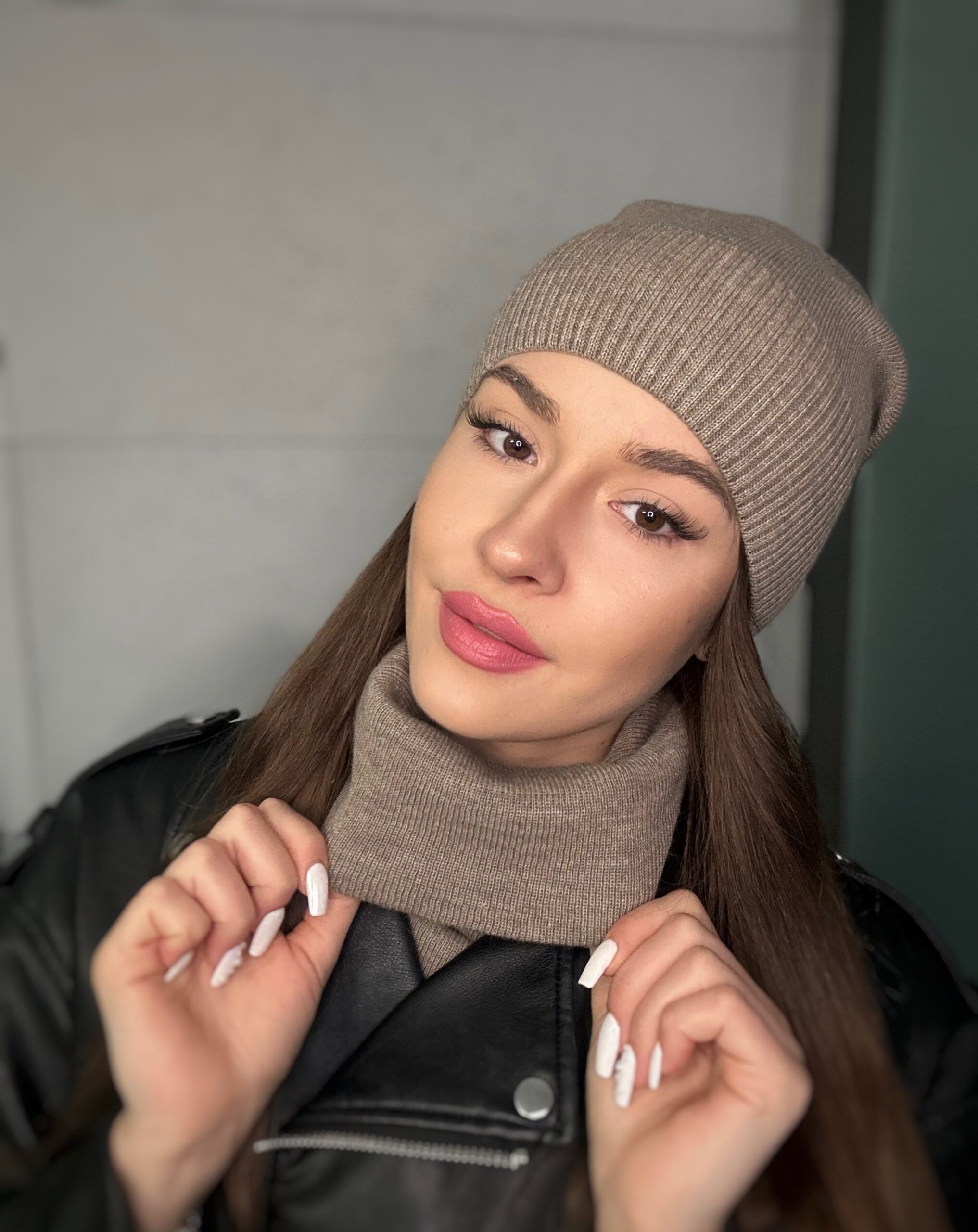 Komin wykonany z podwójnego, uciągliwego, przyjemnego materiału, z ciekawą naszywką.