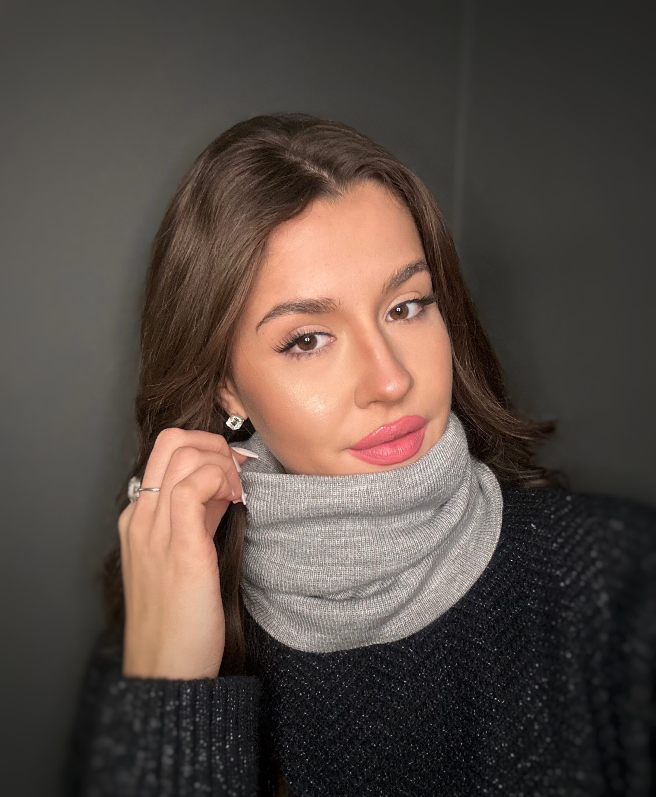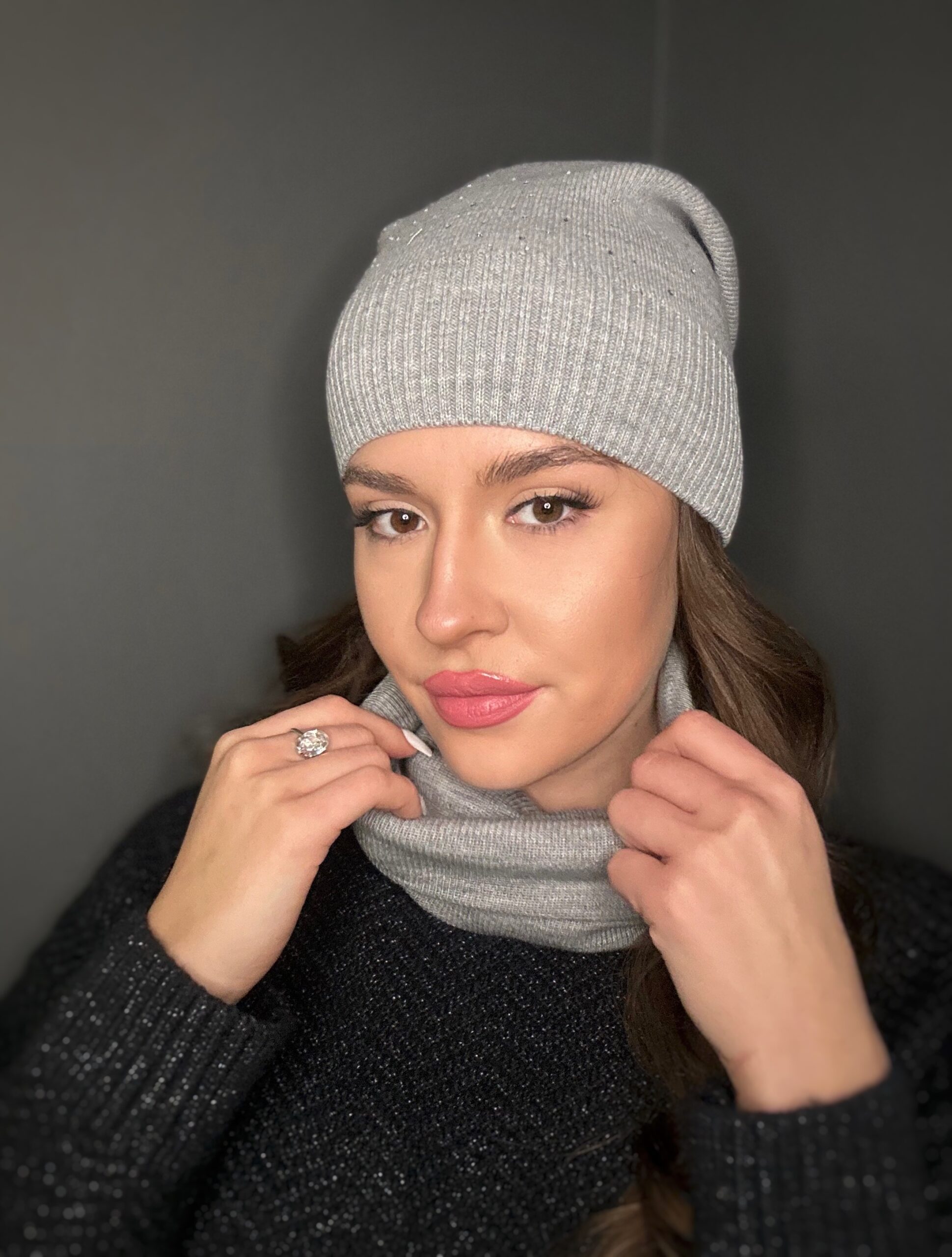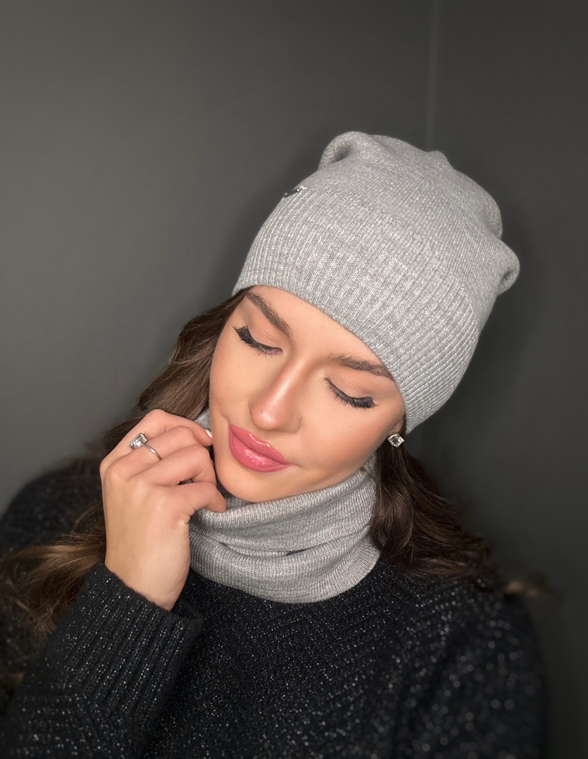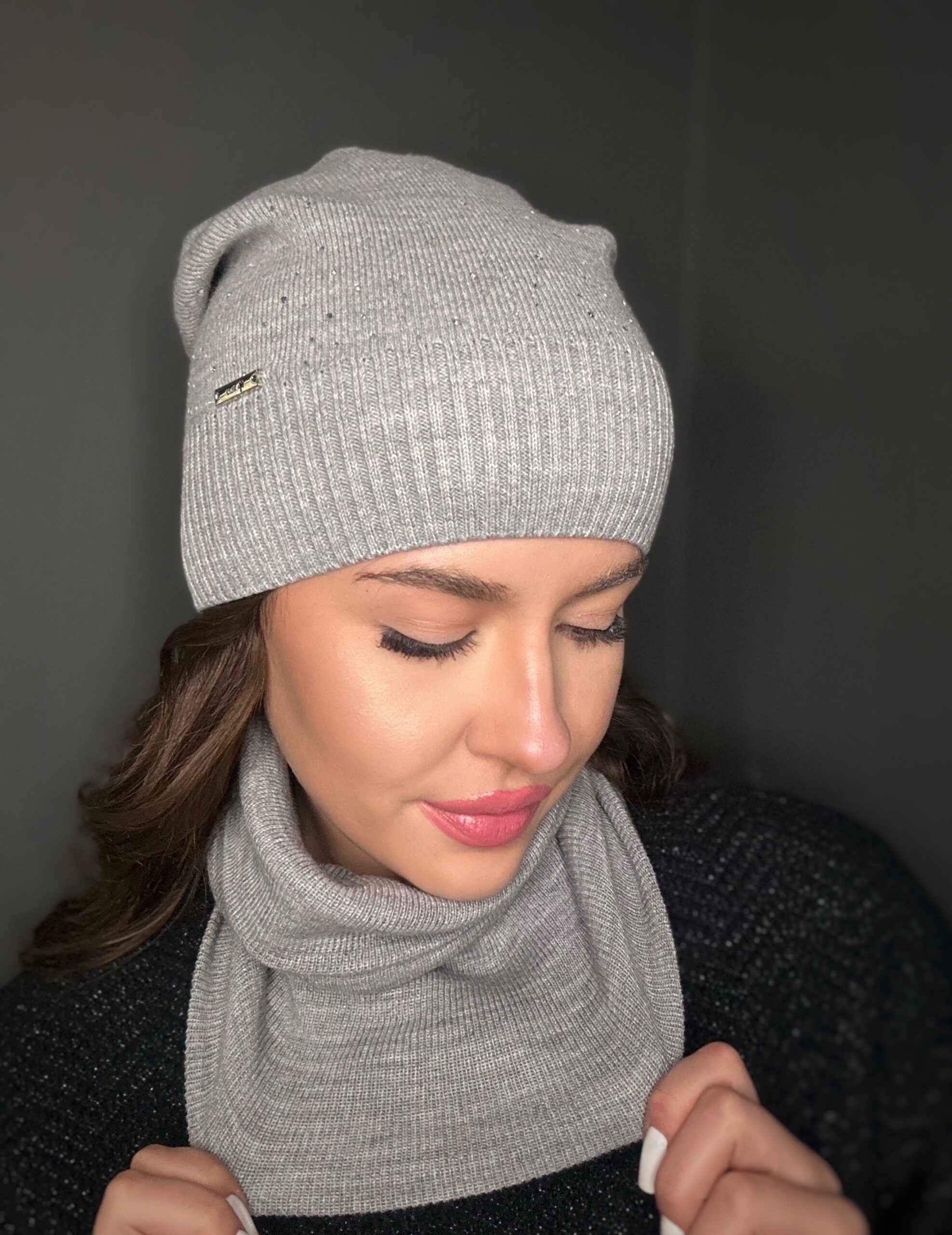 Komin wykonany z podwójnego, uciągliwego, przyjemnego materiału, z ciekawą naszywką.