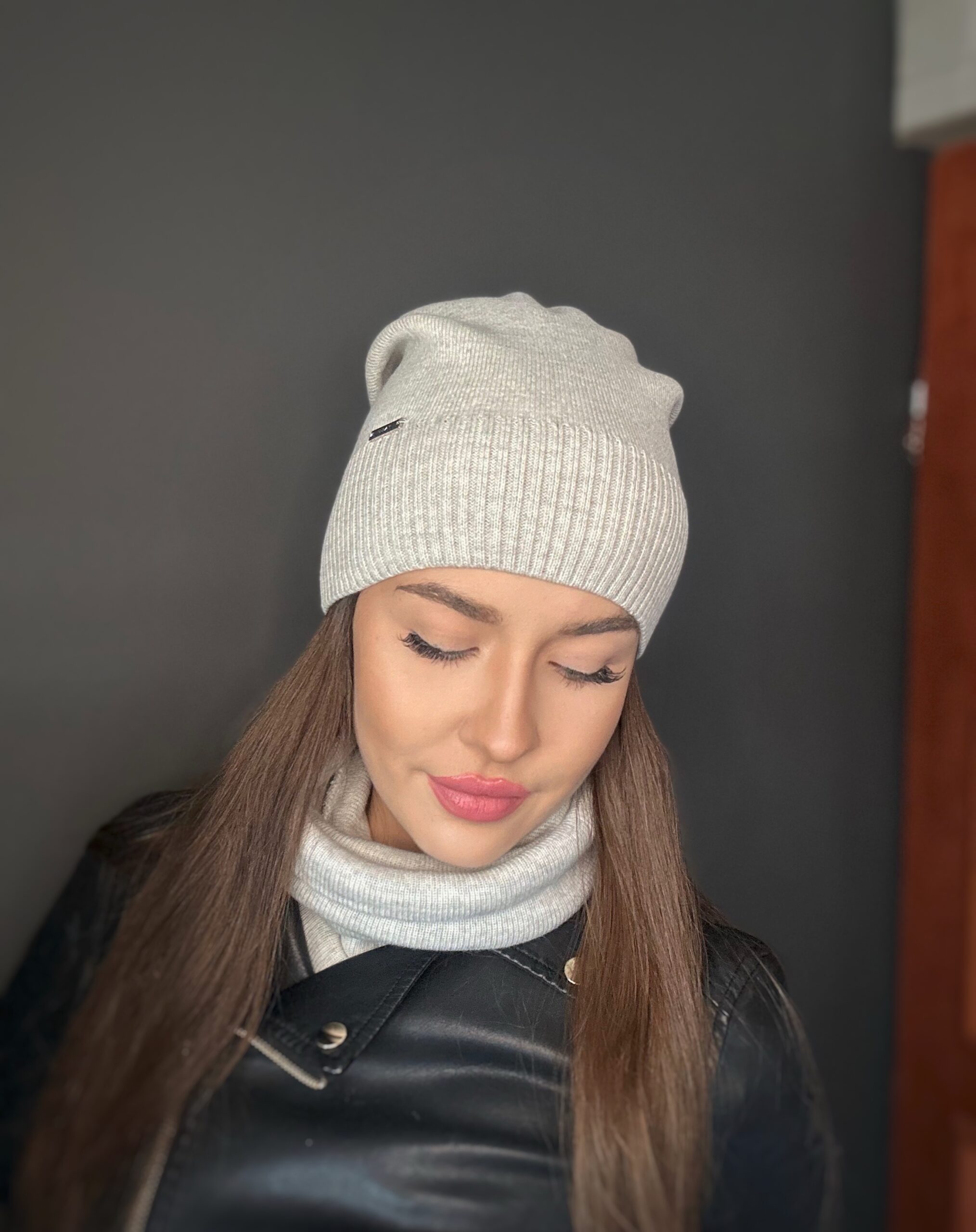 Komin wykonany z podwójnego, uciągliwego, przyjemnego materiału, z ciekawą naszywką.