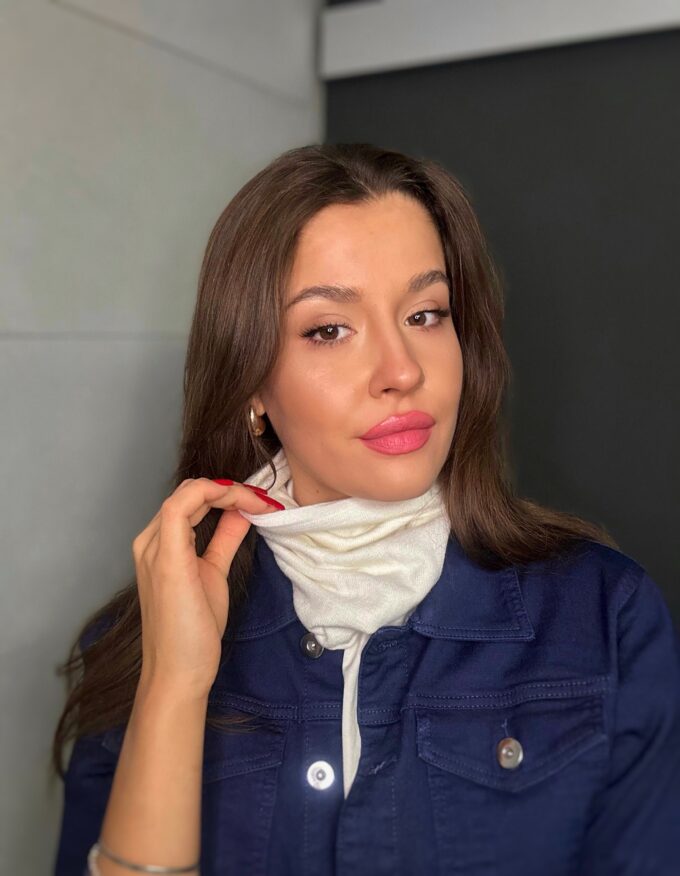Komin wykonany z podwójnego, przyjemnego, uciągliwego materiału (wiskoza).