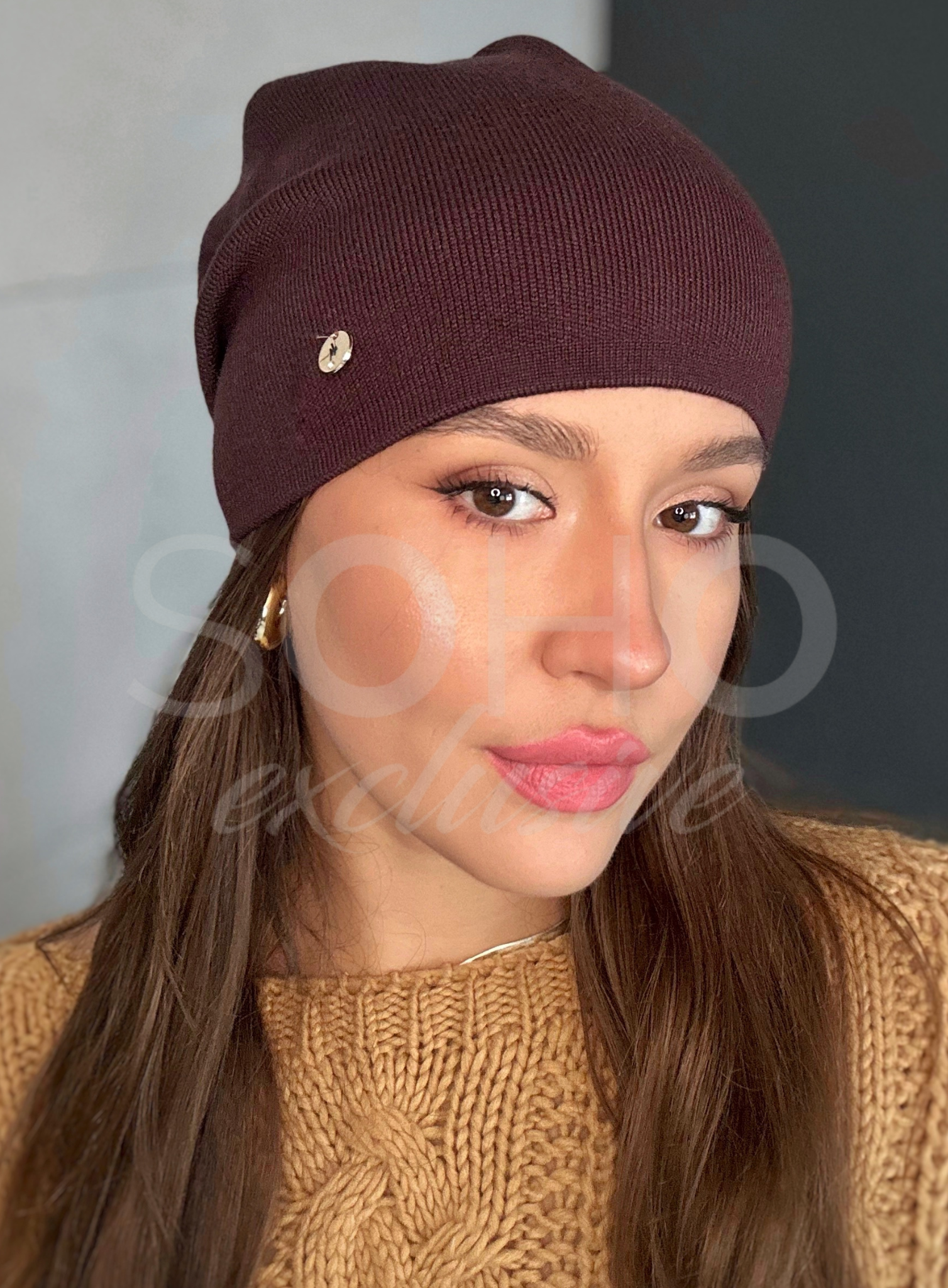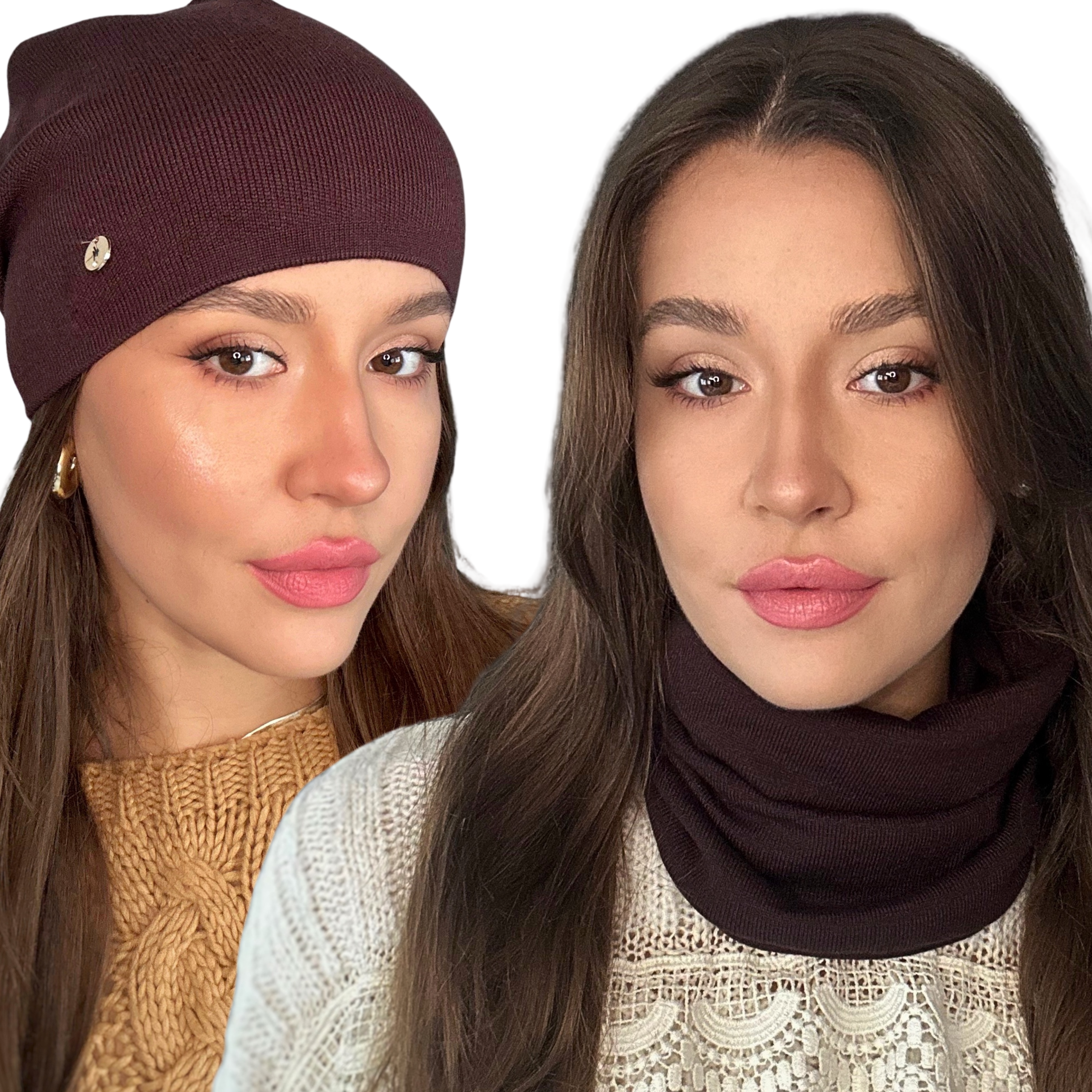 Komplet czapka beanie komin golf tuba jesień zima wiosna wiskozowy czekoladowy 3031