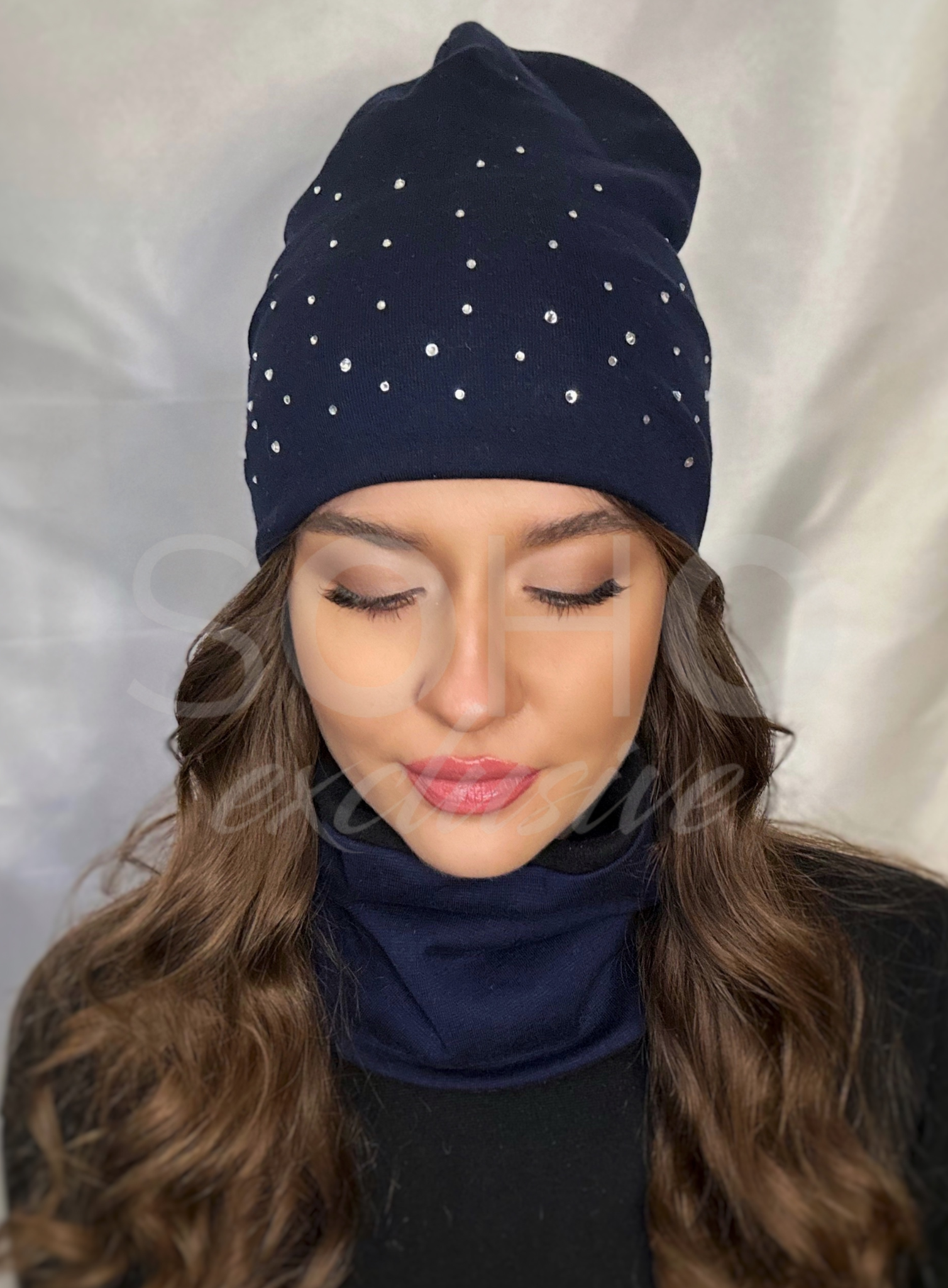 Komplet damski ciepły wygodny zimowy na zimę z polarem czapka + komin granatowy 2262