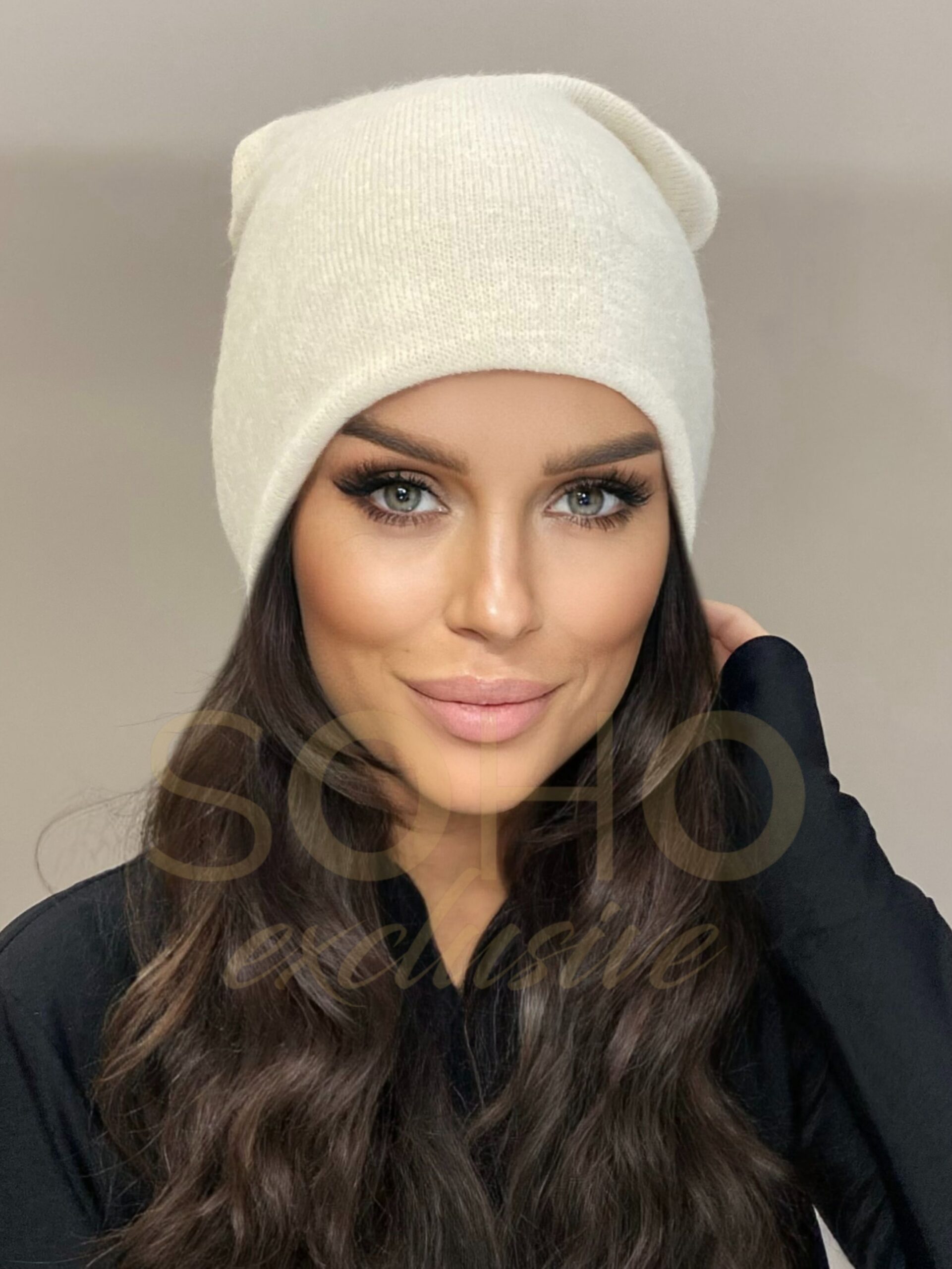 Czapka typu beanie/krasnal, delikatnie opadająca.