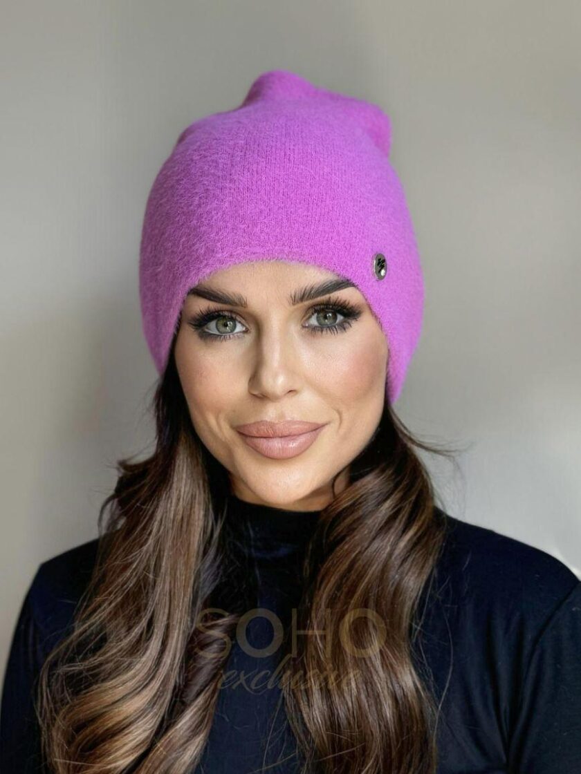 Komplet damski alpaka ciepły modny wygodny kobiecy czapka + komin fioletowy 2263