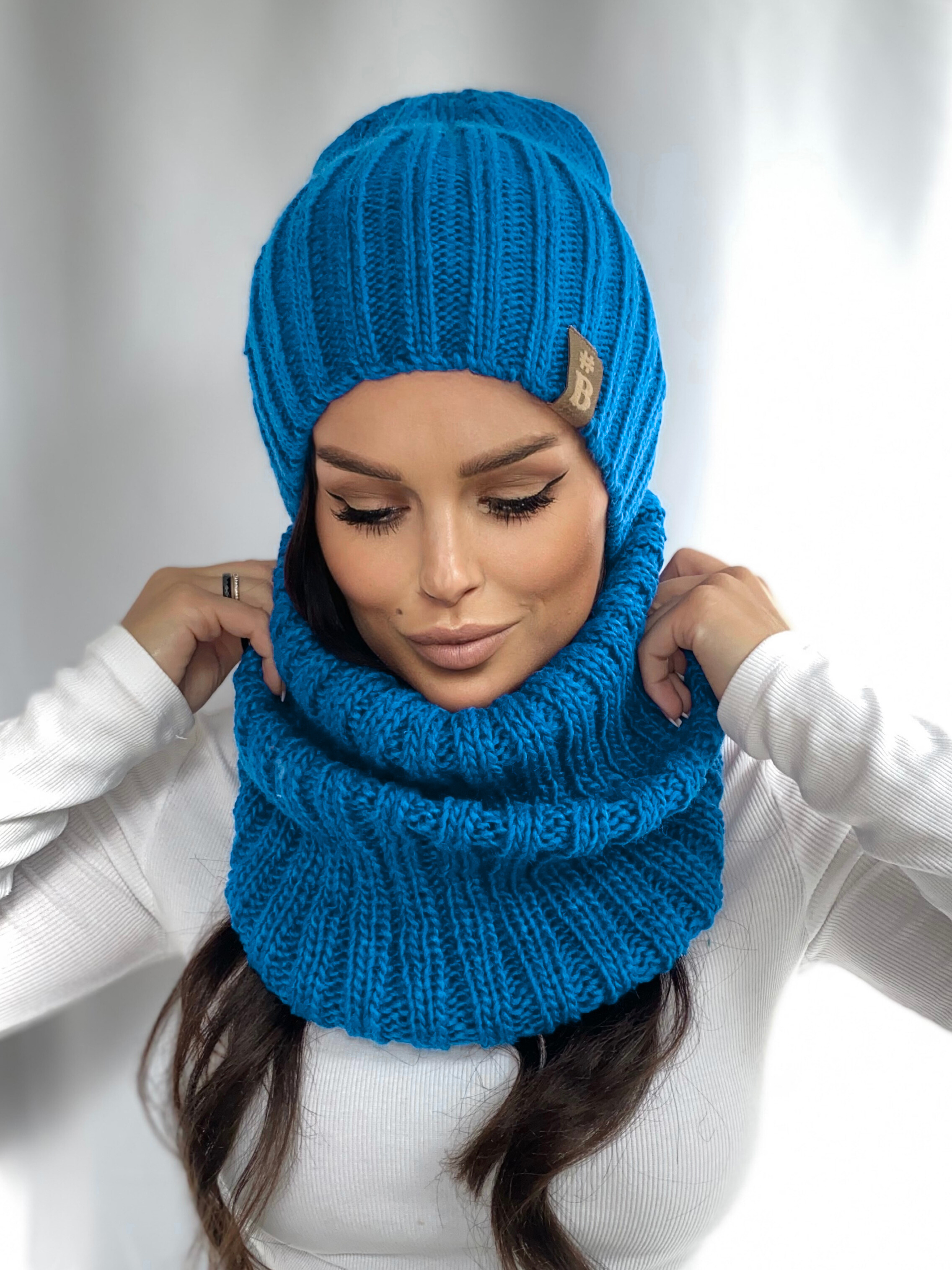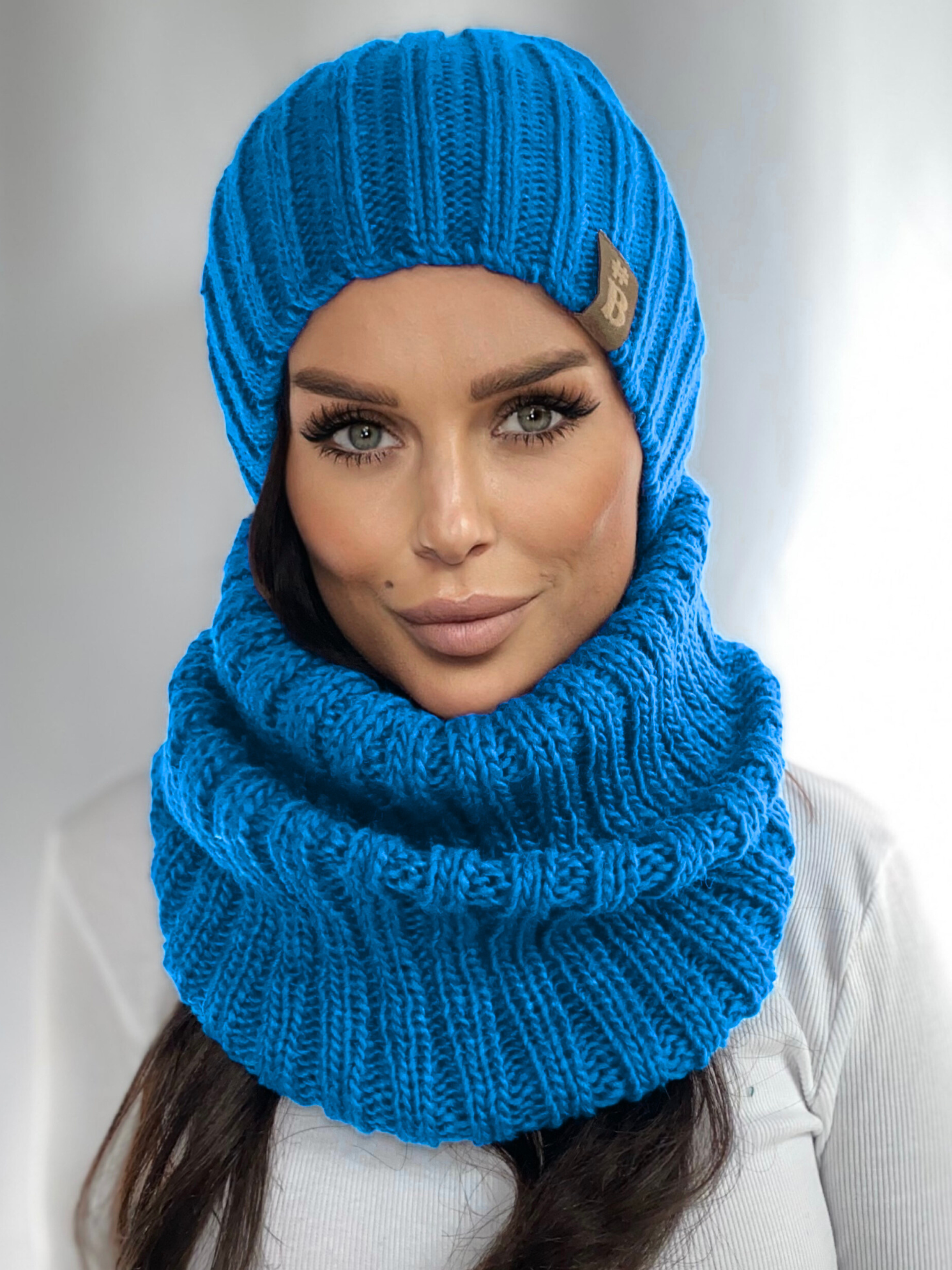 Napisz pierwszą opinię o „Komplet damski czapka beanie komin golf duży zestaw ciepły zimowy wełna lazurowy 2845”