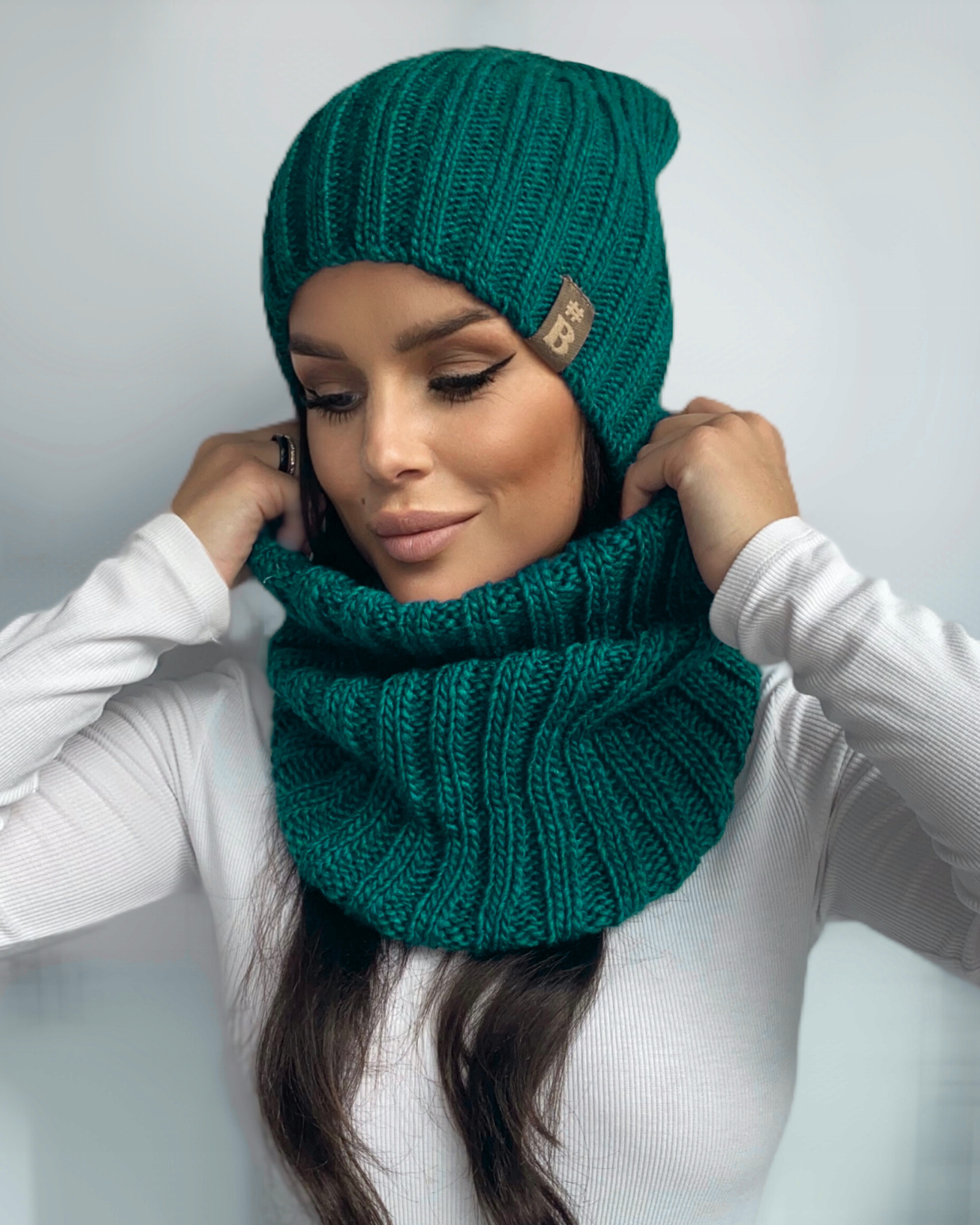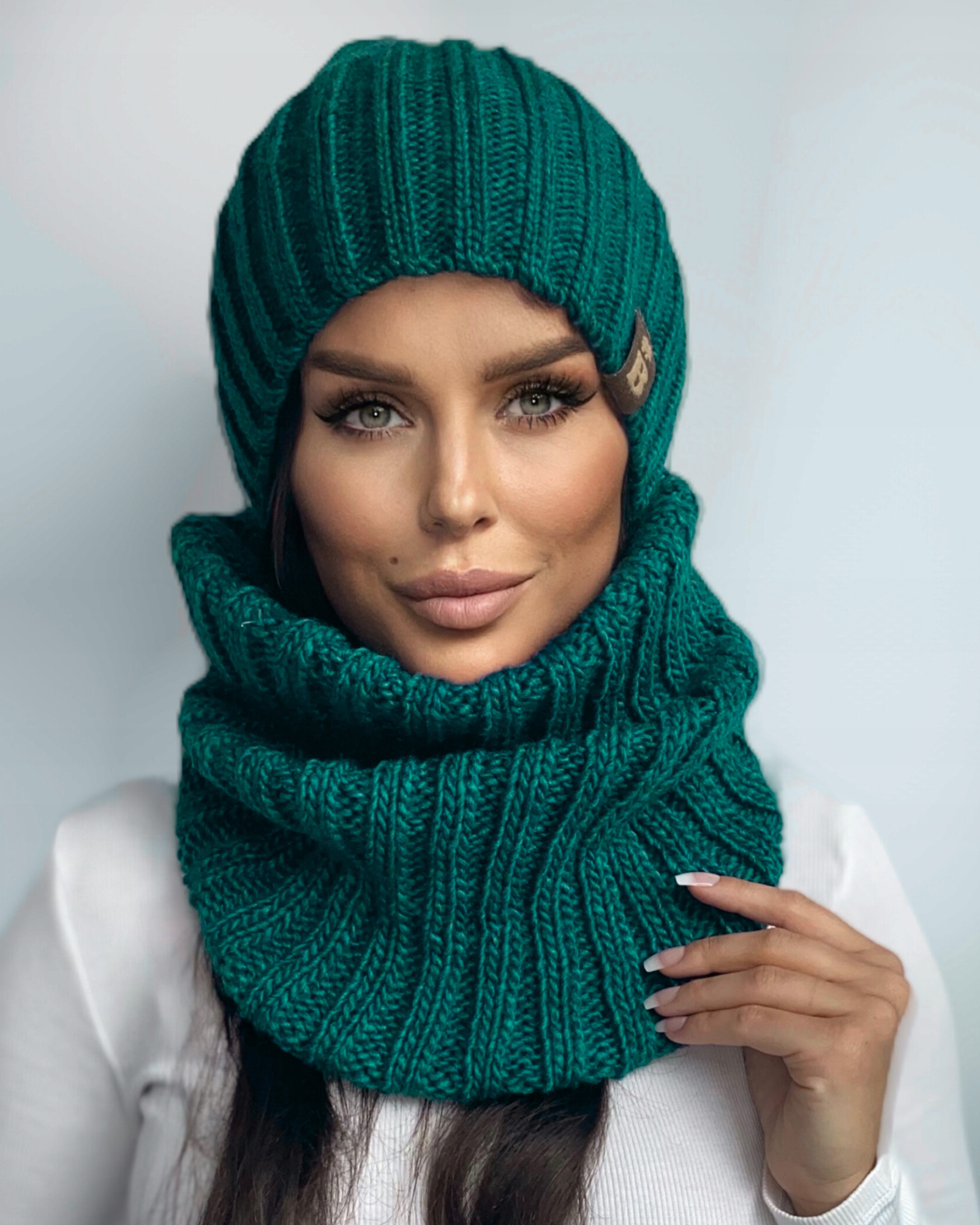 Napisz pierwszą opinię o „Komplet damski czapka beanie komin golf duży zestaw ciepły zimowy wełna morski 2845”