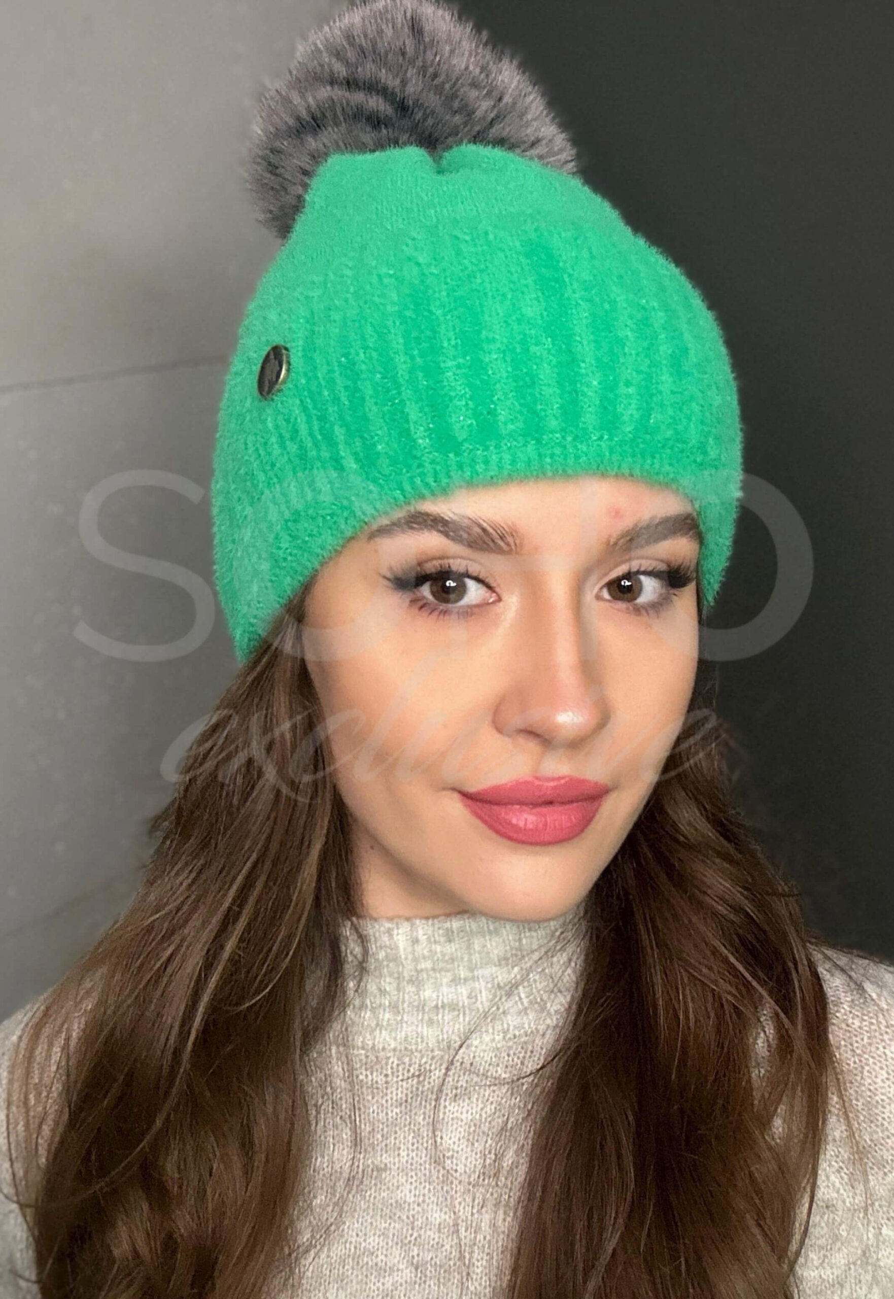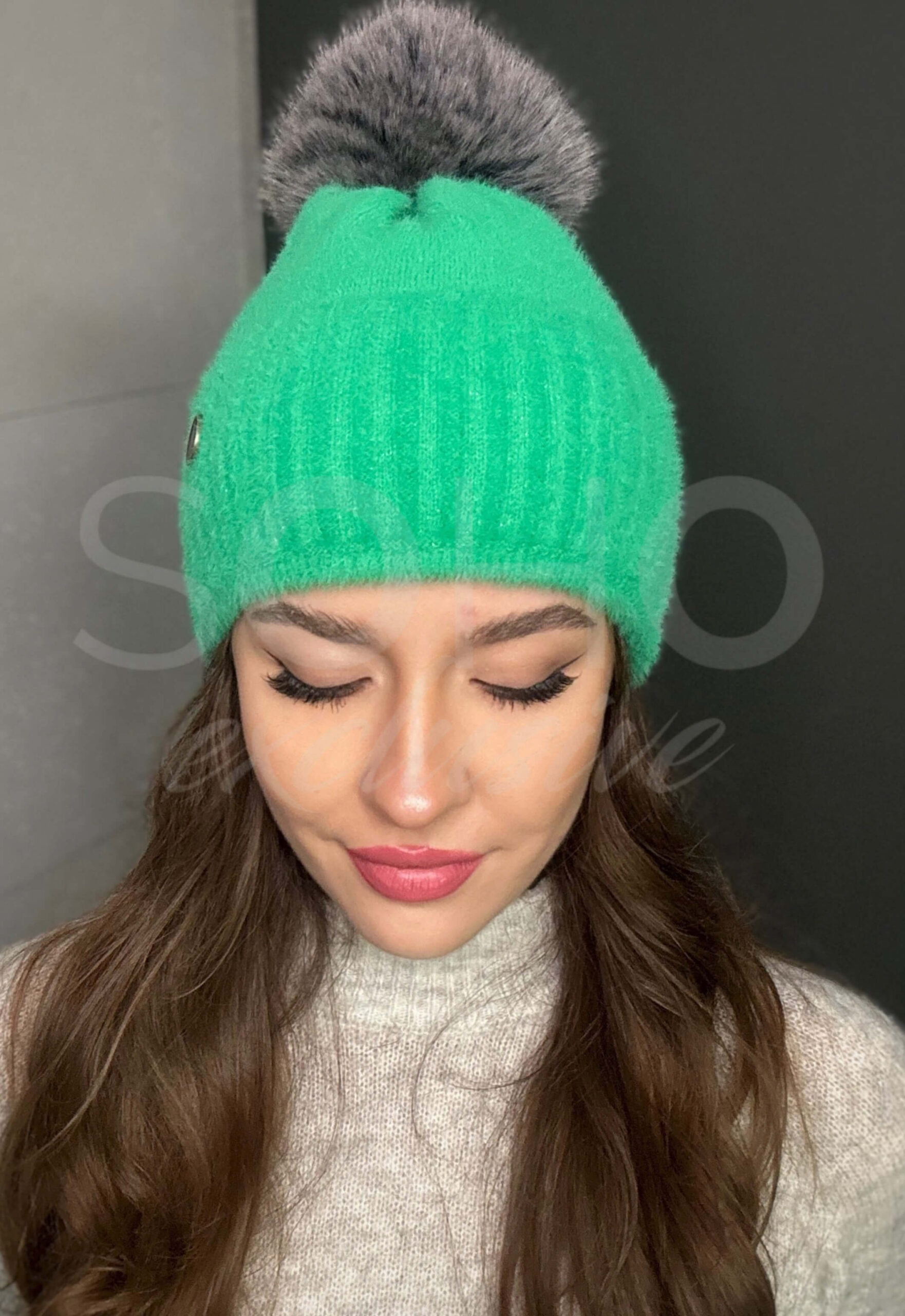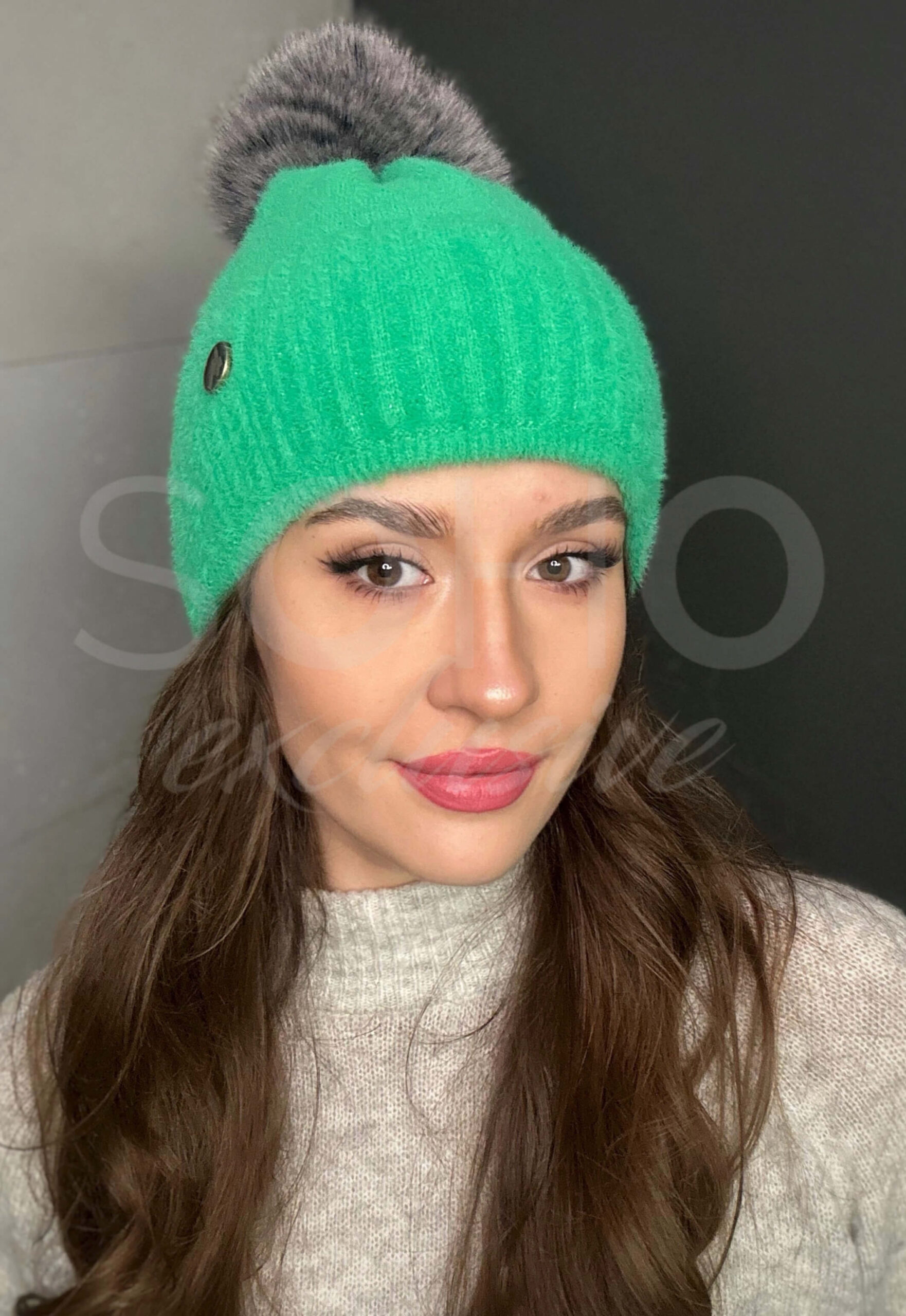 Komplet damski czapka beanie komin golf tuba duży zestaw ciepły sport żywy zielony 2818