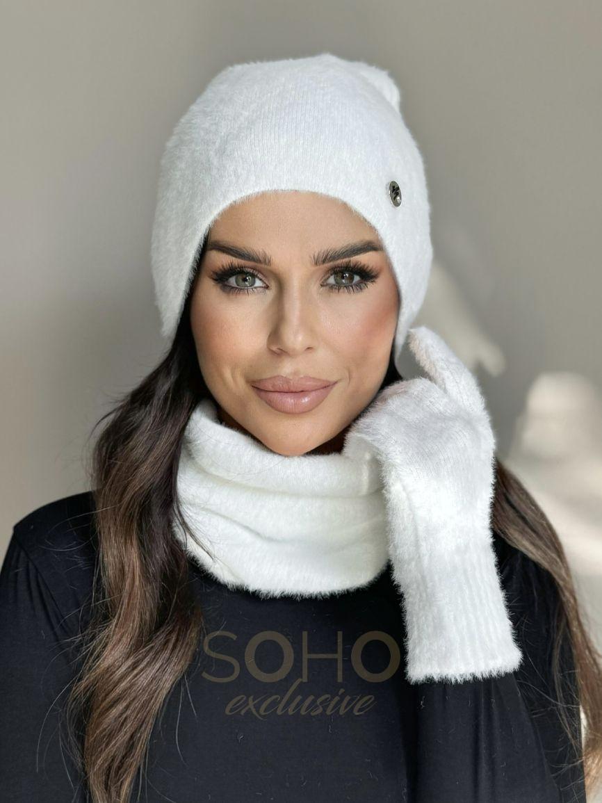 Komplet damski czapka komin golf rękawiczki zestaw ciepły alpaka biały 2911