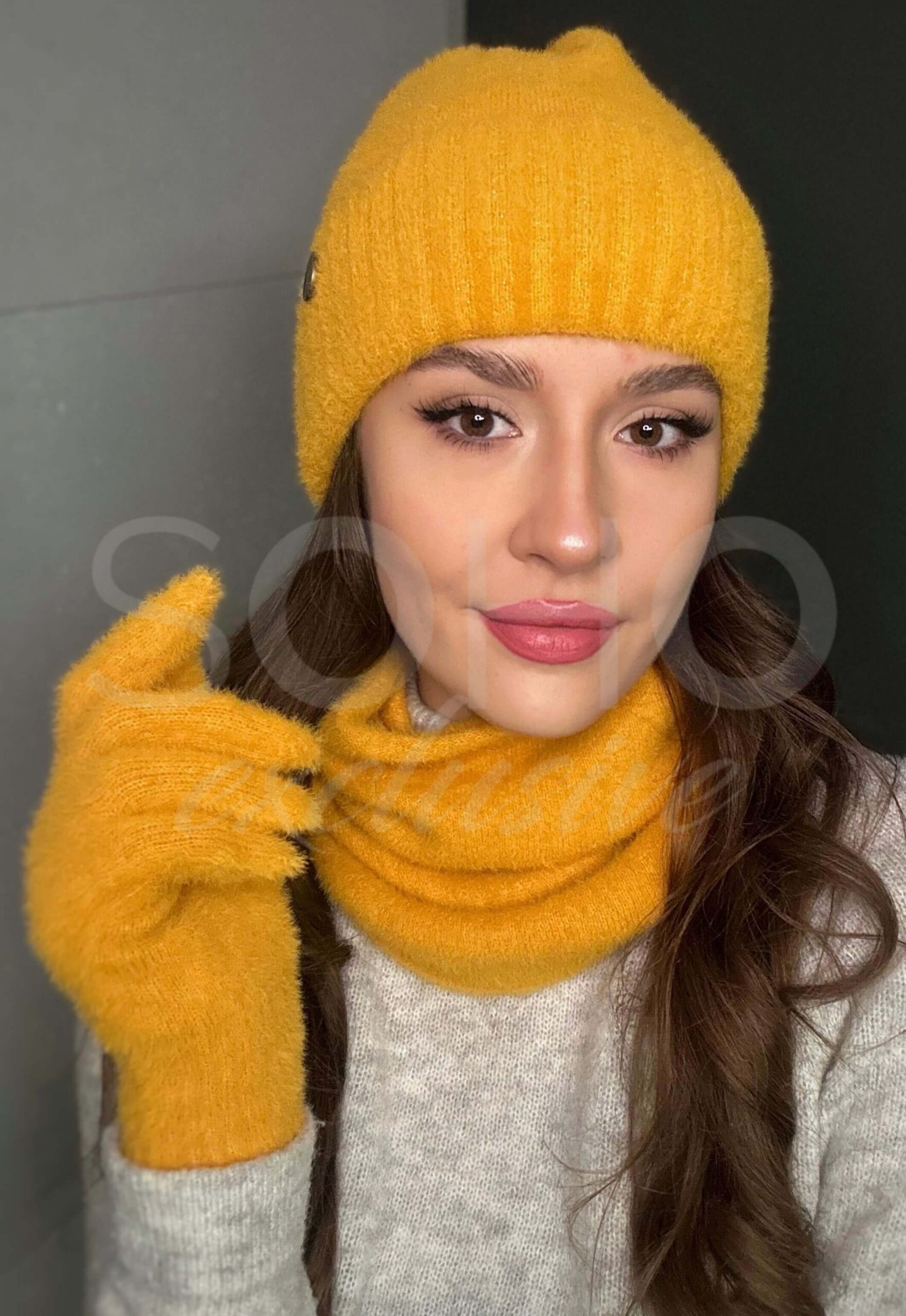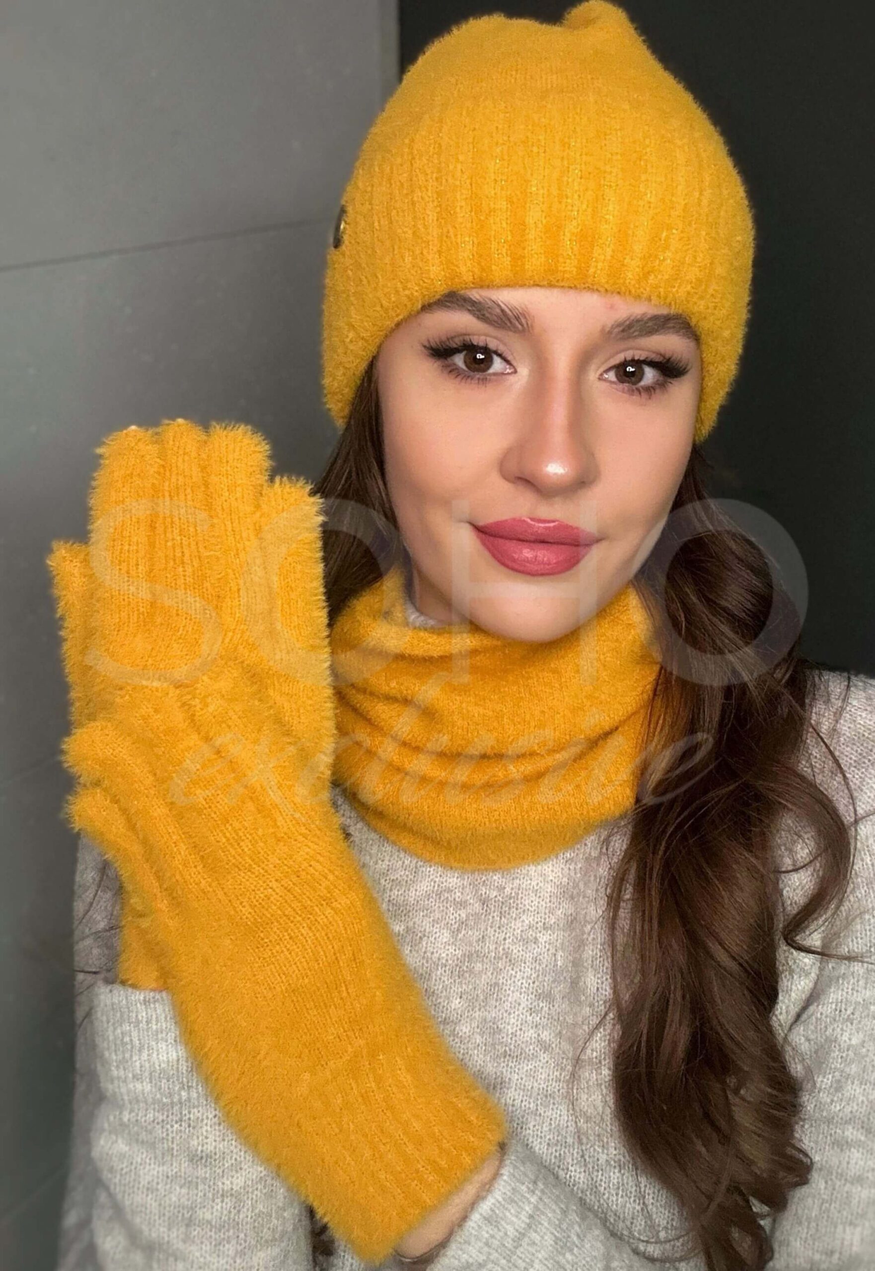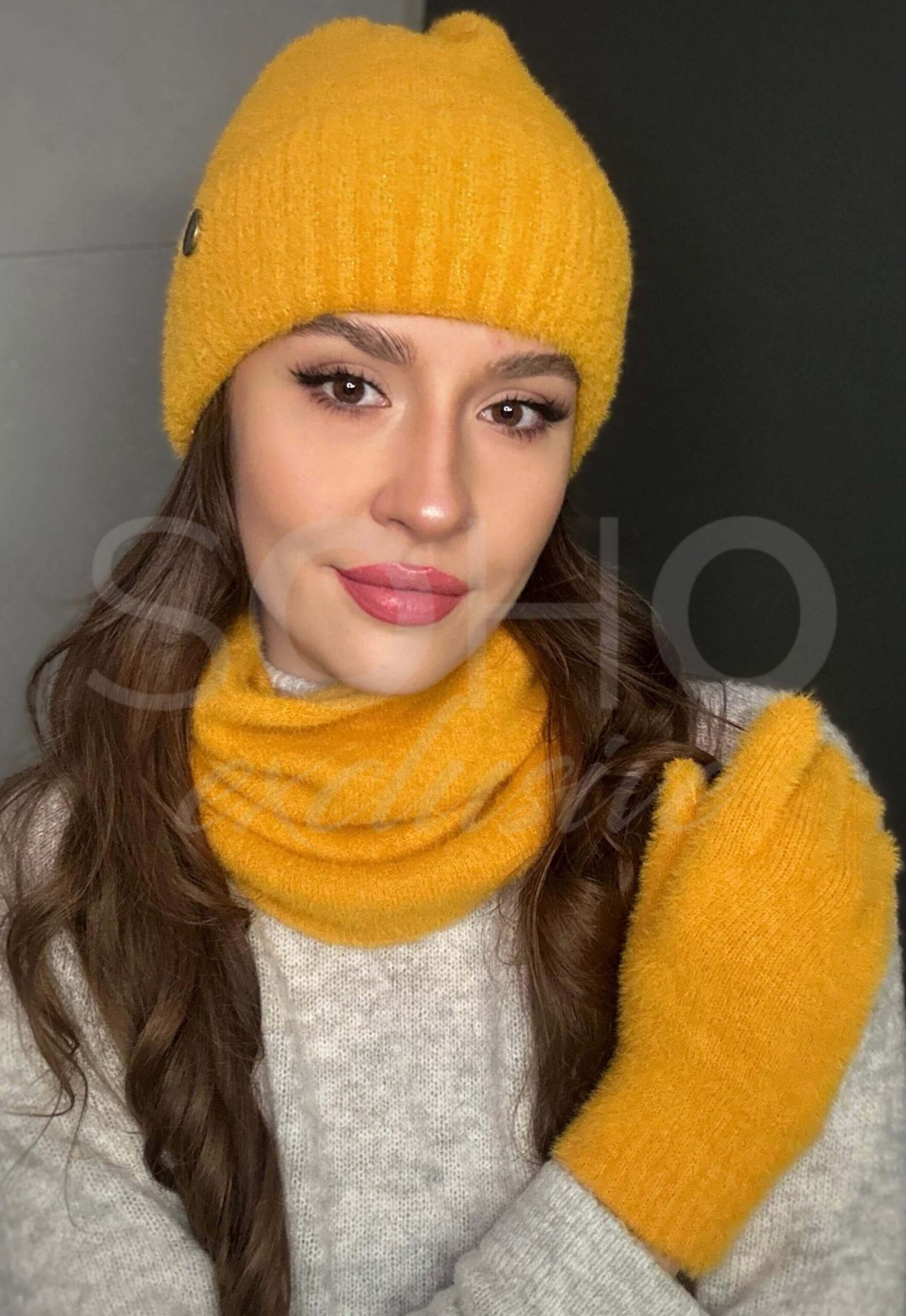 Komplet damski czapka komin golf tuba rękawiczki zestaw ciepły alpaka pomarańczowy 3069