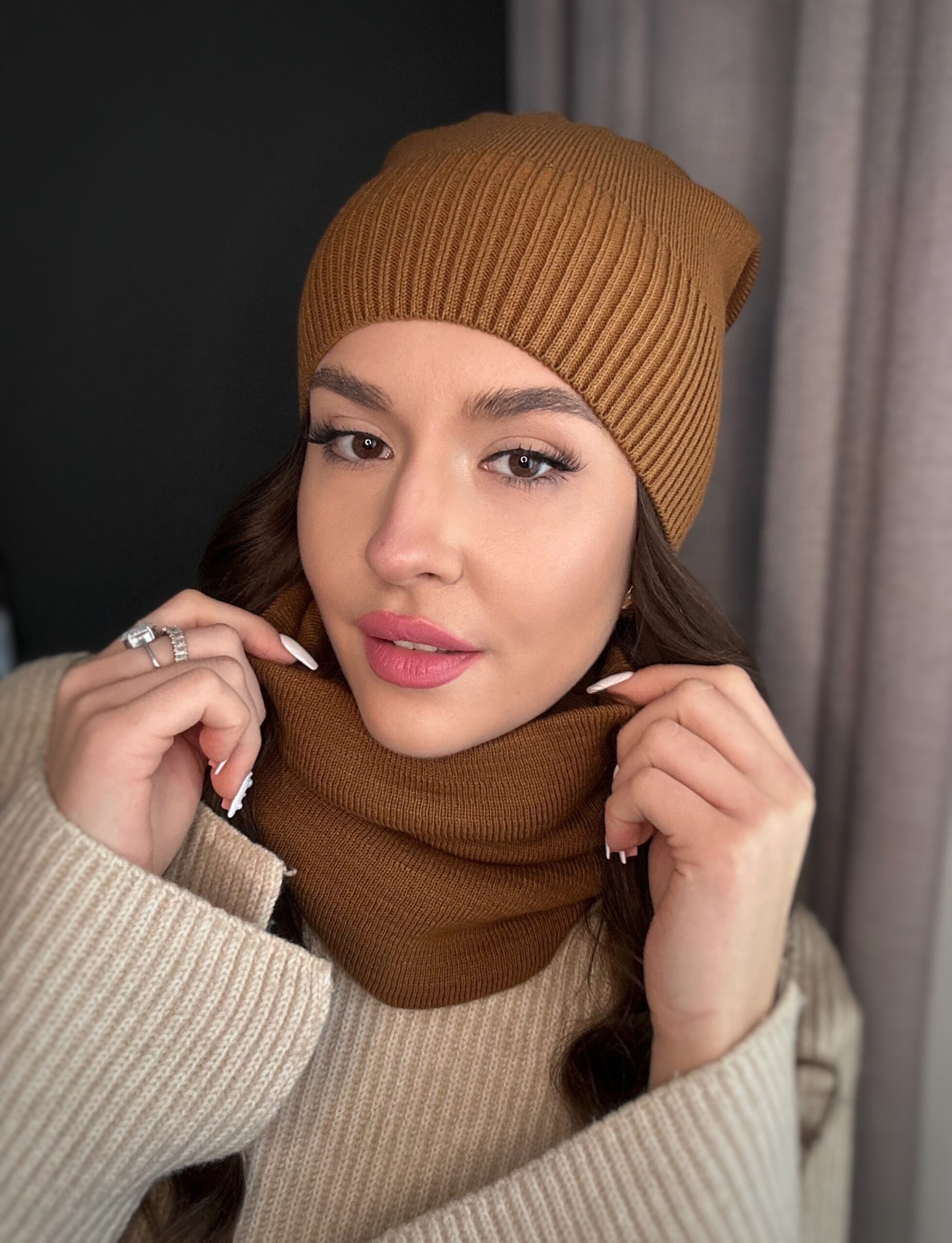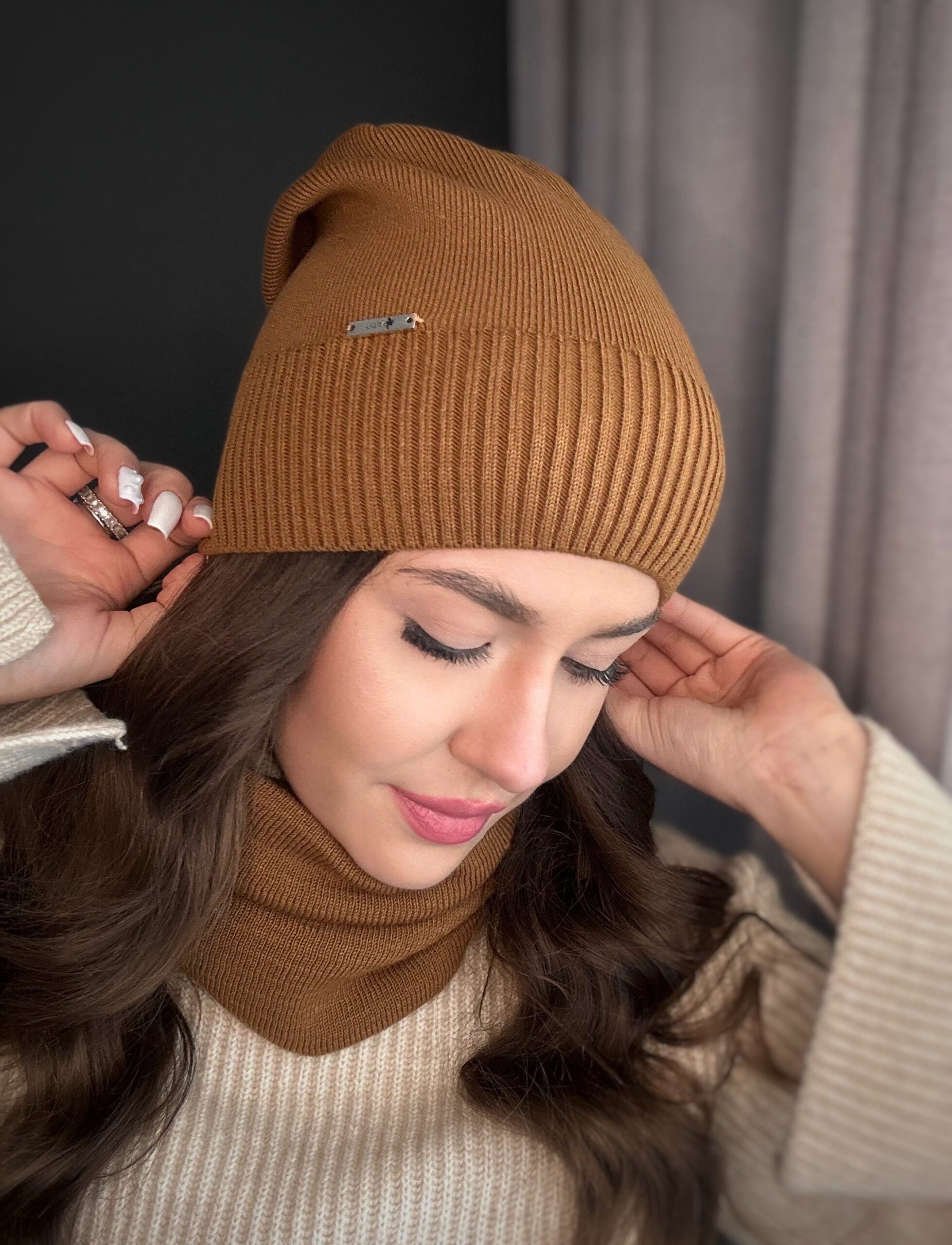 Napisz pierwszą opinię o „Komplet damski czapka komin wiosna jesień lekki wygodny elegancki brązowy 2917”