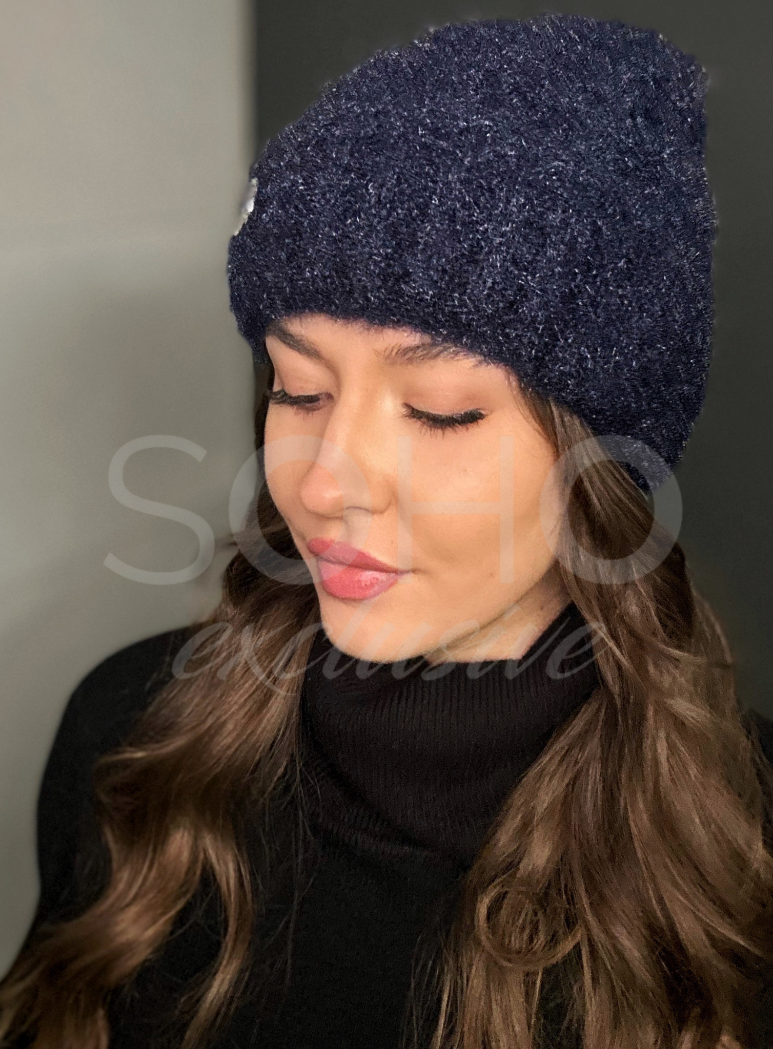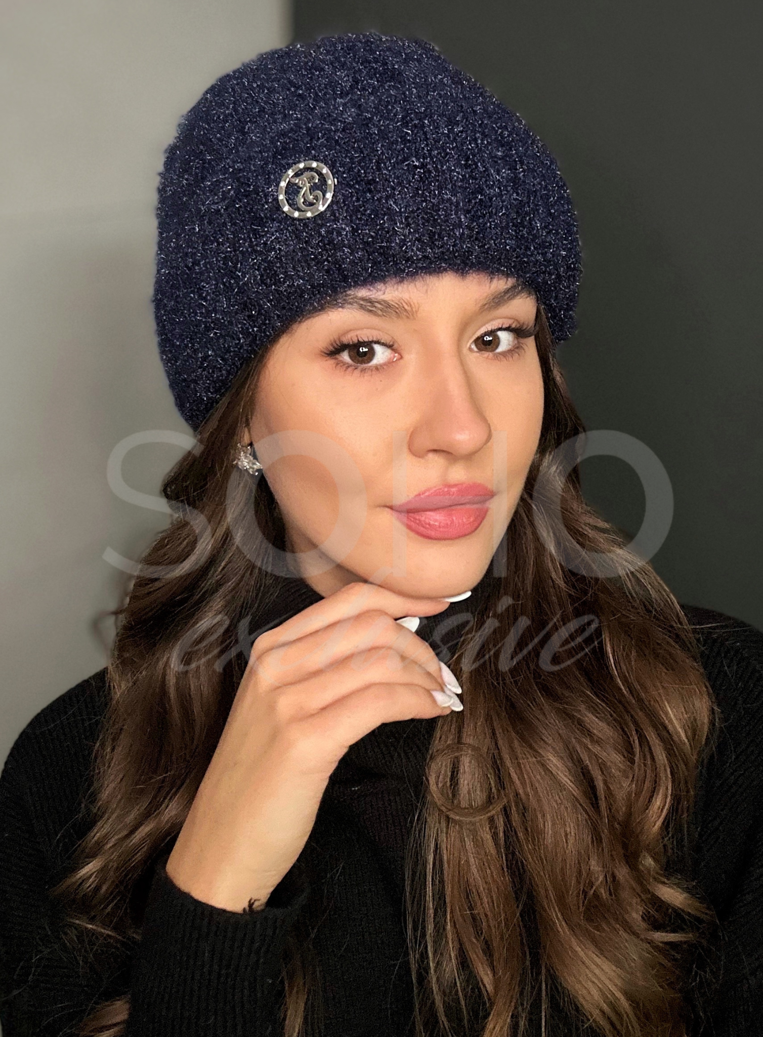 Czapka typu beanie/krasnal, delikatnie opadająca, wywijana, z subtelnym logowaniem.