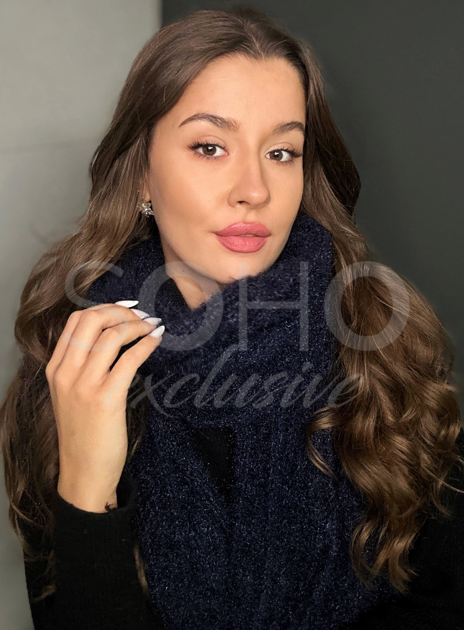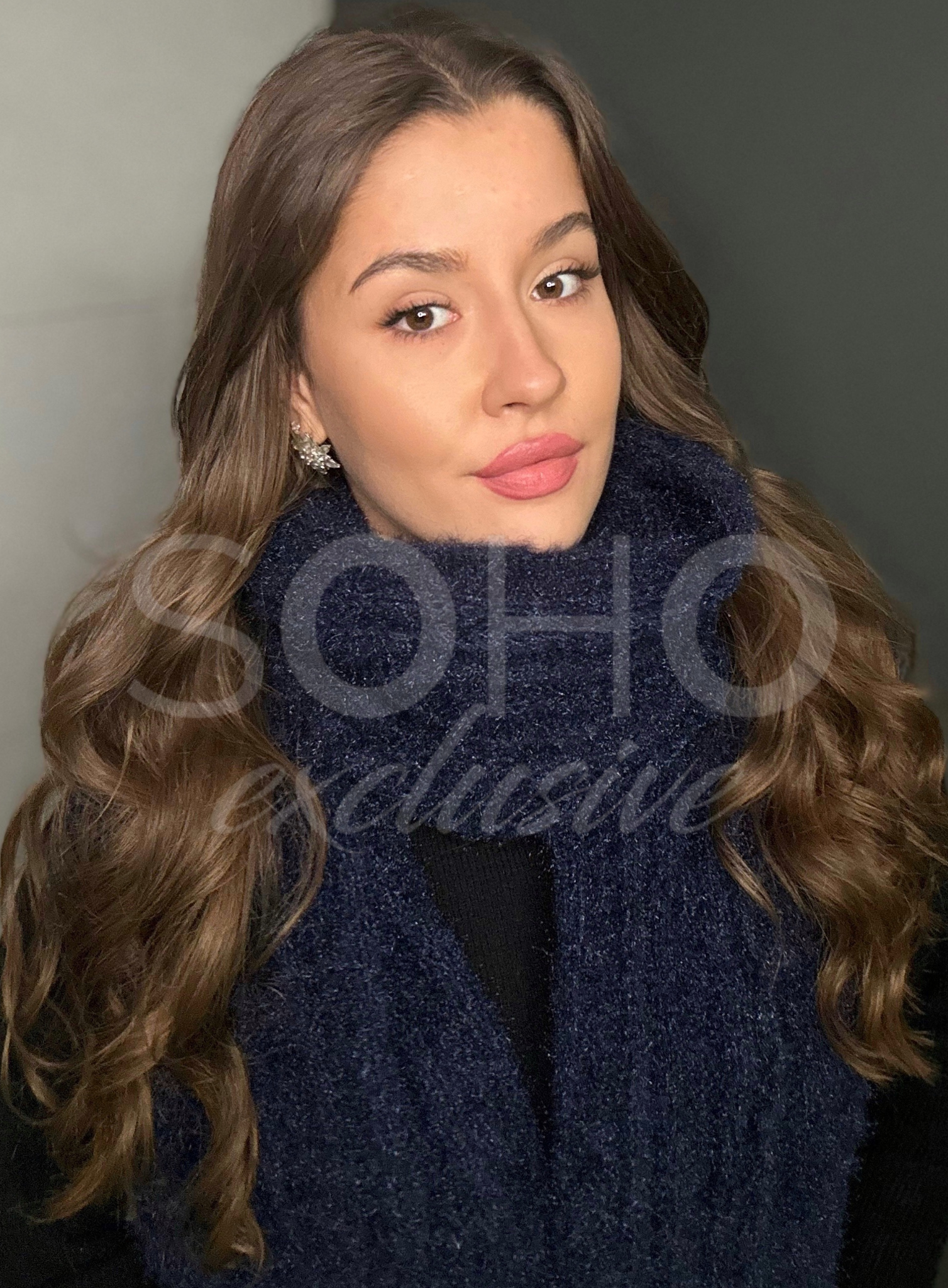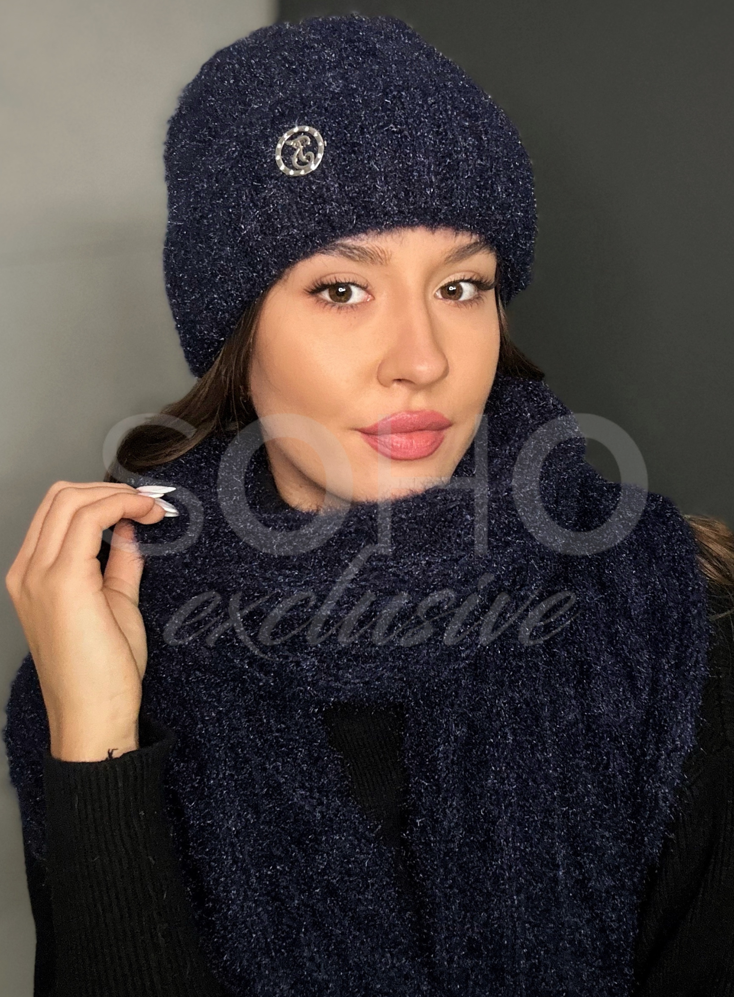 Komplet damski czapka szalik szal długi ciepły gruby zimowy granatowy 3049