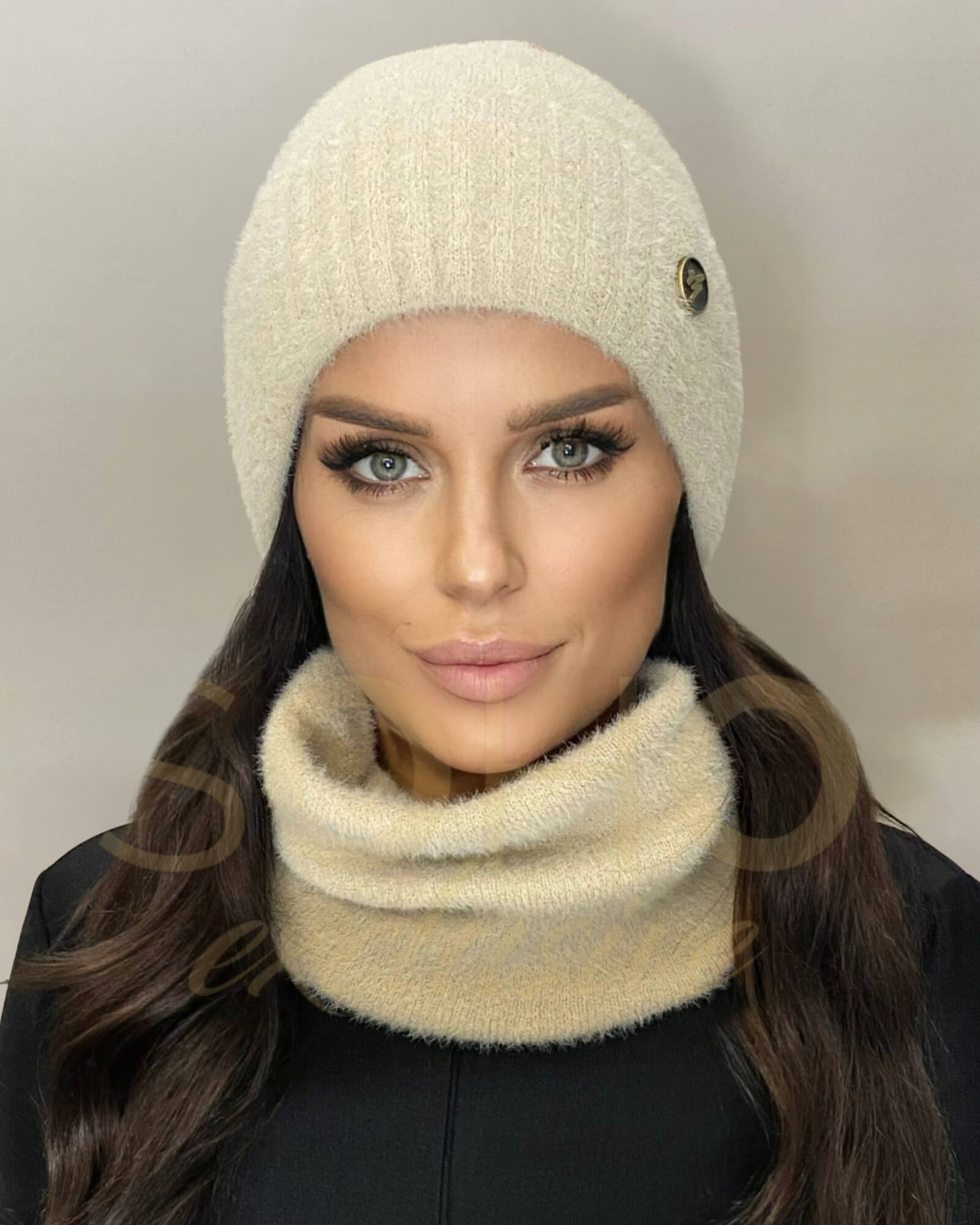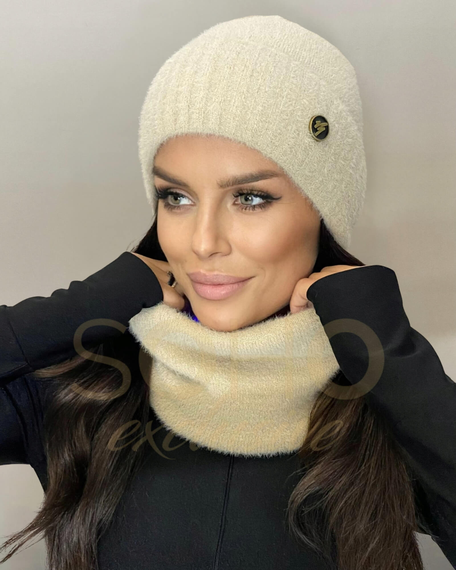 Komplet wykonany z uciągliwego, niezwykle ciepłego i przyjemnego materiału (cashmere touch -100% akryl).