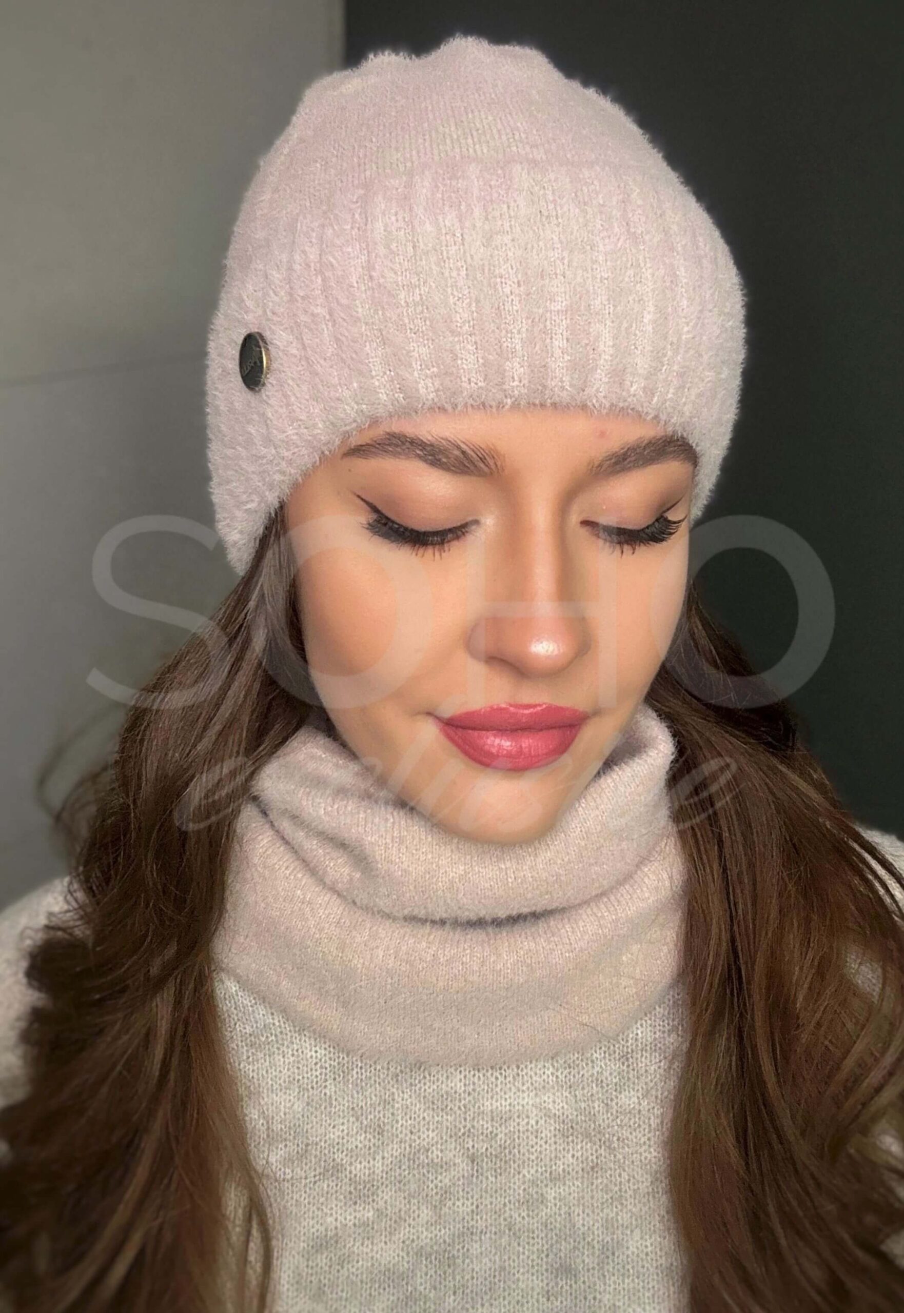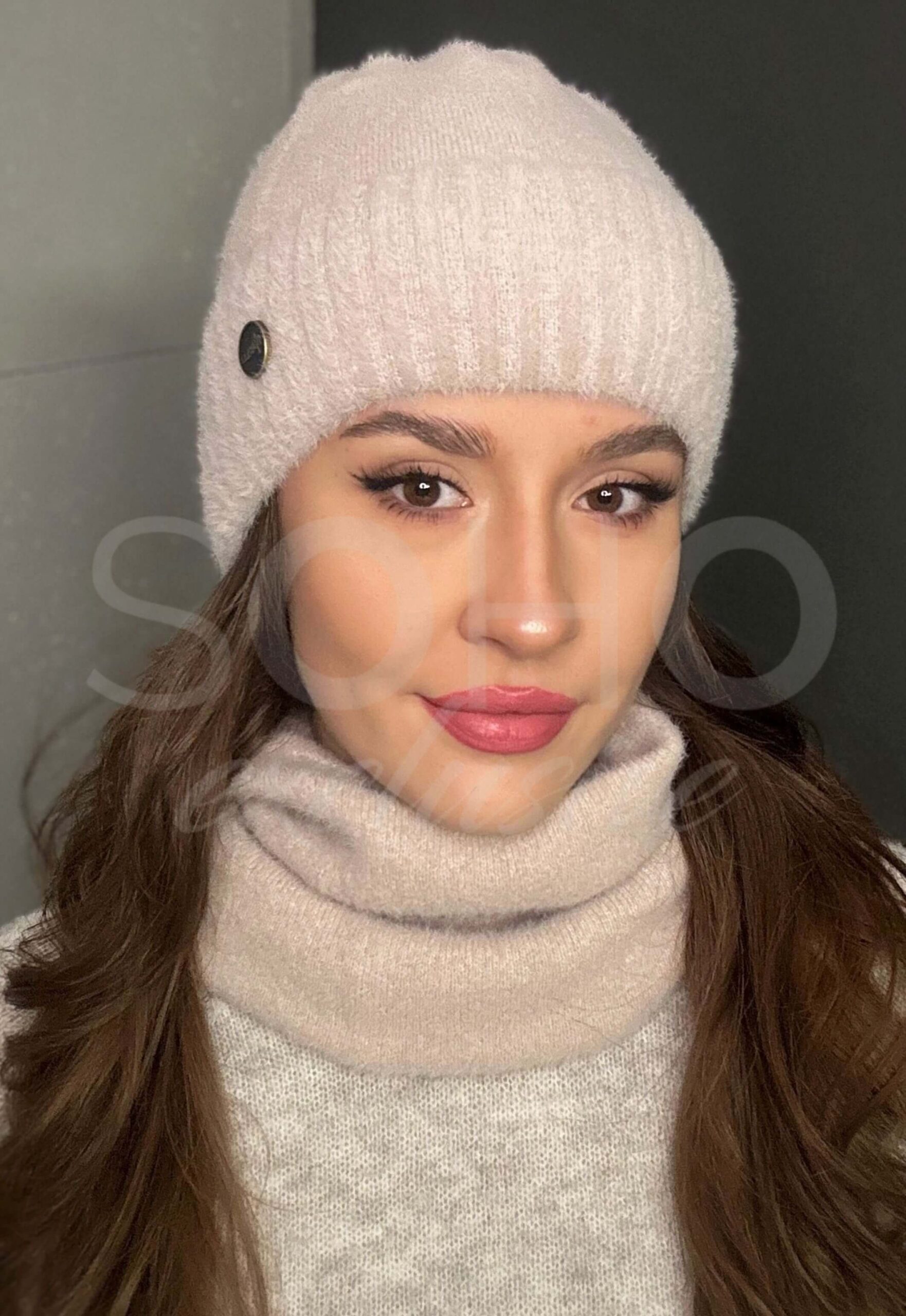 Komplet wykonany z uciągliwego, niezwykle ciepłego i przyjemnego materiału (cashmere touch -100% akryl).