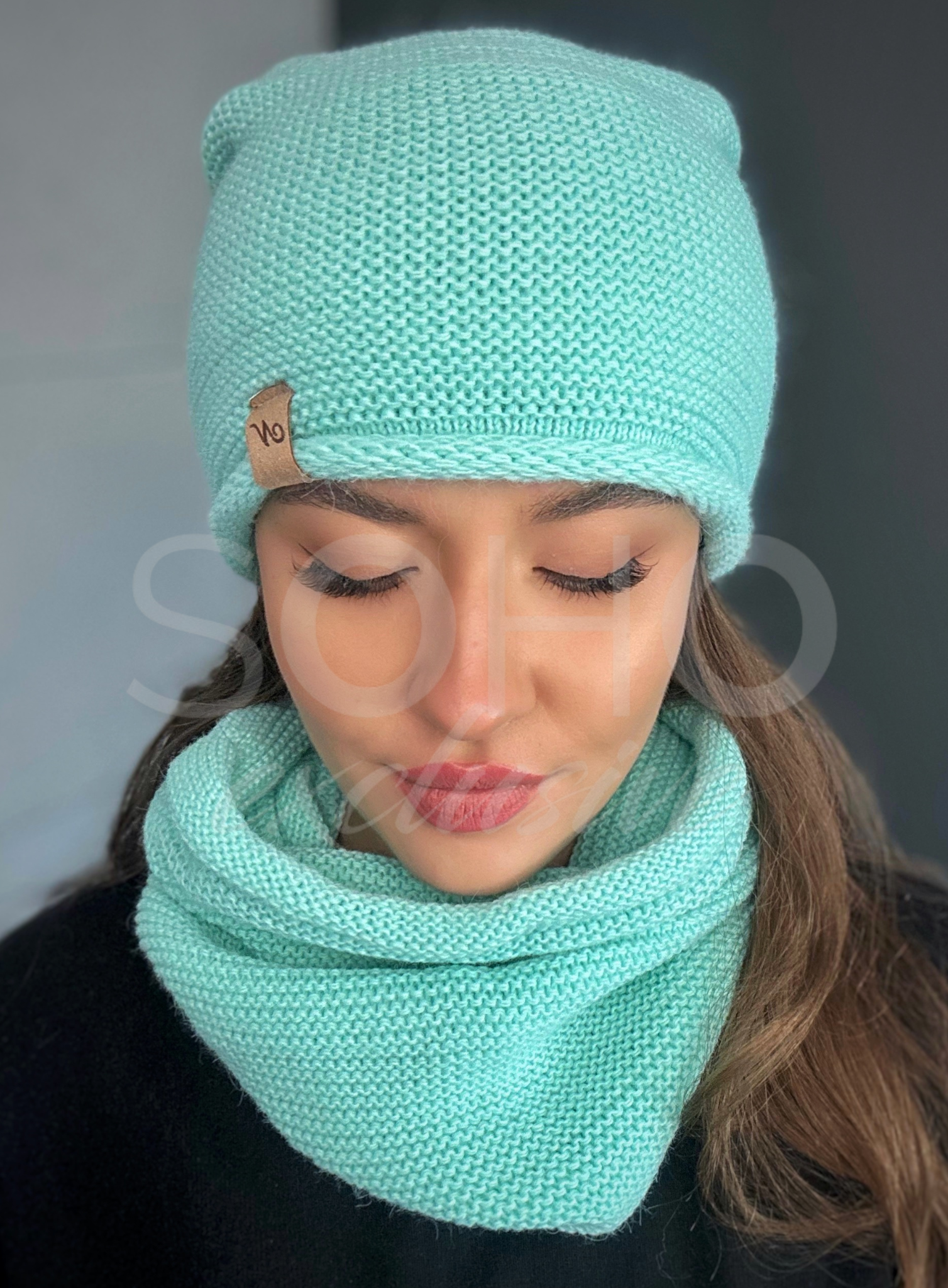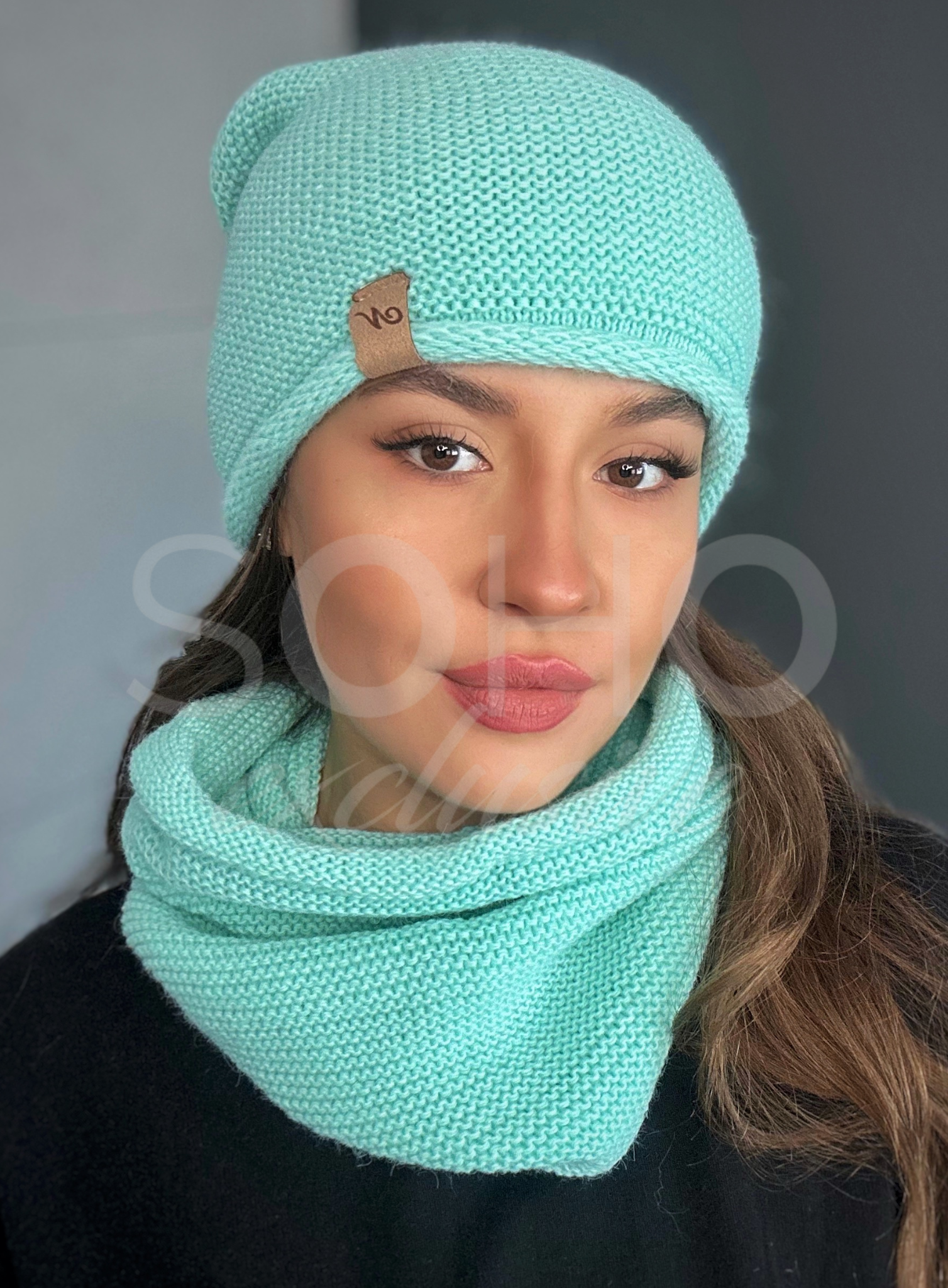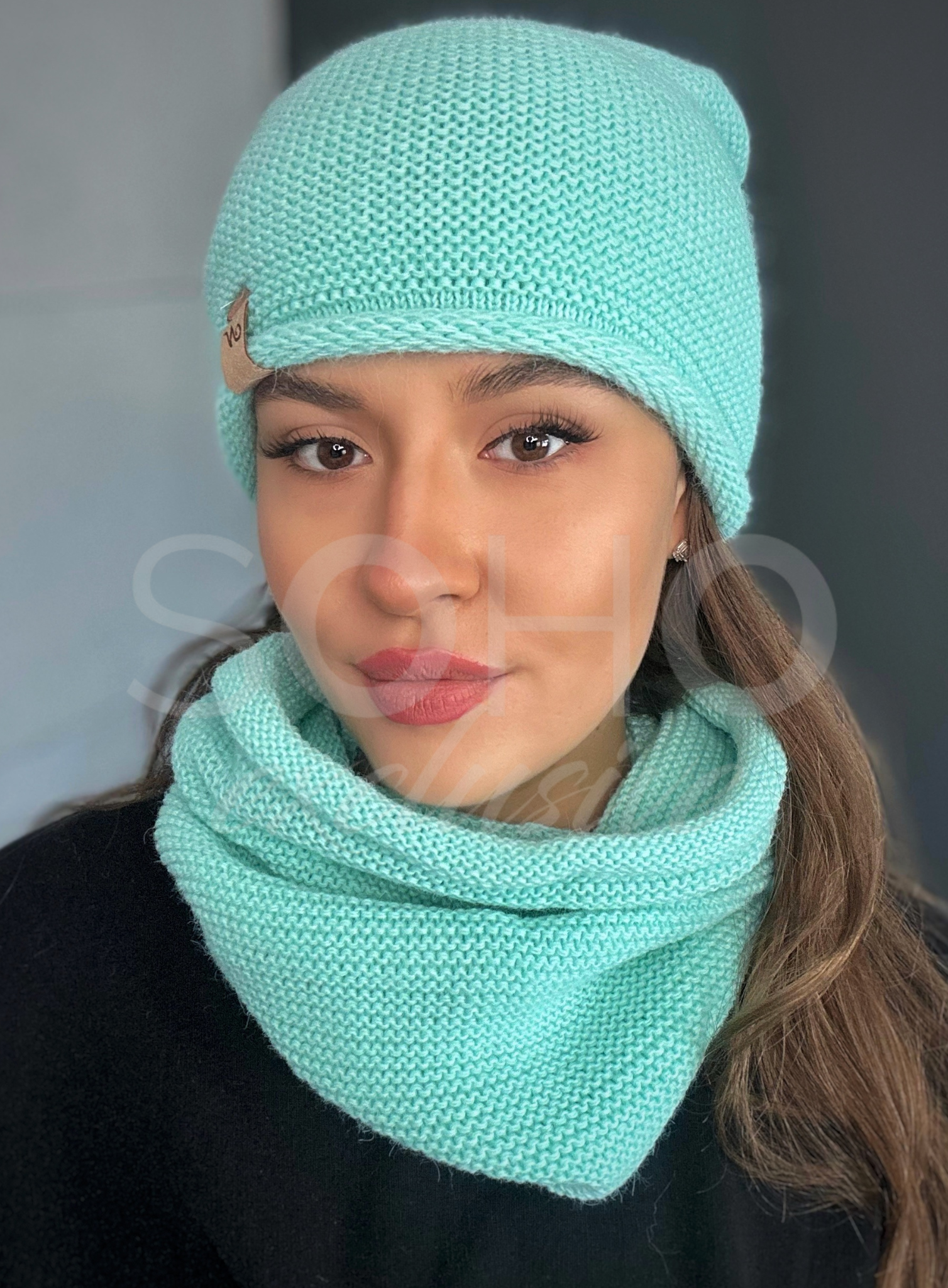 Komplet damski kobiecy młodzieżowy czapka beanie komin golf tuba zimowy miętowy 3051