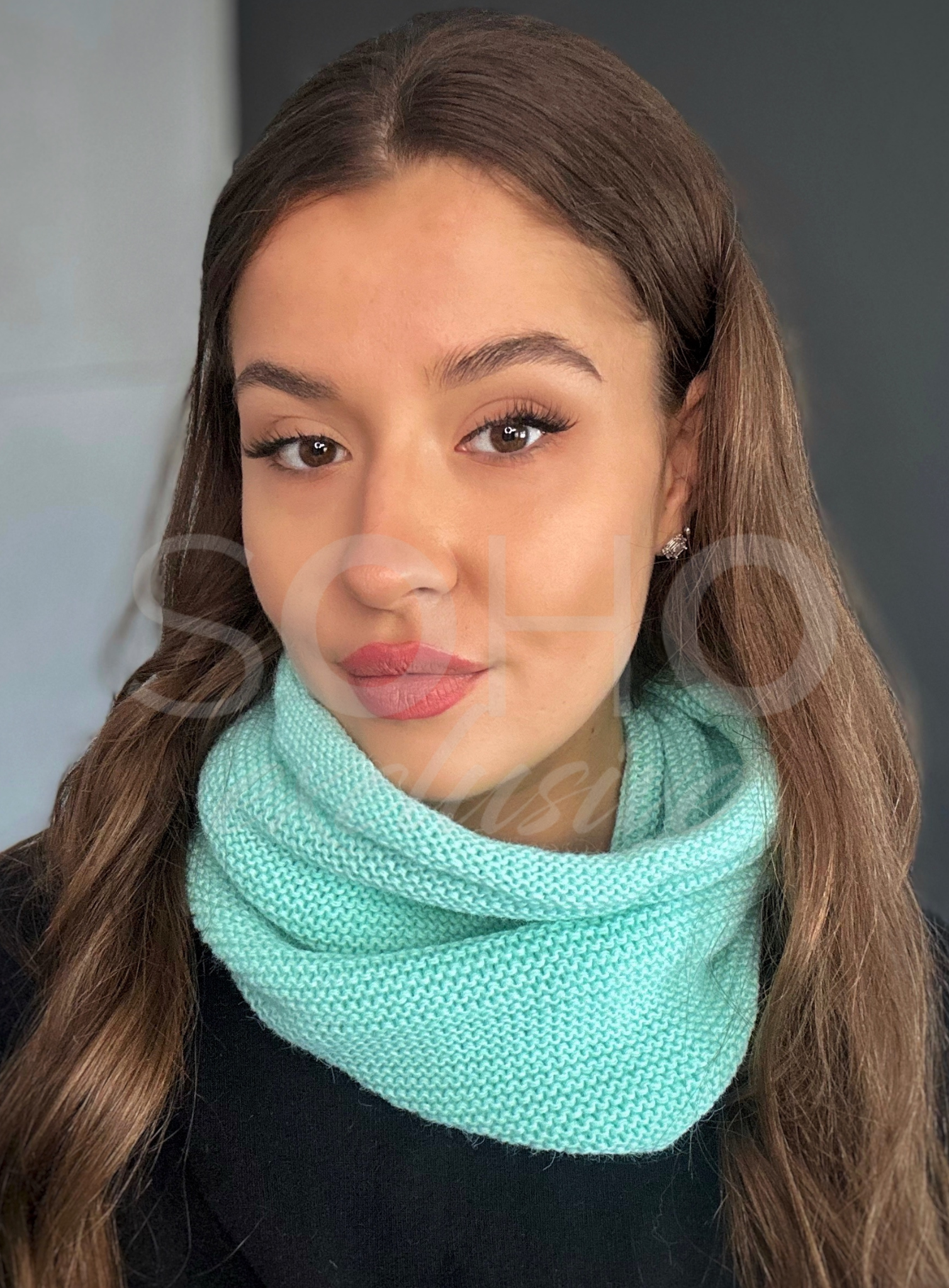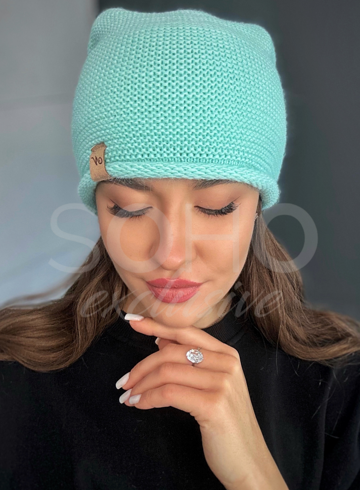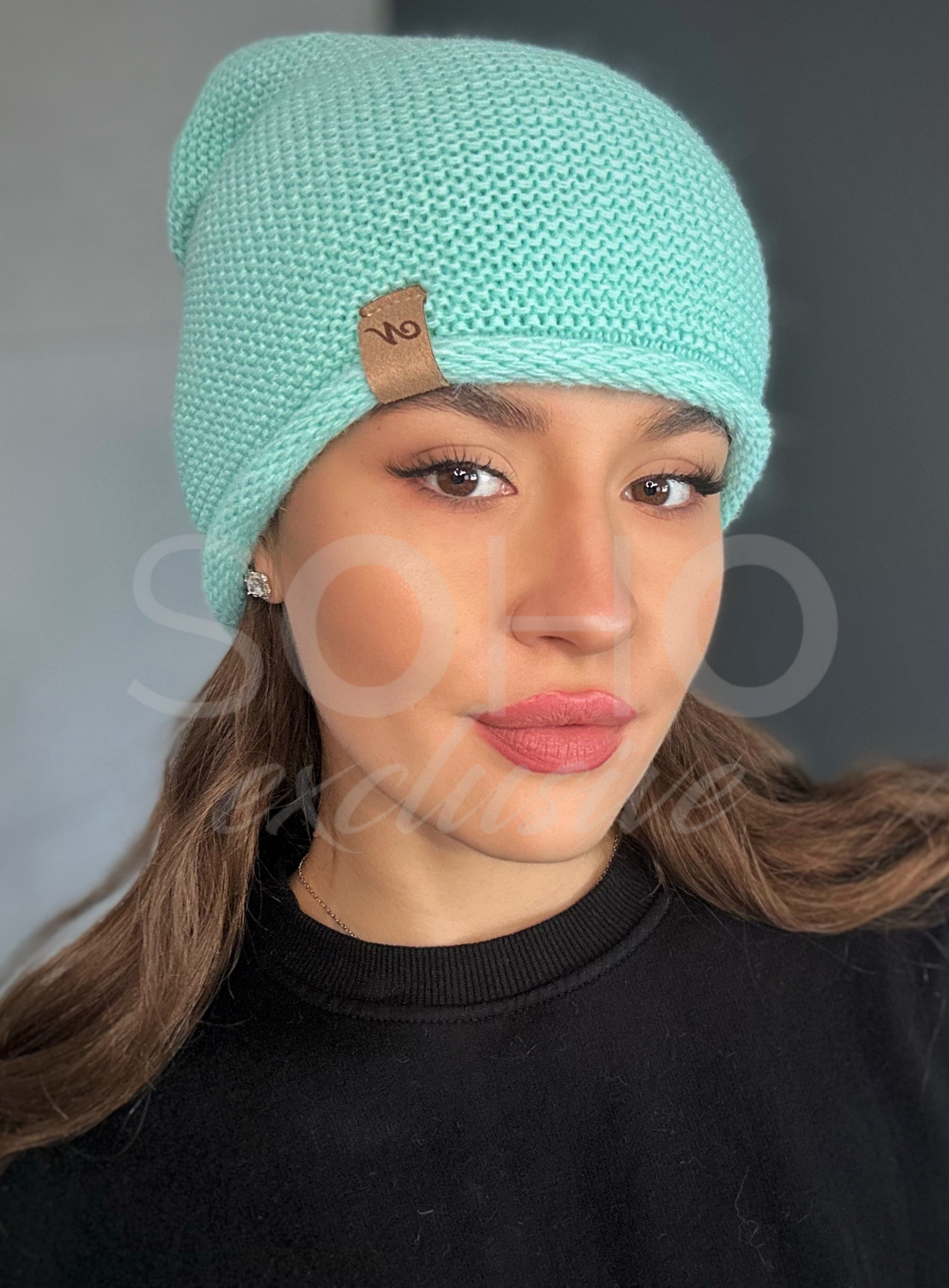 Komplet damski kobiecy młodzieżowy czapka beanie komin golf tuba zimowy miętowy 3051