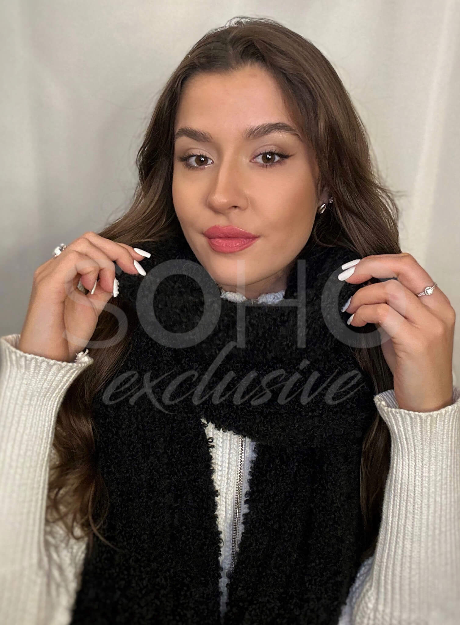 Wykonany z imitacji kożuszka z domieszką wełny.