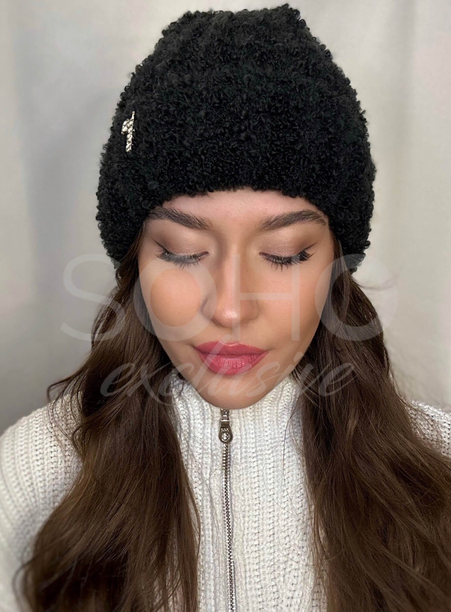 Napisz pierwszą opinię o „Komplet damski młodzież czapka beanie szal długi zima boucle wełna czarny 3067”