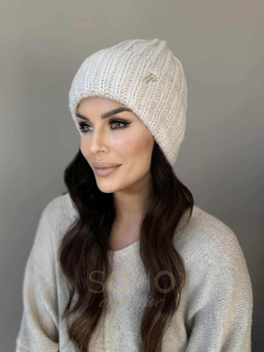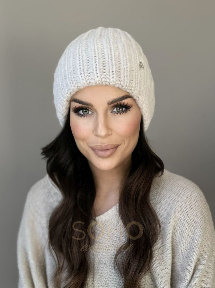 Czapka wywijana, delikatnie opadająca, logowana delikatną metką.