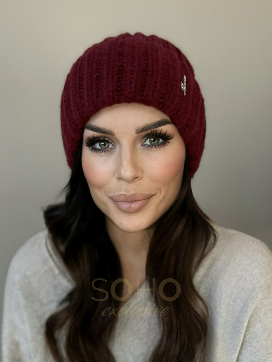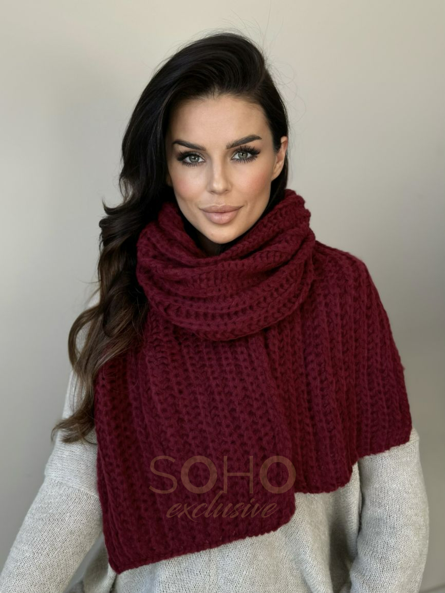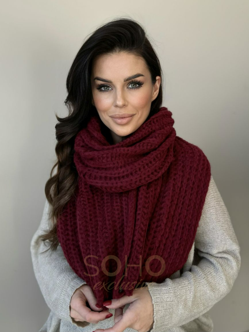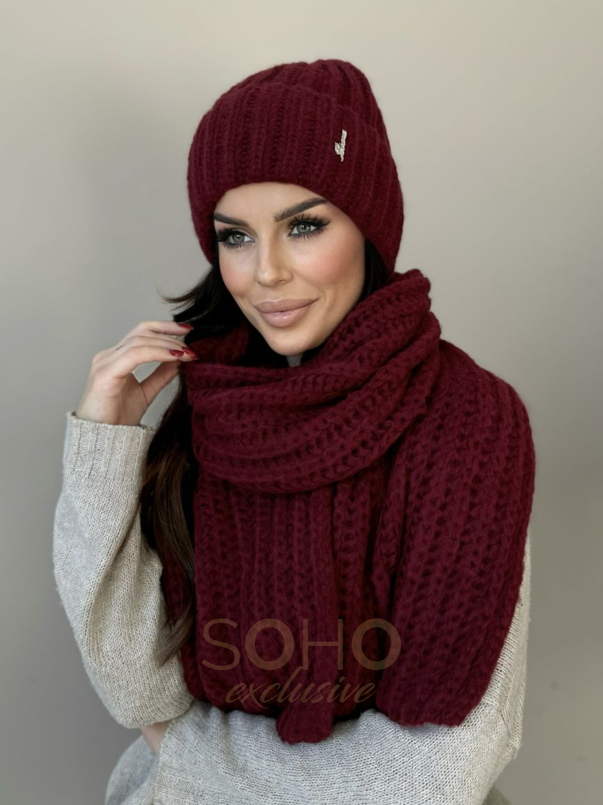 Komplet damski młodzieżowy czapka beanie szal długi wełna zimowy na zimę bordowy 2994