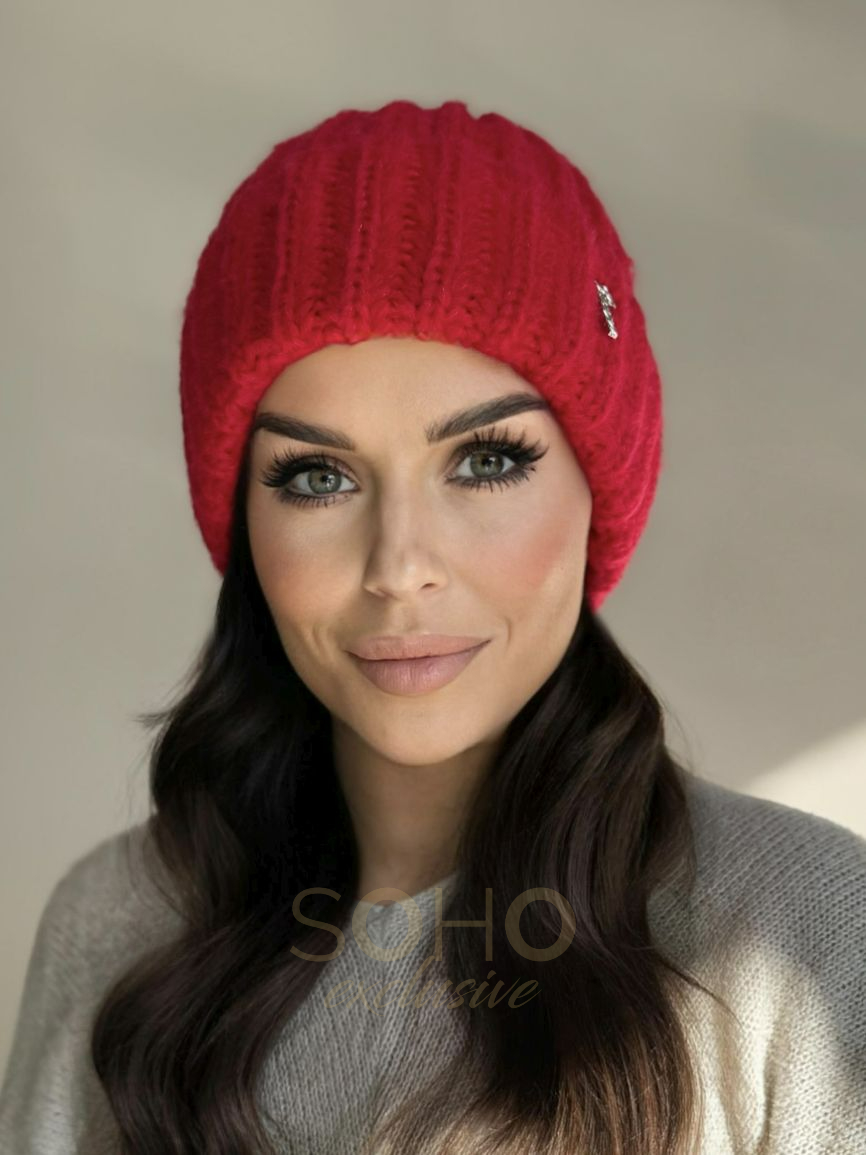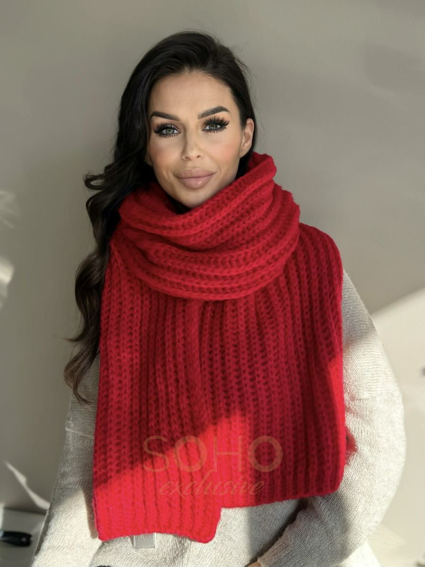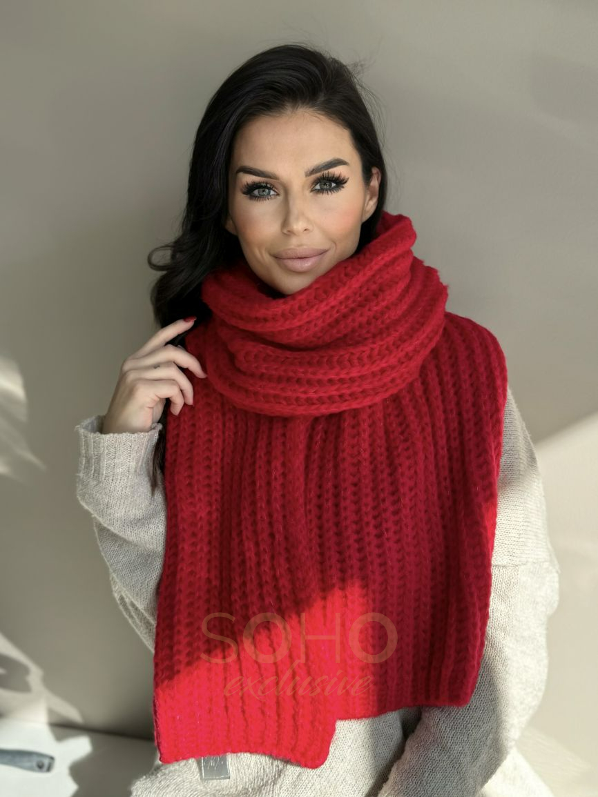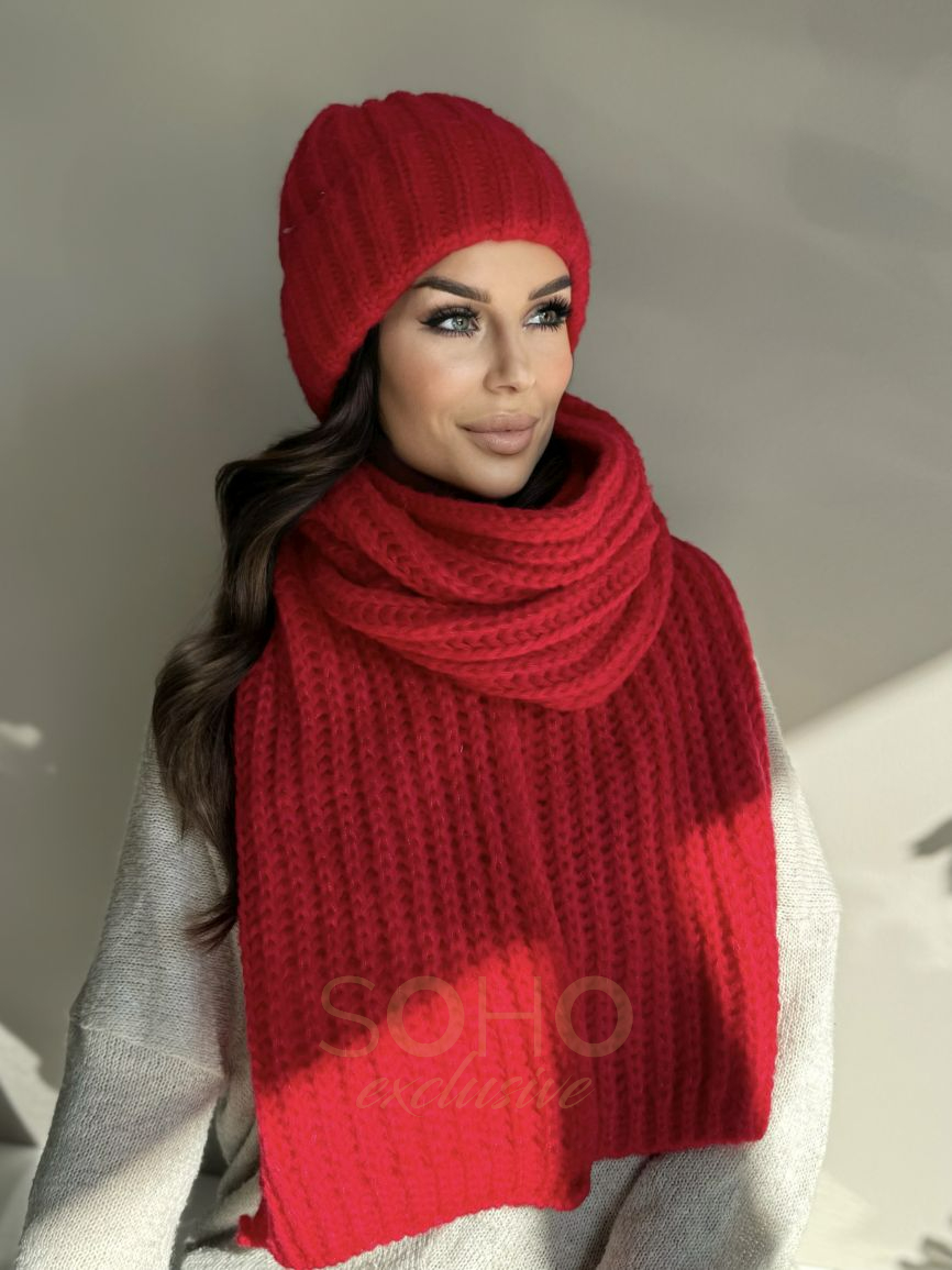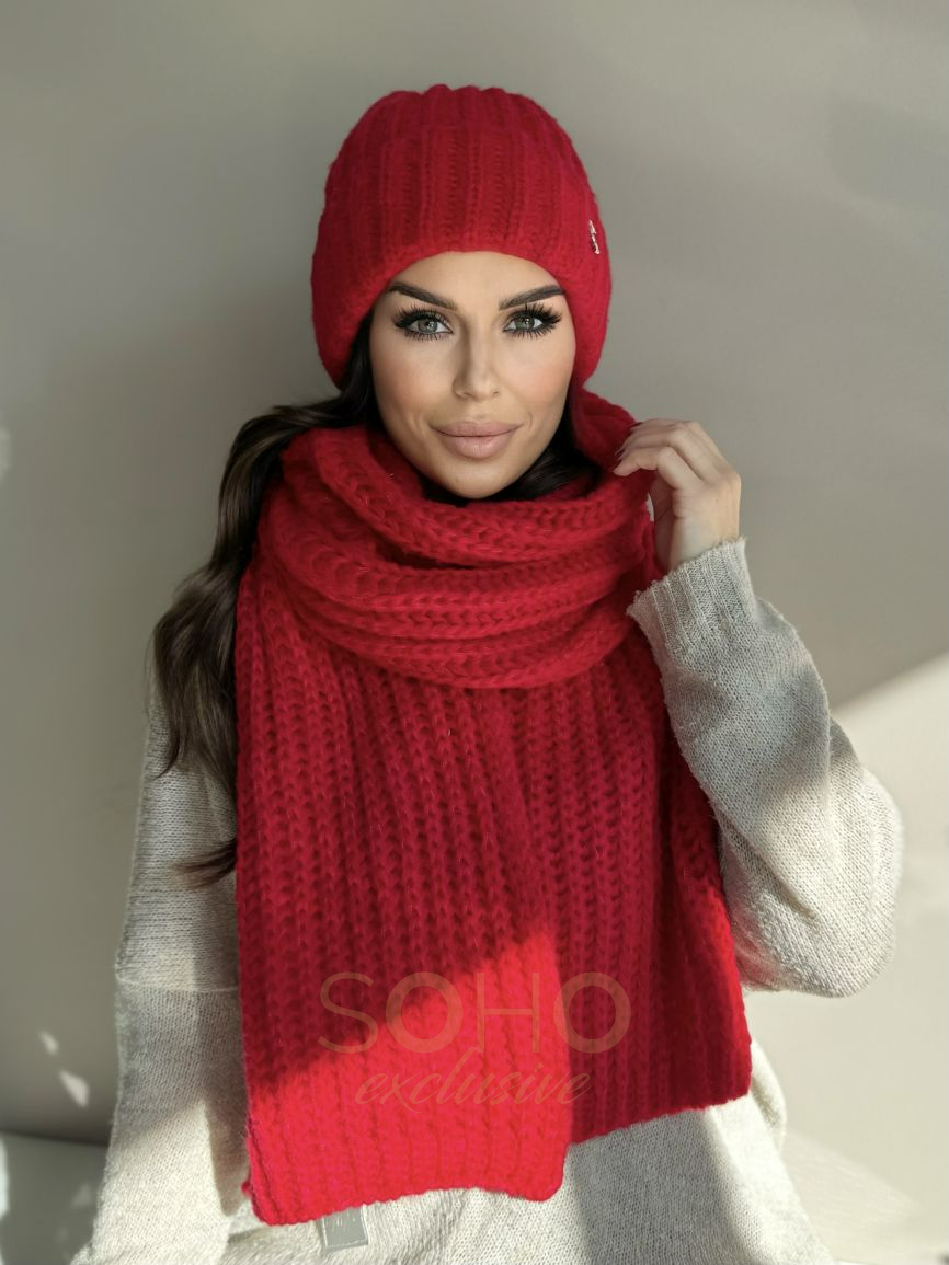 Komplet damski młodzieżowy czapka beanie szal długi wełna zimowy na zimę czerwony 2994