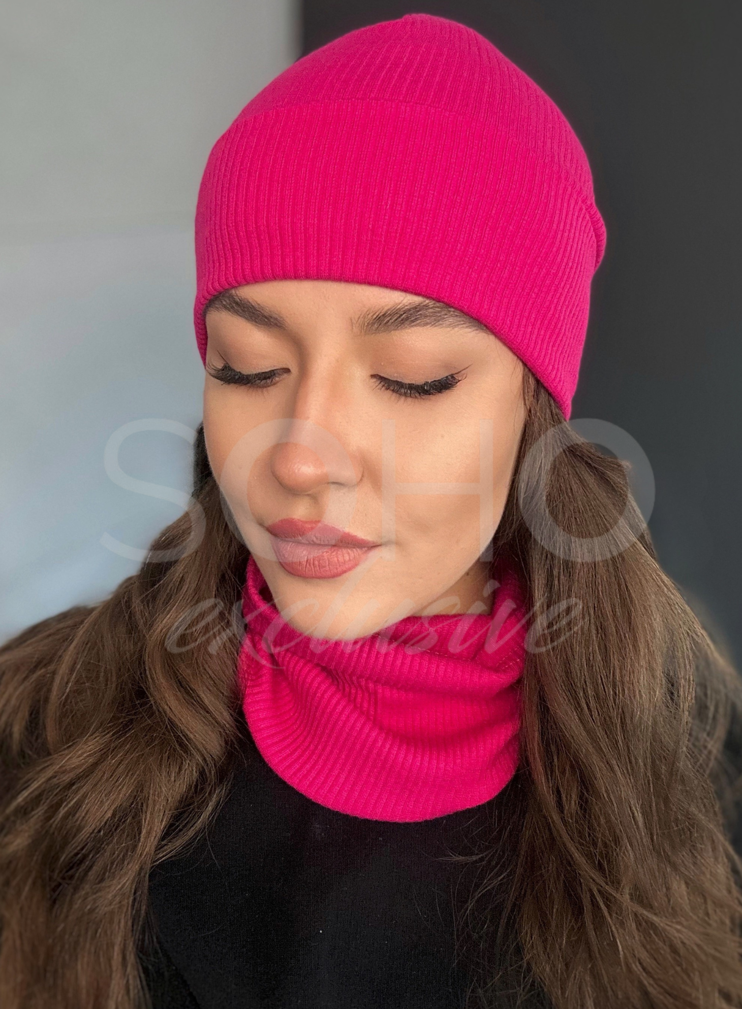 Komplet młodzieżowy uniseks jesień zima wiosna bawełna czapka + komin fuksjowy 3026