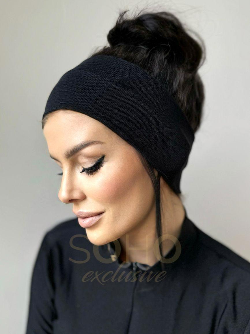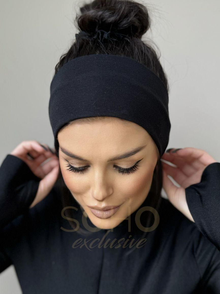 Opaska damska na głowę uszy cienka lekka wygodna prosta szeroka bawełna czarna 2857