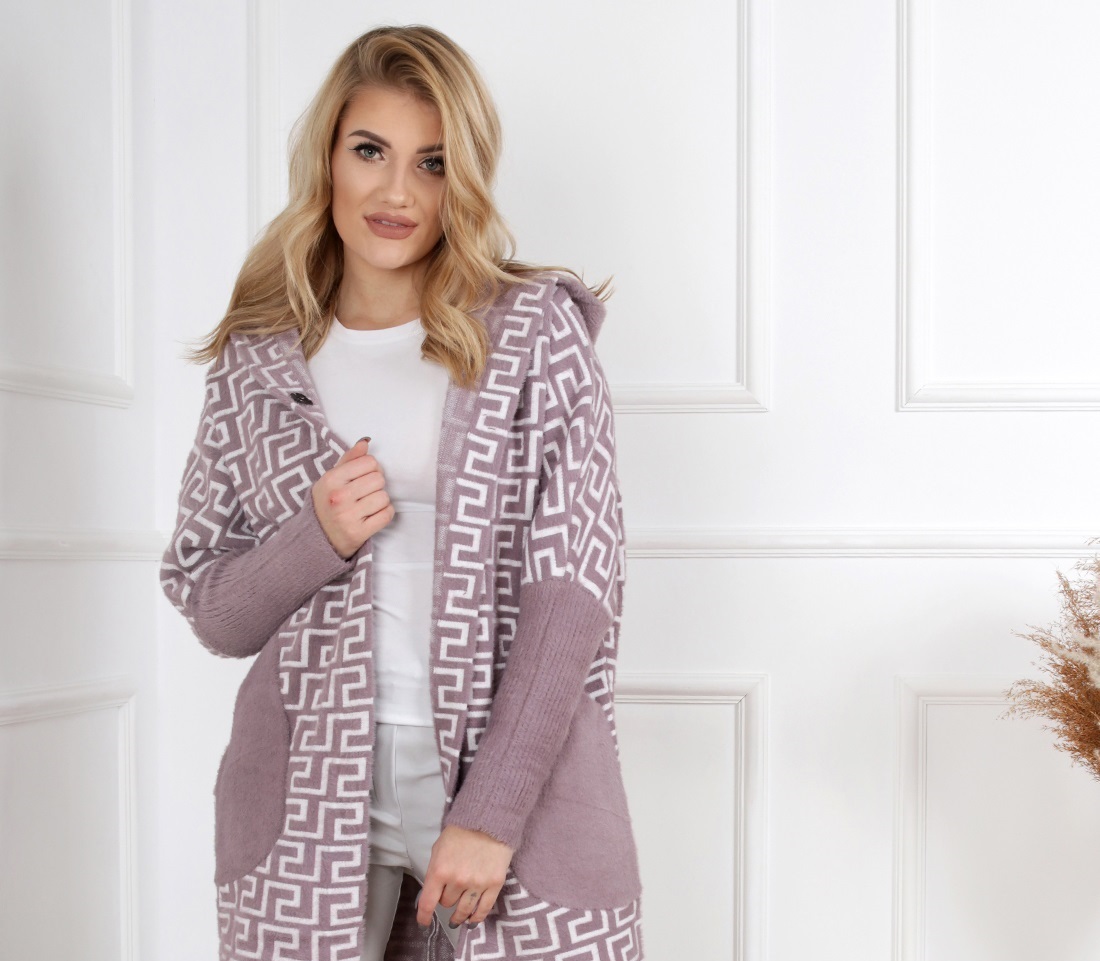 Napisz pierwszą opinię o „Płaszcz alpaka kaptur wzory damski kobiecy modny elegancki zgaszony lawendowy (z białym wzorem) 2071”