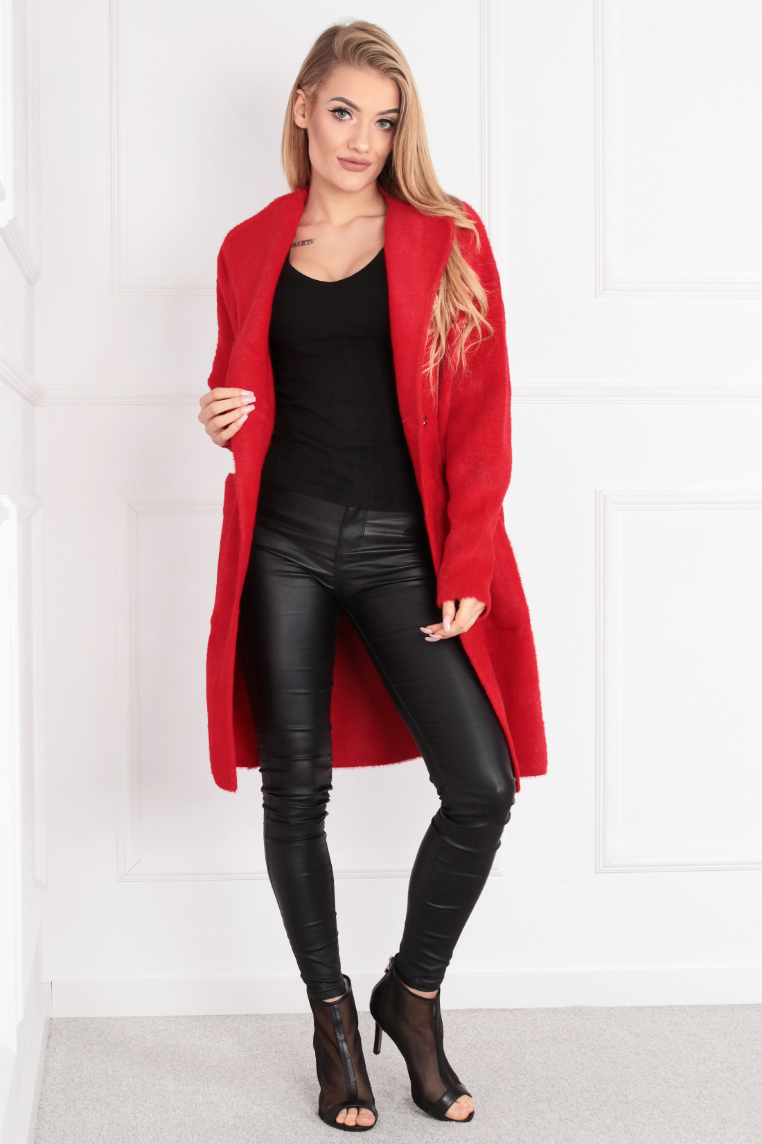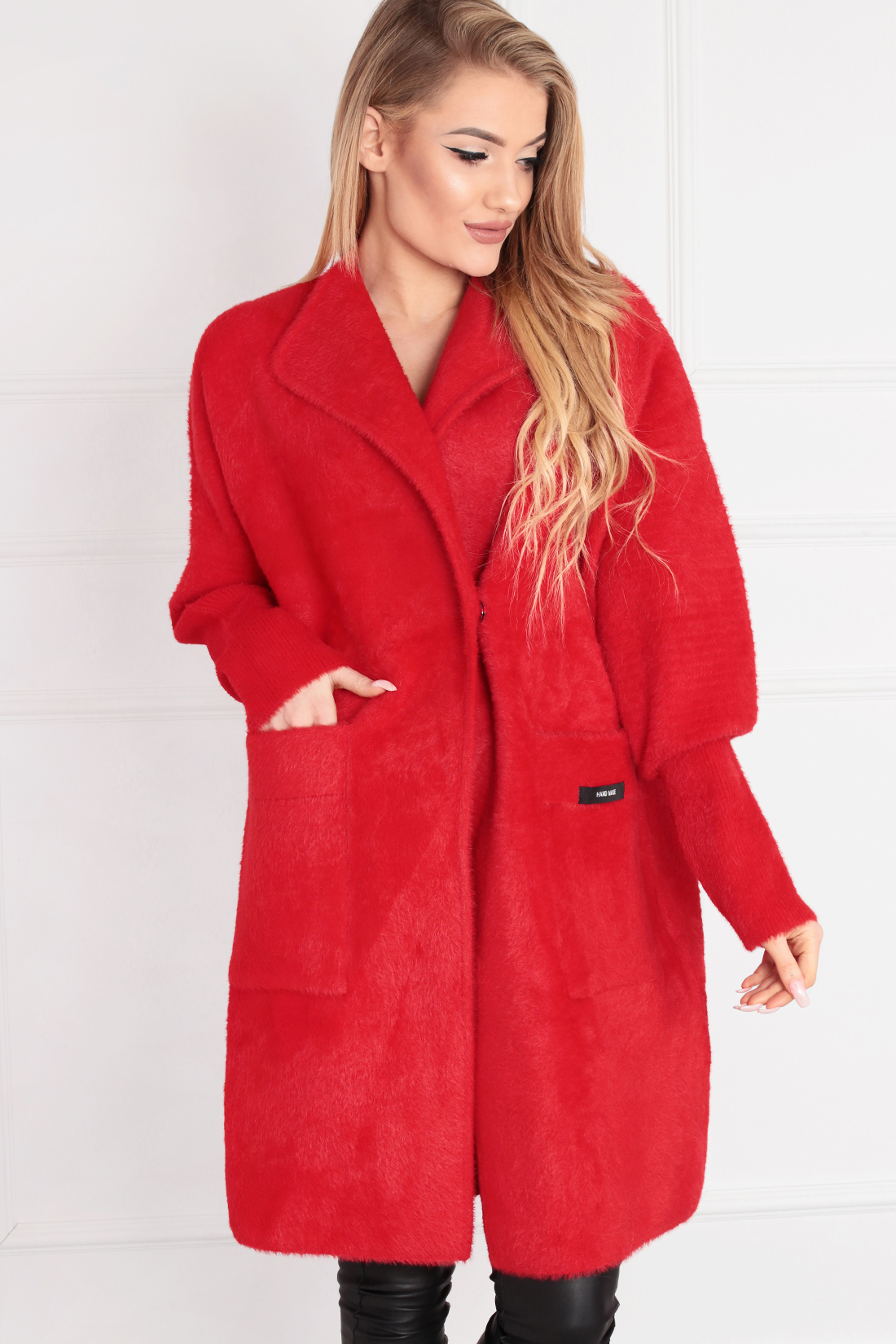 Płaszcz damski alpaka klasyczny elegancki modny wygodny długi czerwony 2019