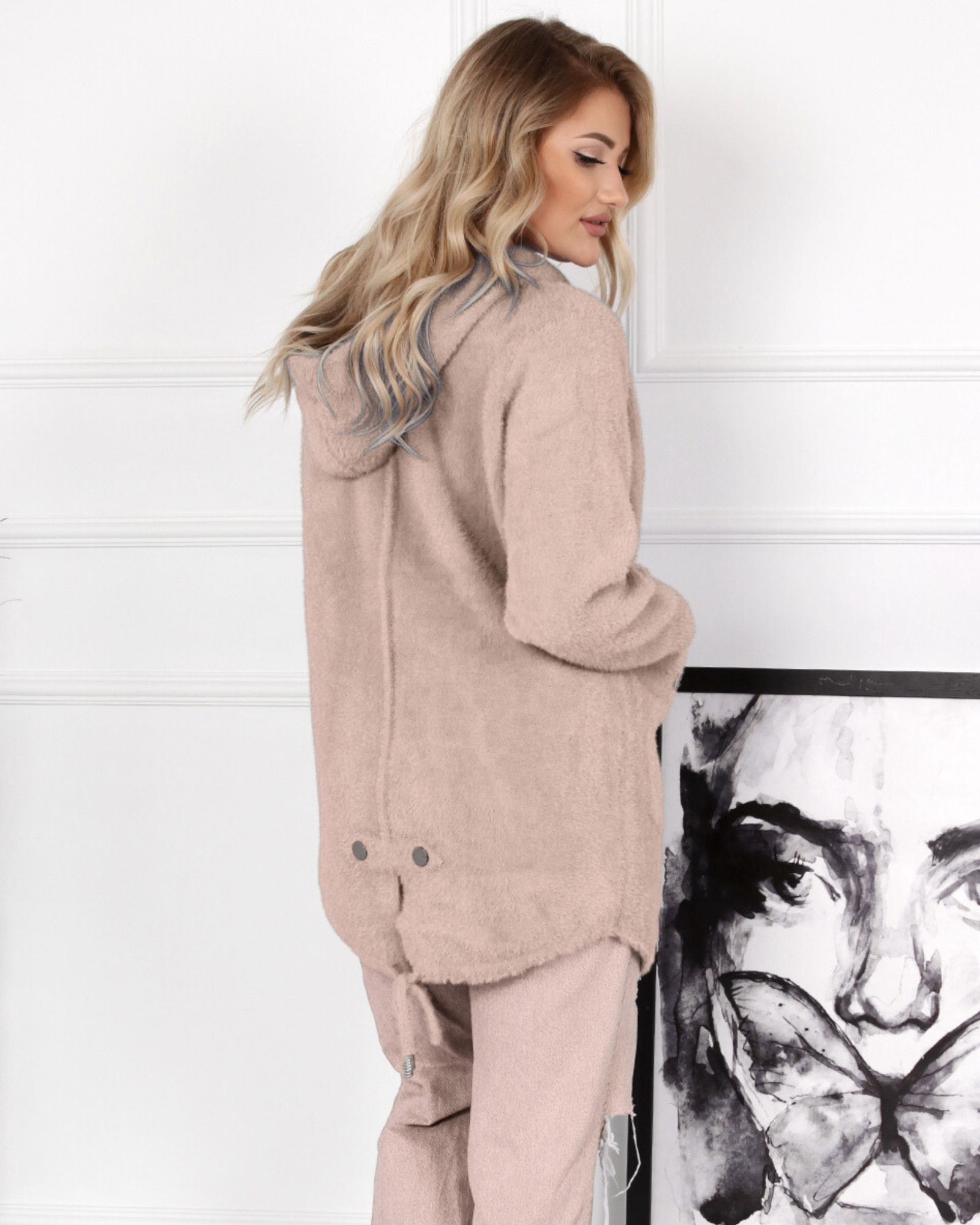 Napisz pierwszą opinię o „Płaszcz damski sweter kaptur alpaka ciepła wygodna kobieca długa beżowy 2180”