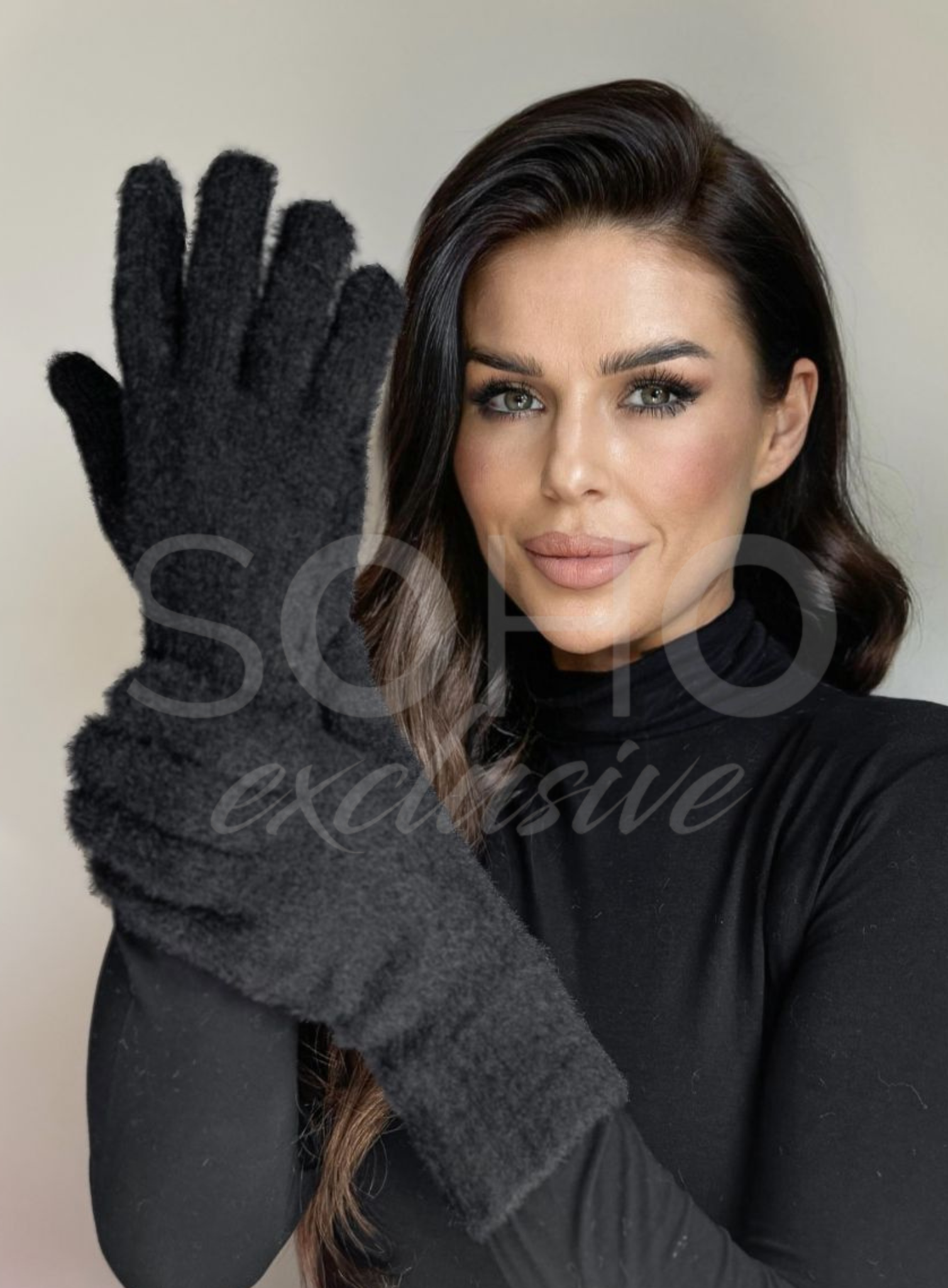 Rękawiczki damskie rękawice młodzieżowe alpaka wygodne ciepłe sport czarne 2988