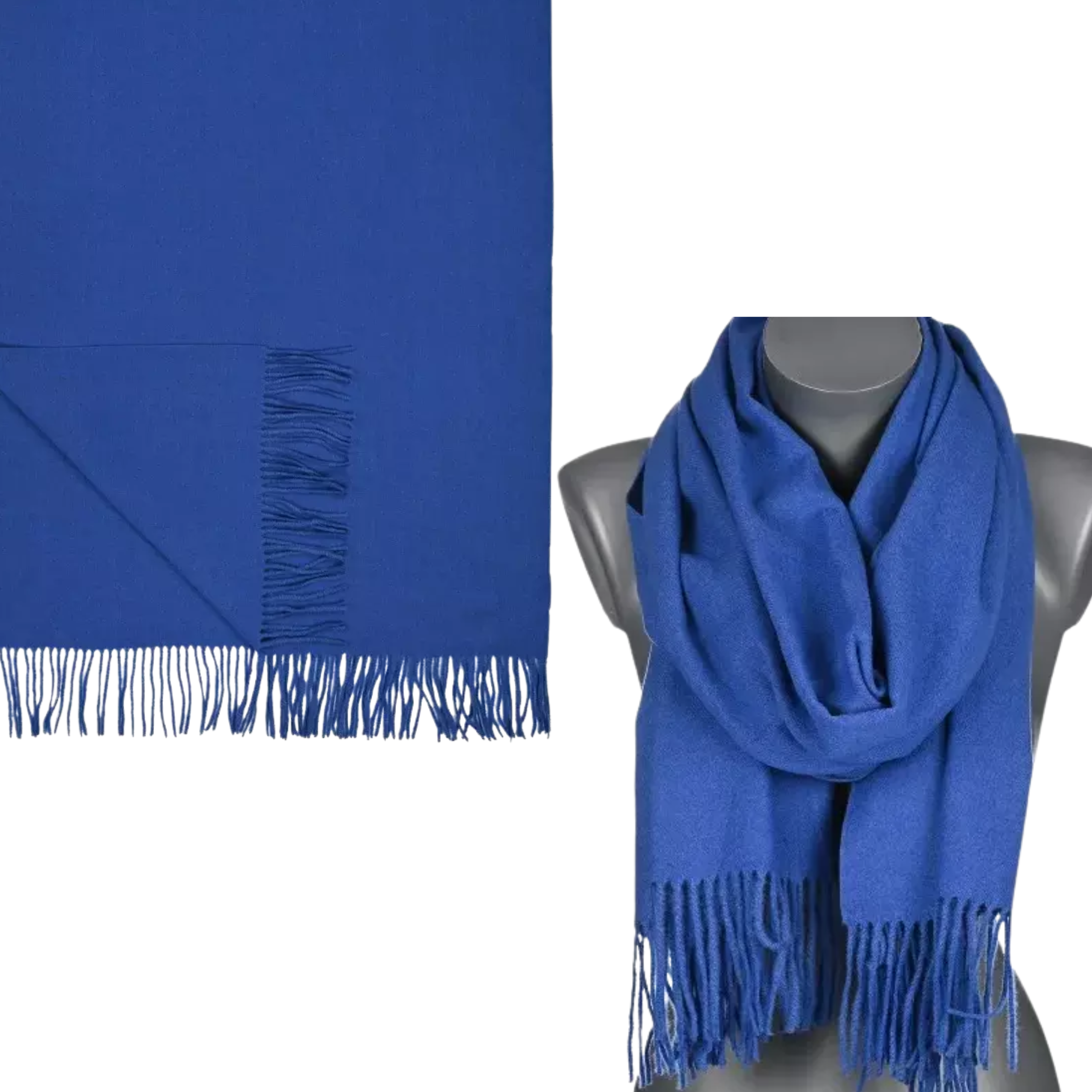Szal szalik chusta damski kobiecy długi z frędzlami wiskoza bawełna chabrowy 3004