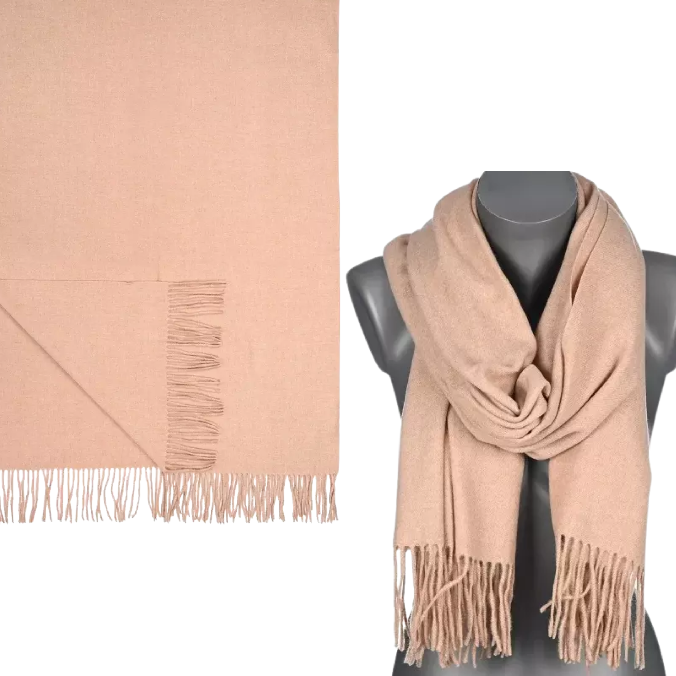 Szal szalik chusta damski kobiecy długi z frędzlami wiskoza bawełna łososiowy 3004