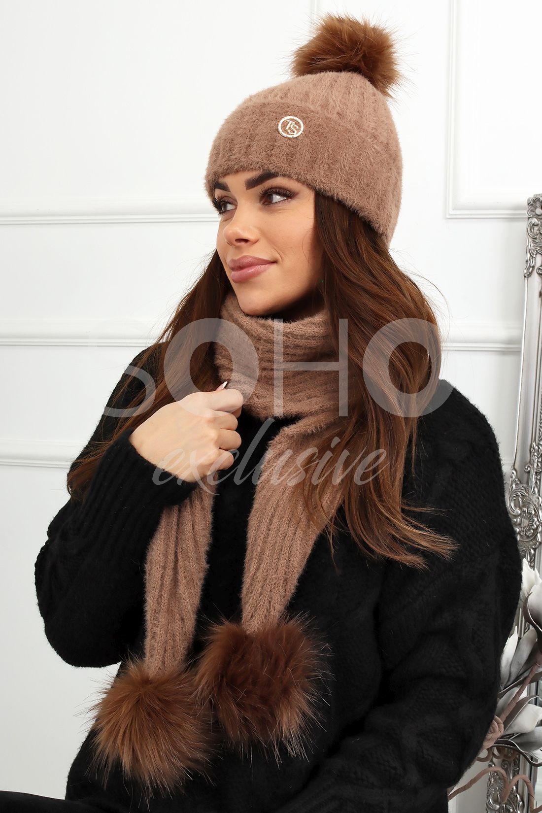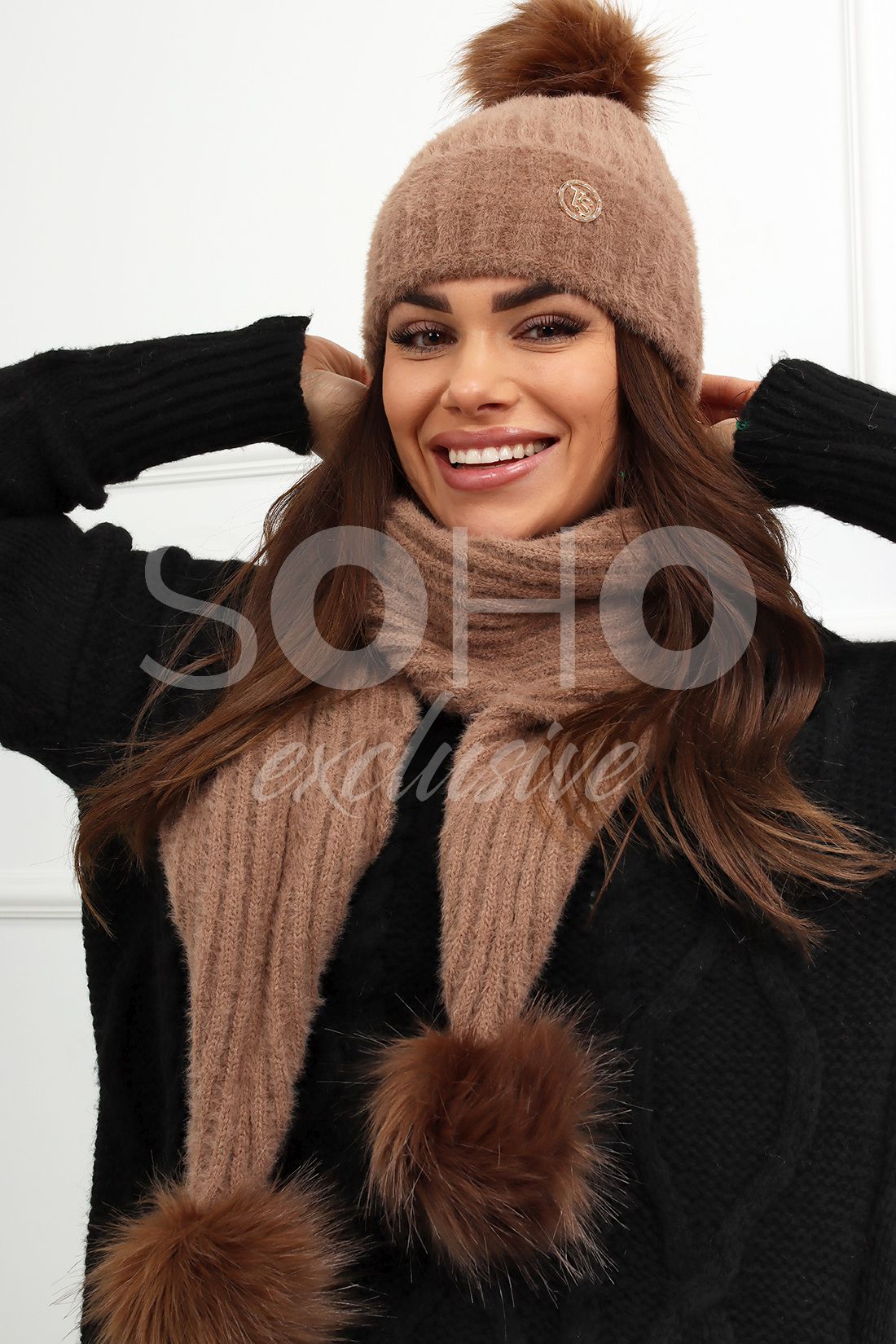Dłuuugi szalik z zakończony dwoma pomponami.