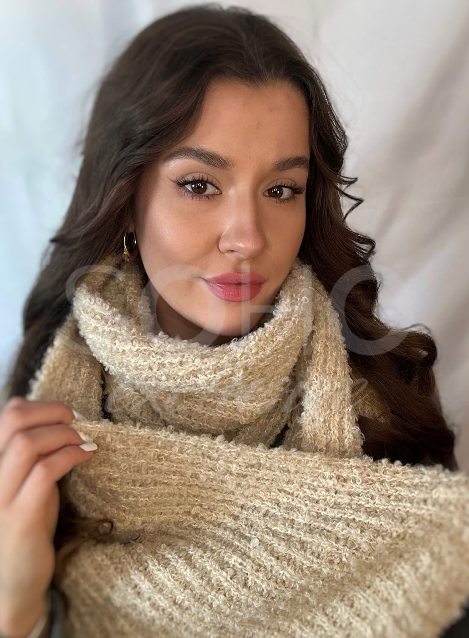Szalik szal damski młodzieżowy długi ciepły na zimę zimowy boucle beżowy 3002