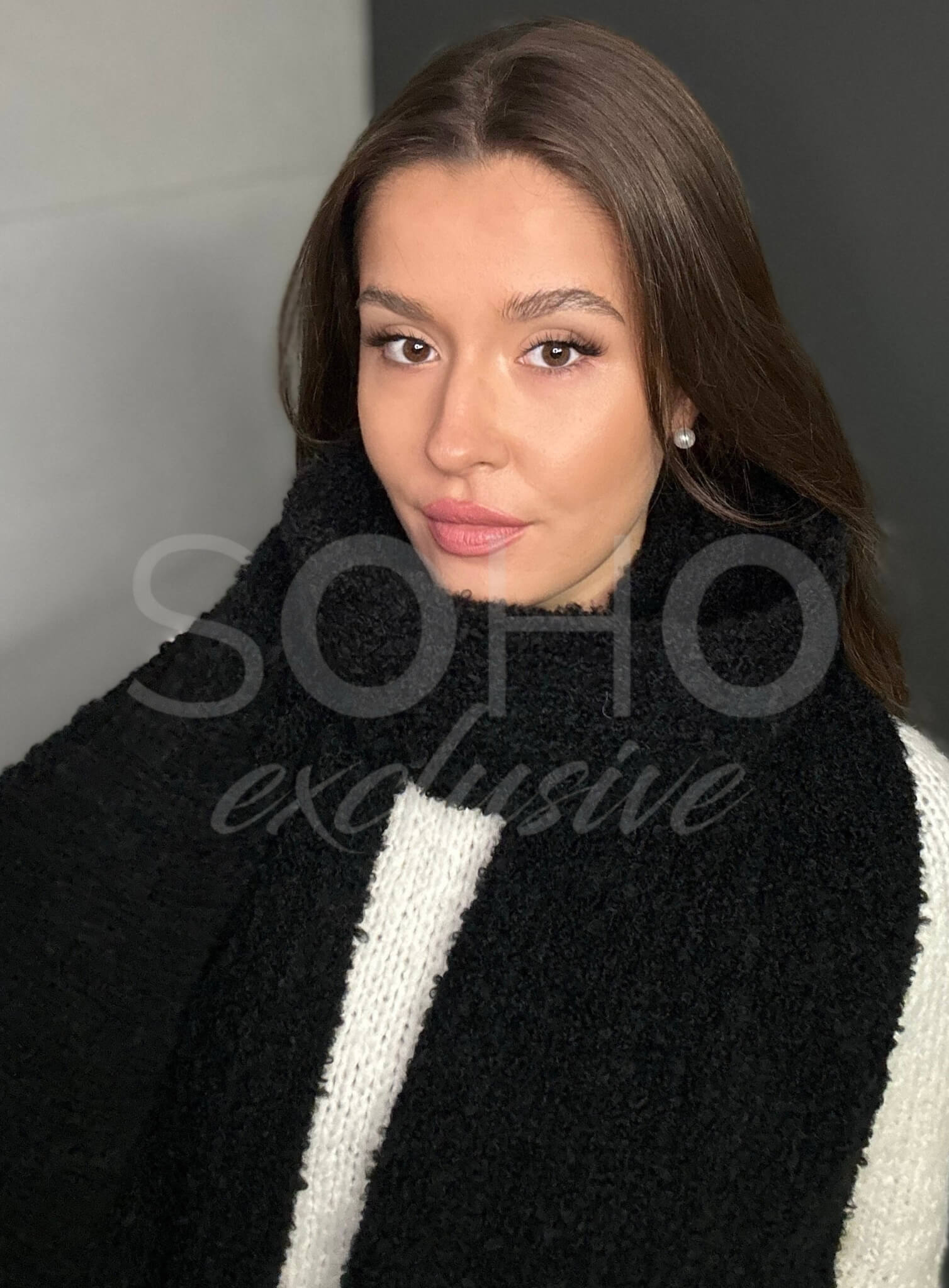 Szalik szal damski młodzieżowy długi ciepły na zimę zimowy boucle czarny 3002