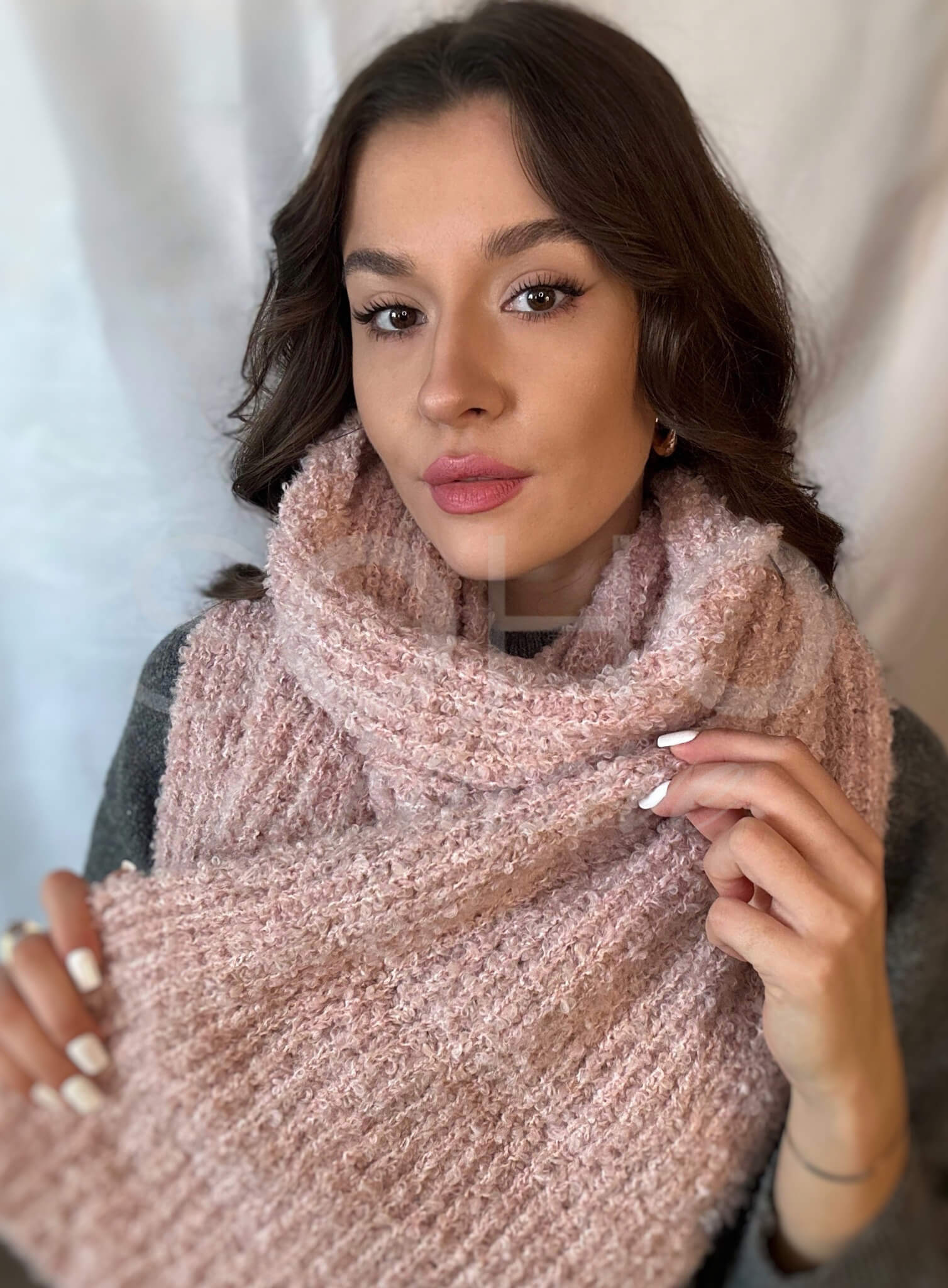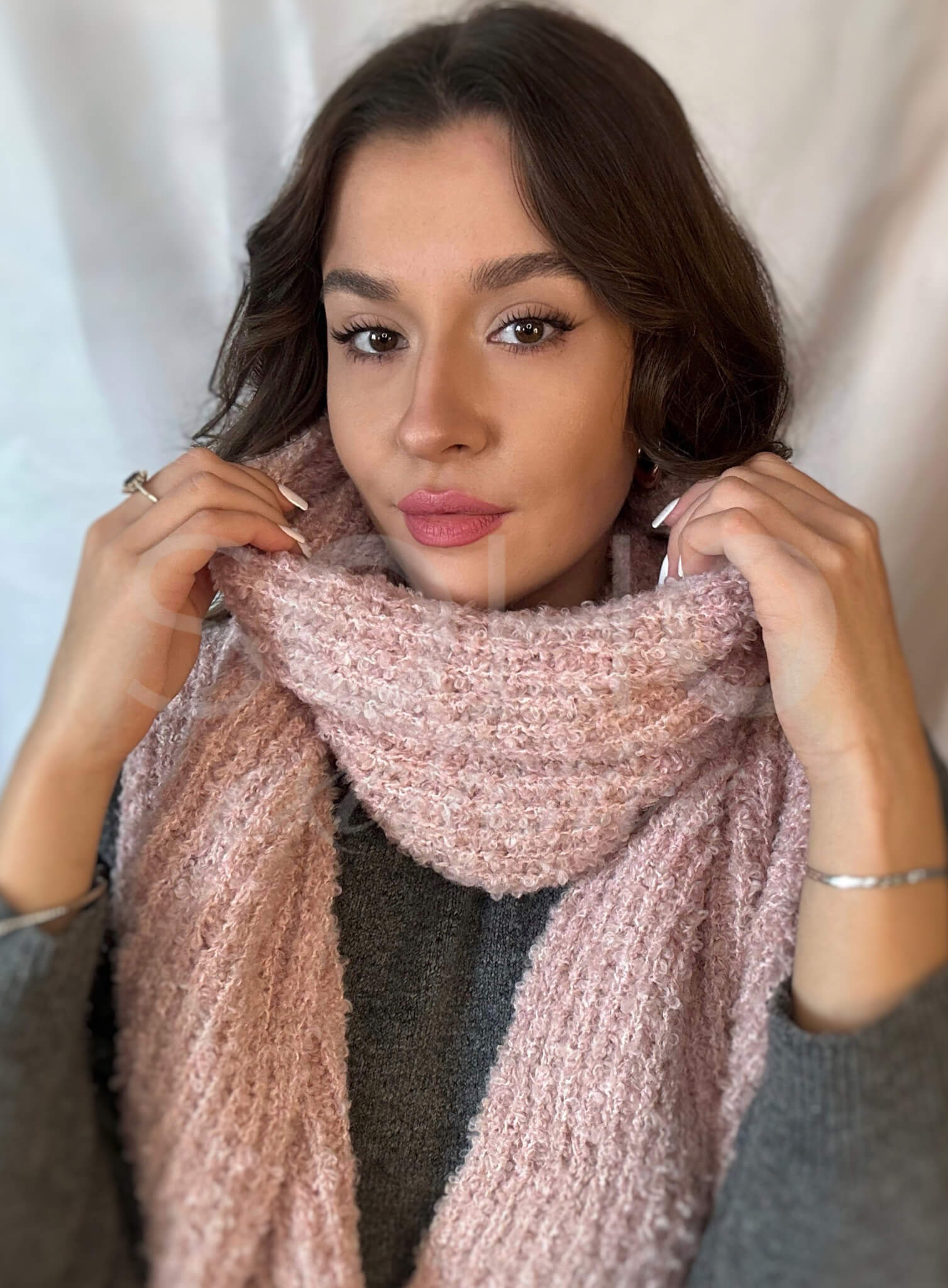 Szalik szal damski młodzieżowy długi ciepły na zimę zimowy boucle zgaszony różowy 3002