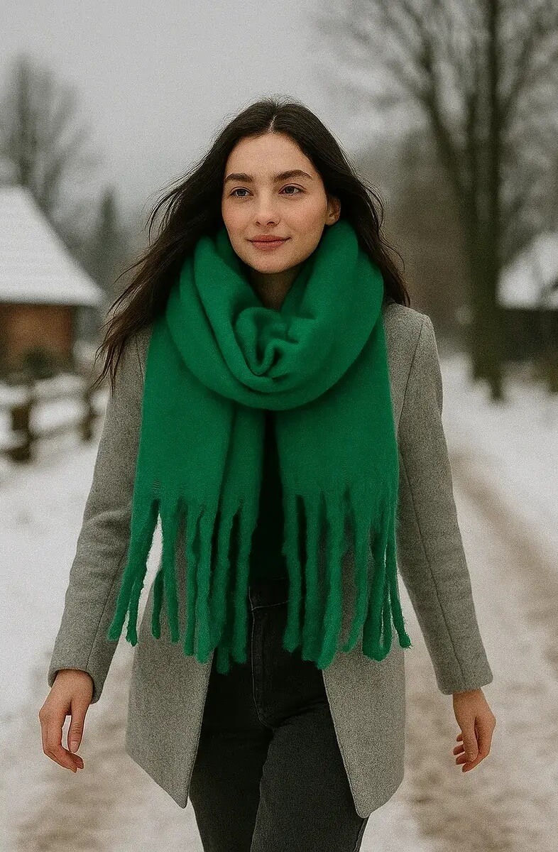 Szalik szal damski młodzieżowy długi ciepły zimowy z frędzlami dred butelkowy zielony 3003