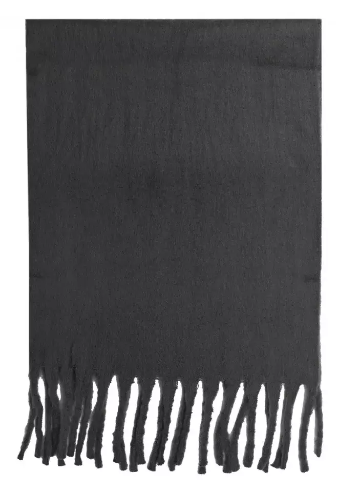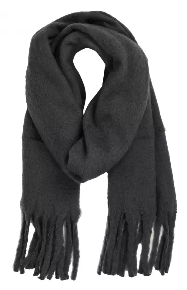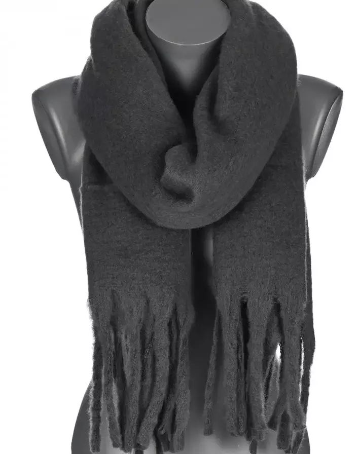 Szalik szal damski młodzieżowy długi ciepły zimowy z frędzlami dred grafitowy 3003