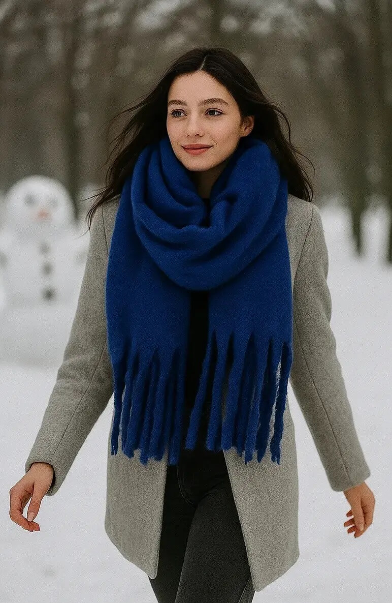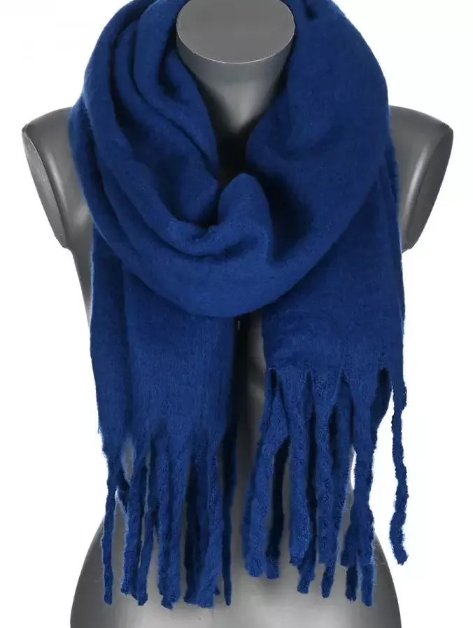Szalik szal damski młodzieżowy długi ciepły zimowy z frędzlami dred granatowy 3003