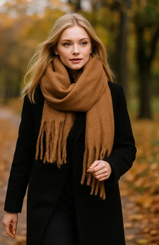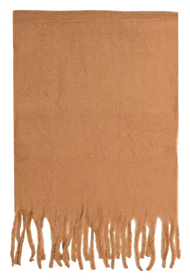 Szalik szal damski młodzieżowy długi ciepły zimowy z frędzlami dred karmelowy 3003