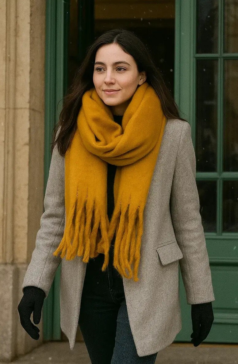Napisz pierwszą opinię o „Szalik szal damski młodzieżowy długi ciepły zimowy z frędzlami dred musztardowy 3003”
